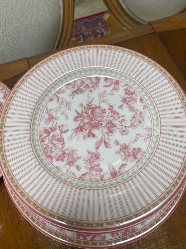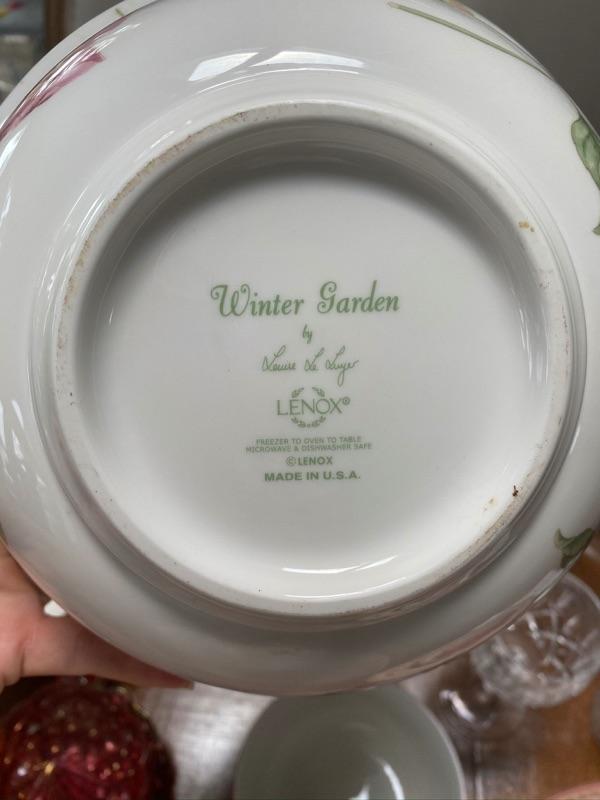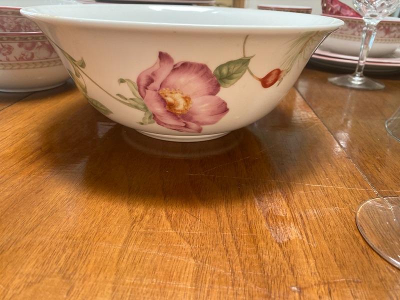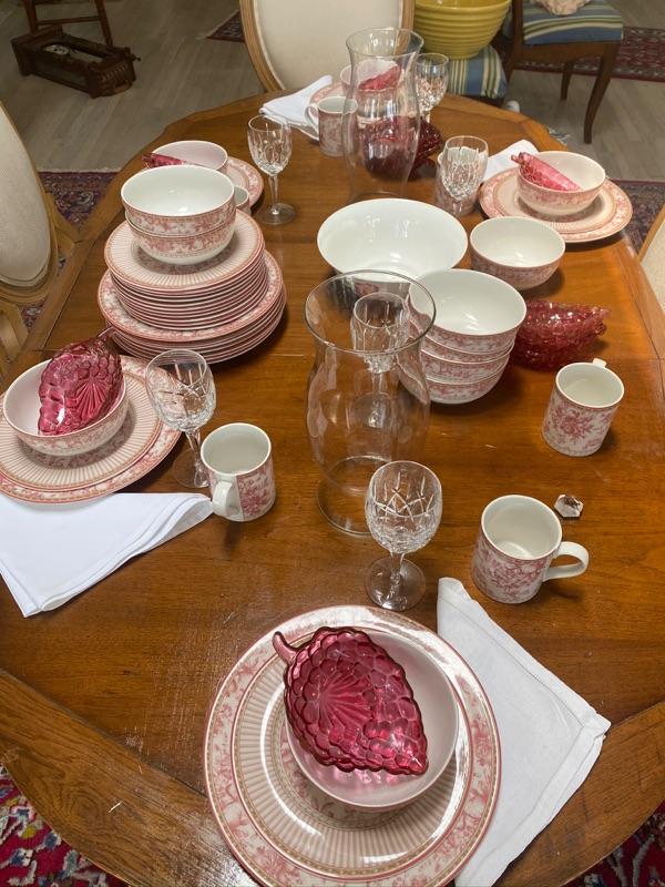 Set of Royal Doulton China with Winter Garden Lenox Bowl , pink glass grape bowls, and stemware