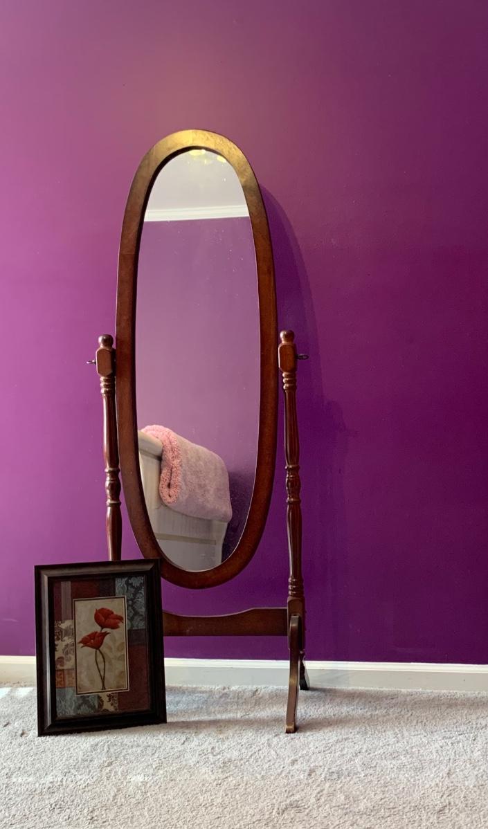 LOT 353R: Oval Standing Mirror & Floral Print (mirror & print only)