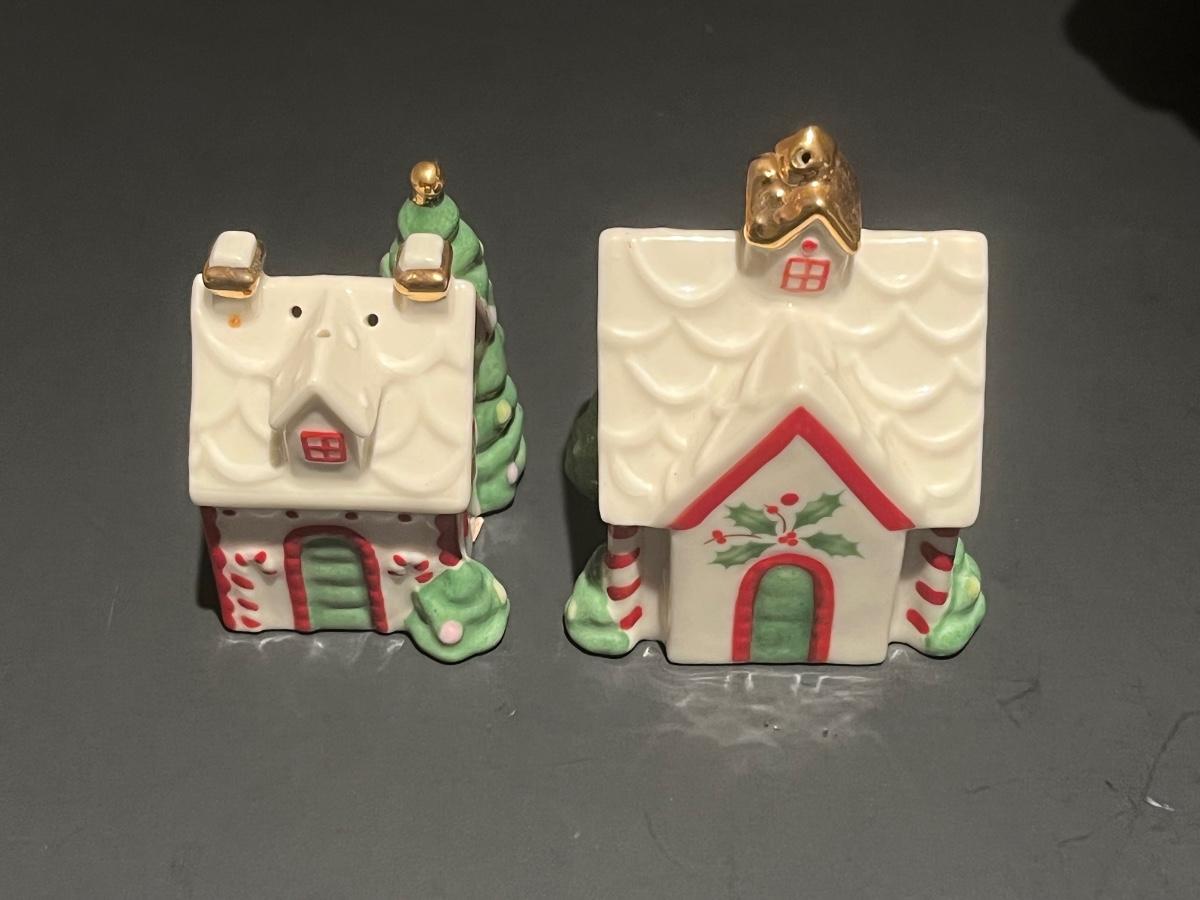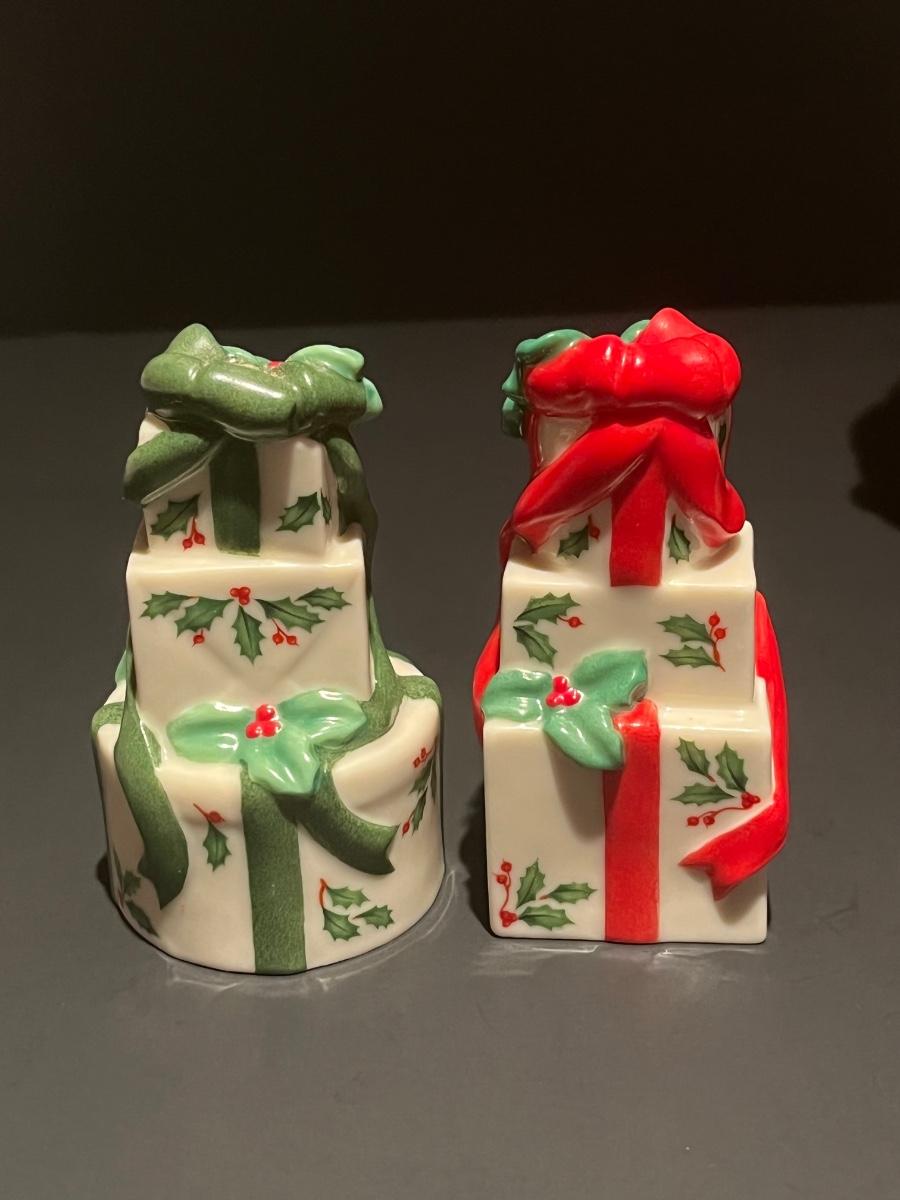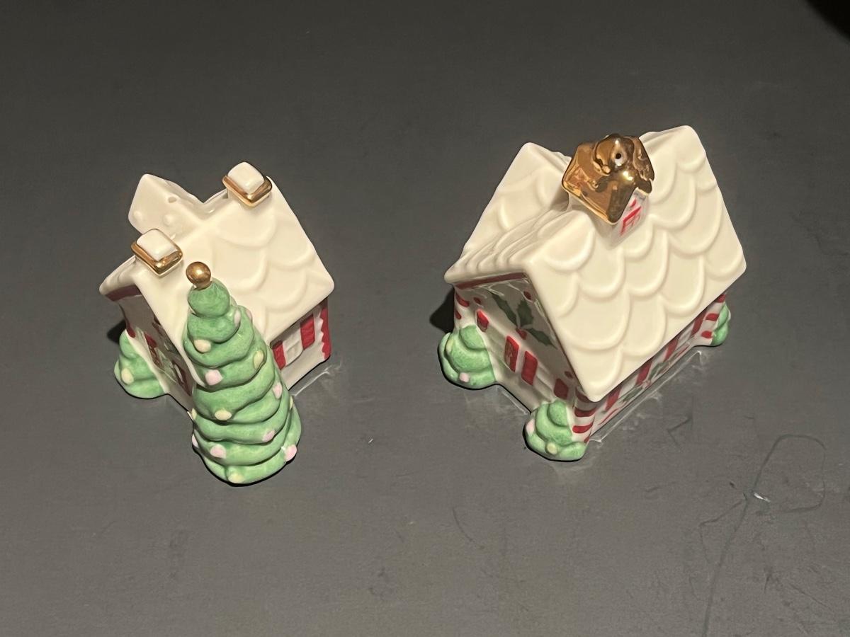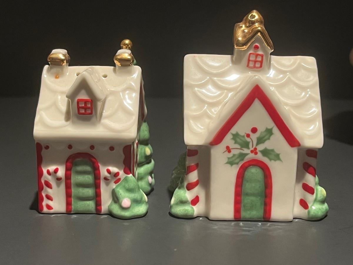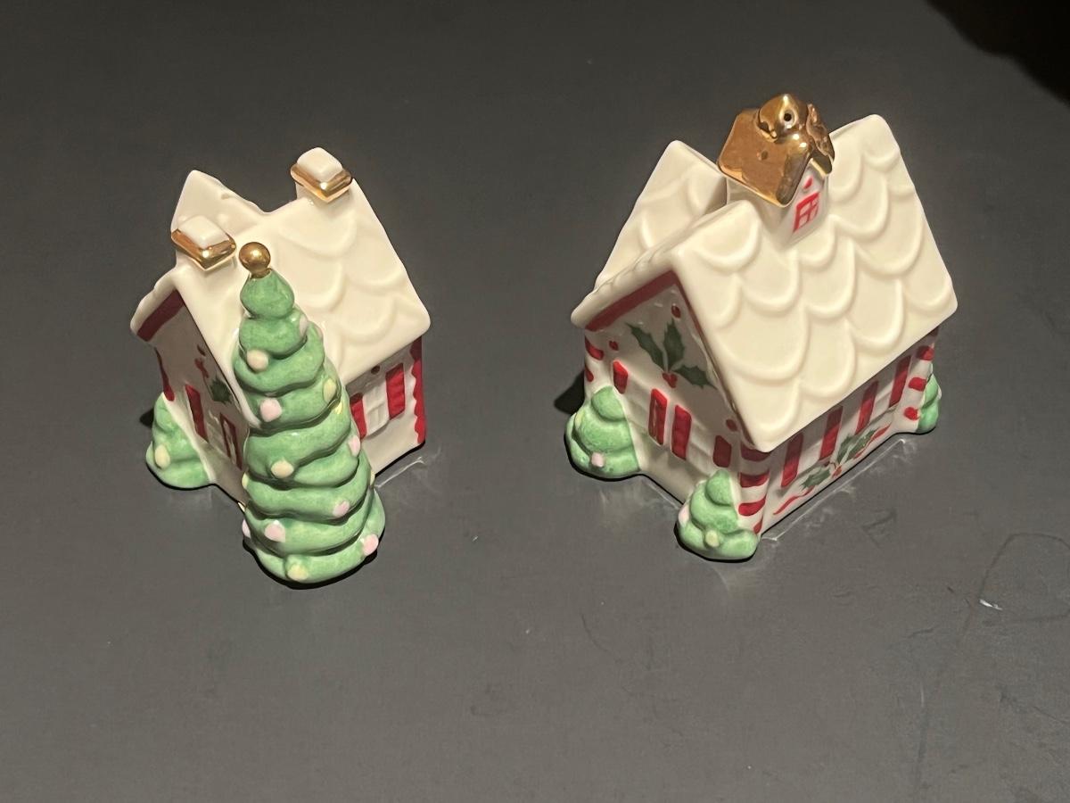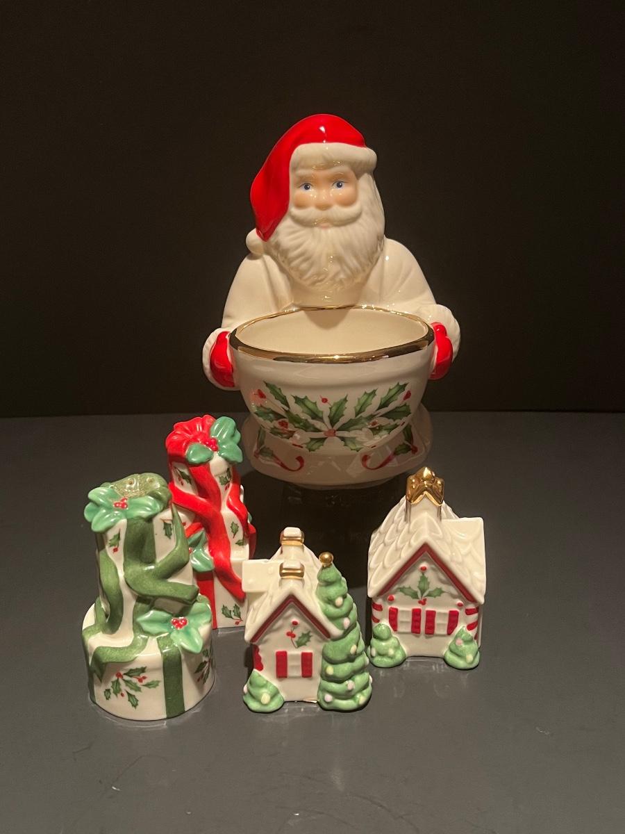 Lenox Santa candy dish or can be used as just a decoration, 2 sets of Lenox salt & pepper shakers: gift boxes and Christmas houses.