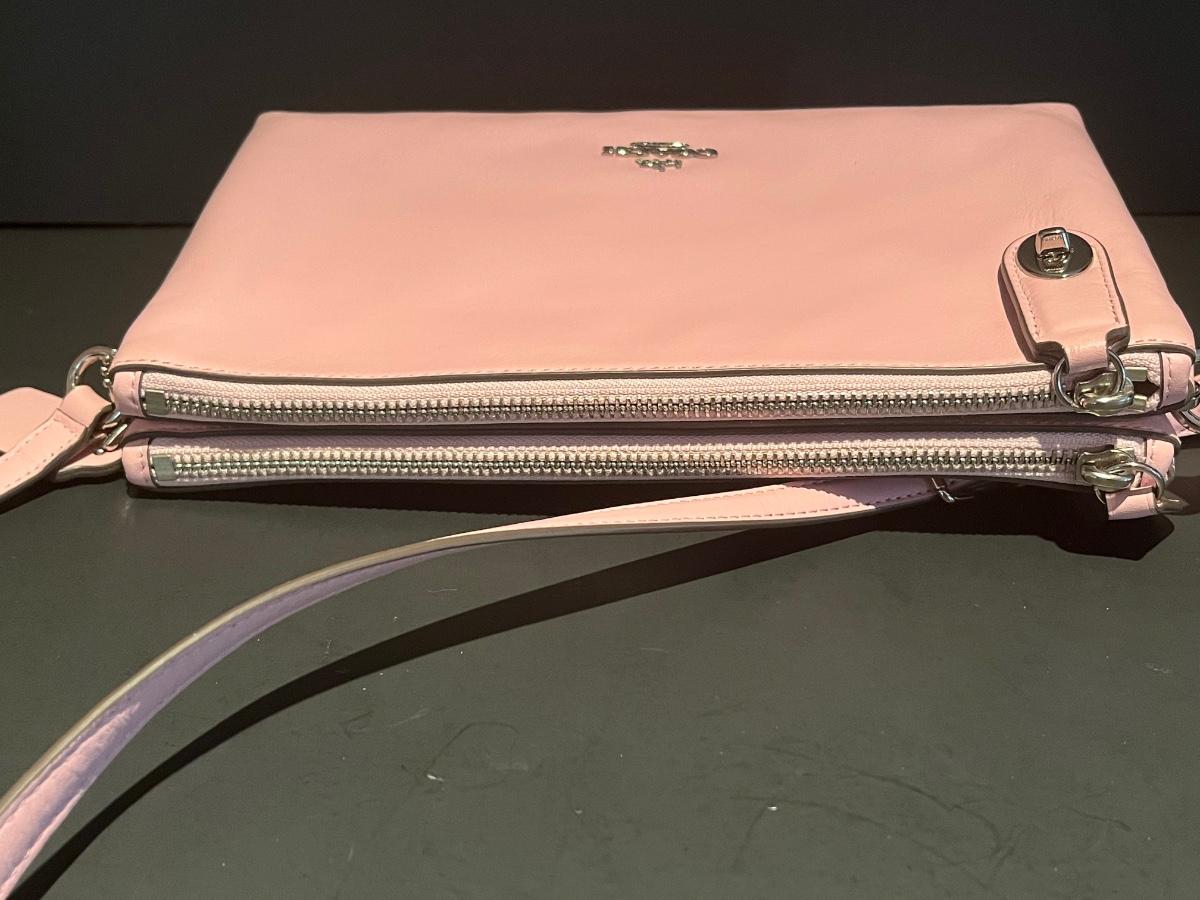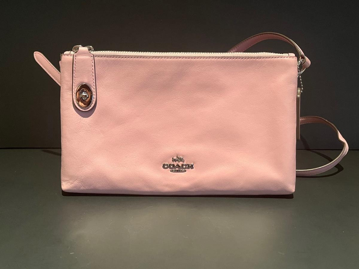 Bright pink, Coach crossbody bag with 2 compartments. Please see all pictures as they are the best representation of the items. The pictures show condition, measurements if taken, and what is included in the lot. Due to the large amount that we photograph and the time frame, we are not always able to take measurements. All items unless noted, are pre-owned and have been used. If you purchased furniture, you must bring help. We do not allow one person to carry large furniture out on their own. Bring help, tools and a truck for the safety of our client’s homes, and your personal safety. Any damages that result to the property including walls, and floors due to moving of the furniture will be charged to the buyer. Company policy. Thank you.