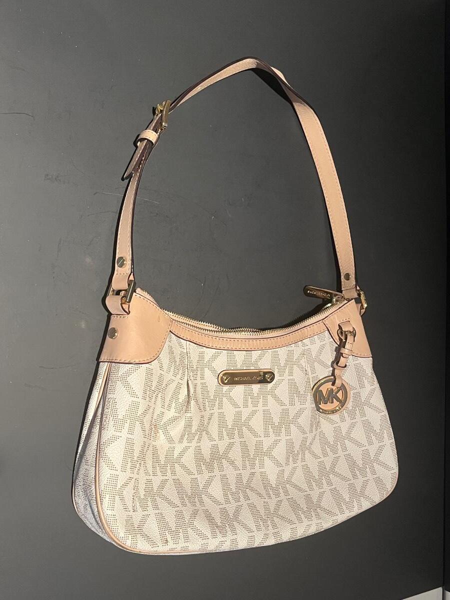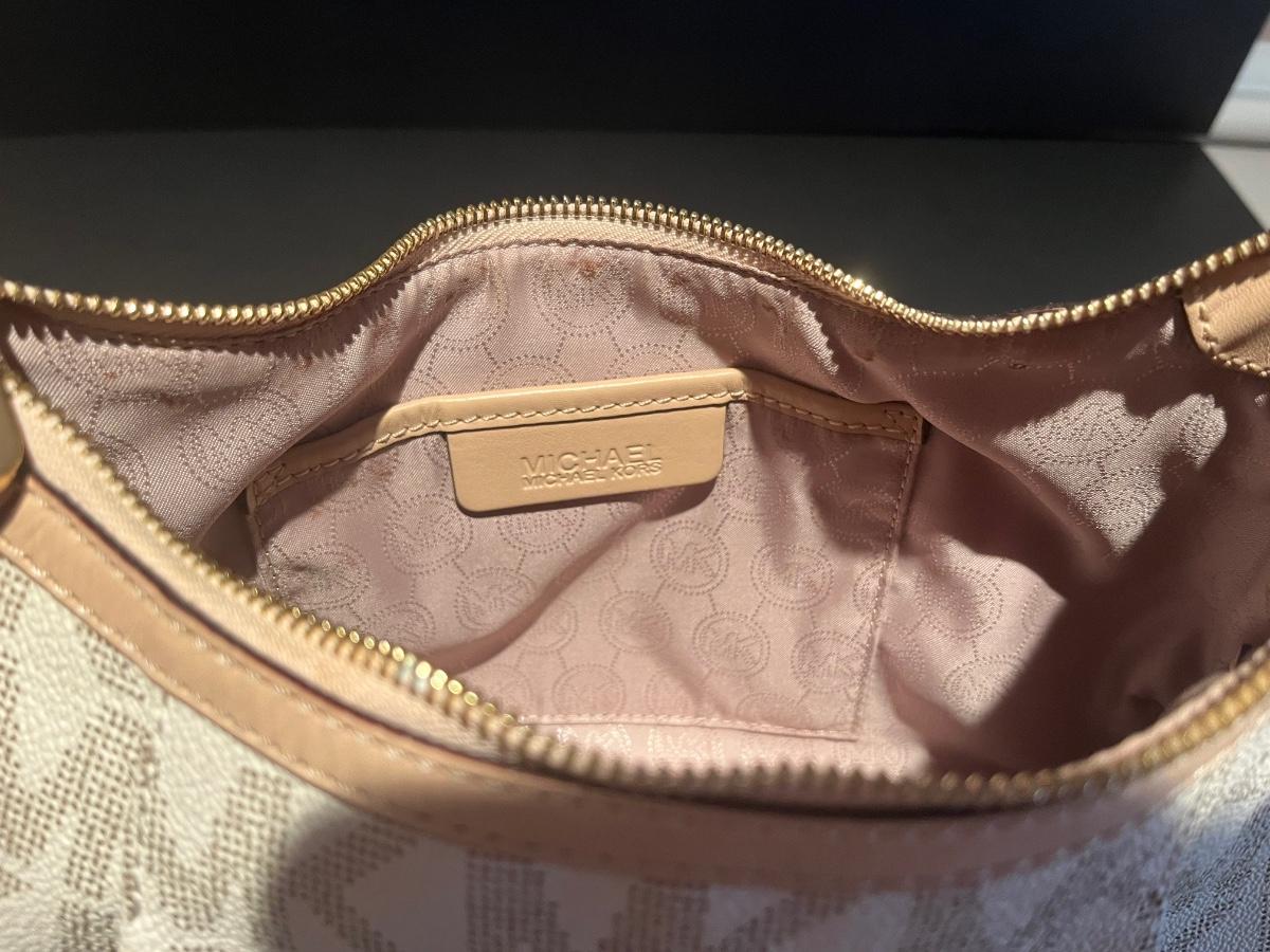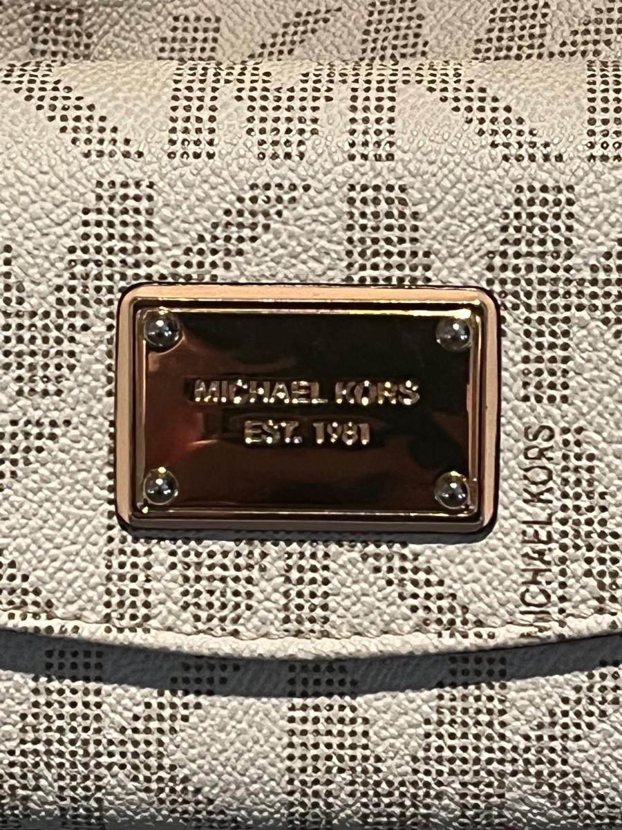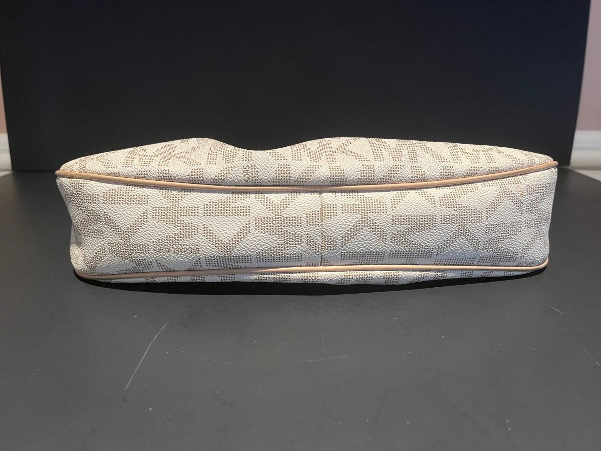 Off white bag with brown MK’s. Please see all pictures as they are the best representation of the items. The pictures show condition, measurements if taken, and what is included in the lot. Due to the large amount that we photograph and the time frame, we are not always able to take measurements. All items unless noted, are pre-owned and have been used. If you purchased furniture, you must bring help. We do not allow one person to carry large furniture out on their own. Bring help, tools and a truck for the safety of our client’s homes, and your personal safety. Any damages that result to the property including walls, and floors due to moving of the furniture will be charged to the buyer. Company policy. Thank you.
