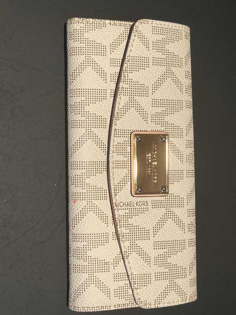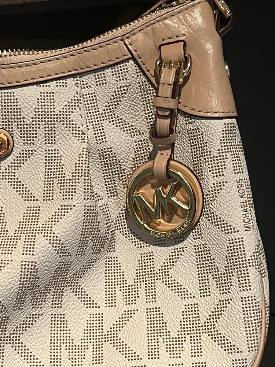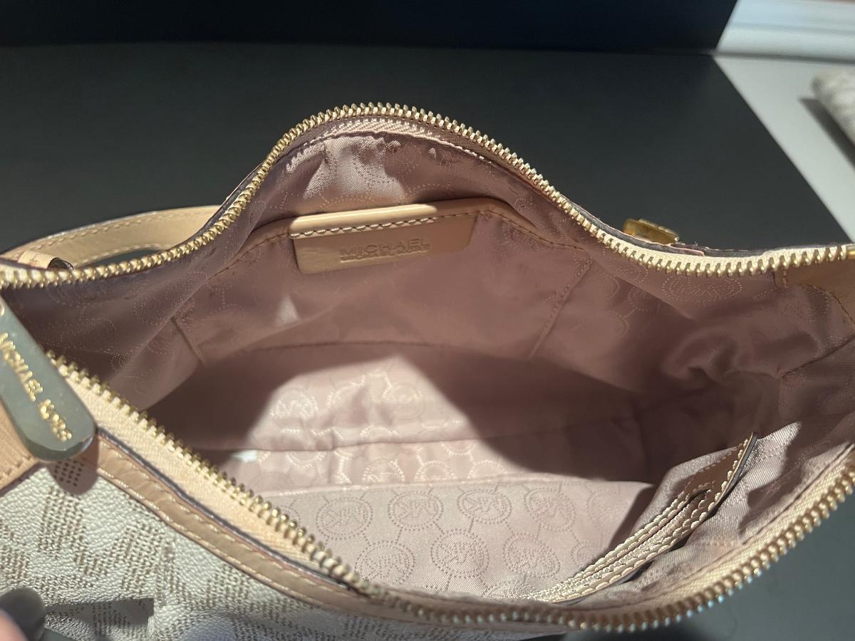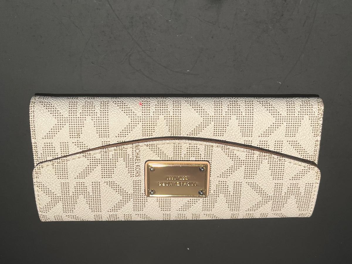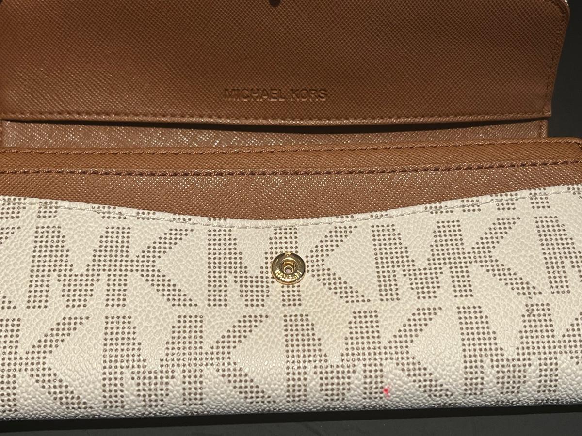 Off white bag with brown MK’s. Please see all pictures as they are the best representation of the items. The pictures show condition, measurements if taken, and what is included in the lot. Due to the large amount that we photograph and the time frame, we are not always able to take measurements. All items unless noted, are pre-owned and have been used. If you purchased furniture, you must bring help. We do not allow one person to carry large furniture out on their own. Bring help, tools and a truck for the safety of our client’s homes, and your personal safety. Any damages that result to the property including walls, and floors due to moving of the furniture will be charged to the buyer. Company policy. Thank you.