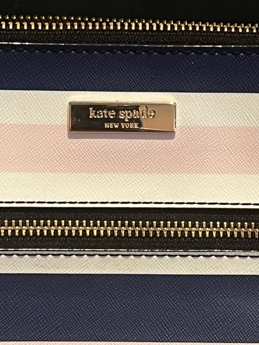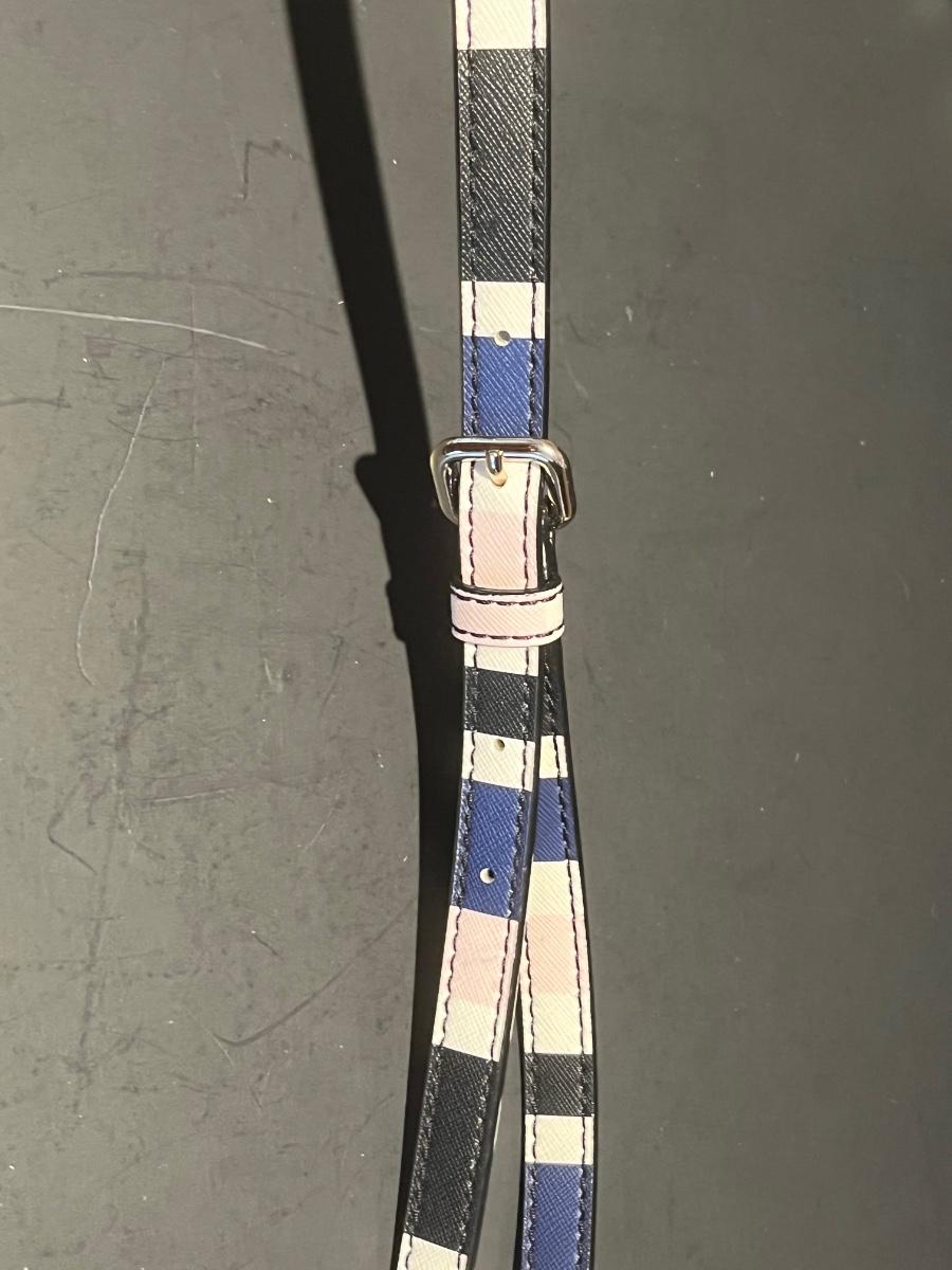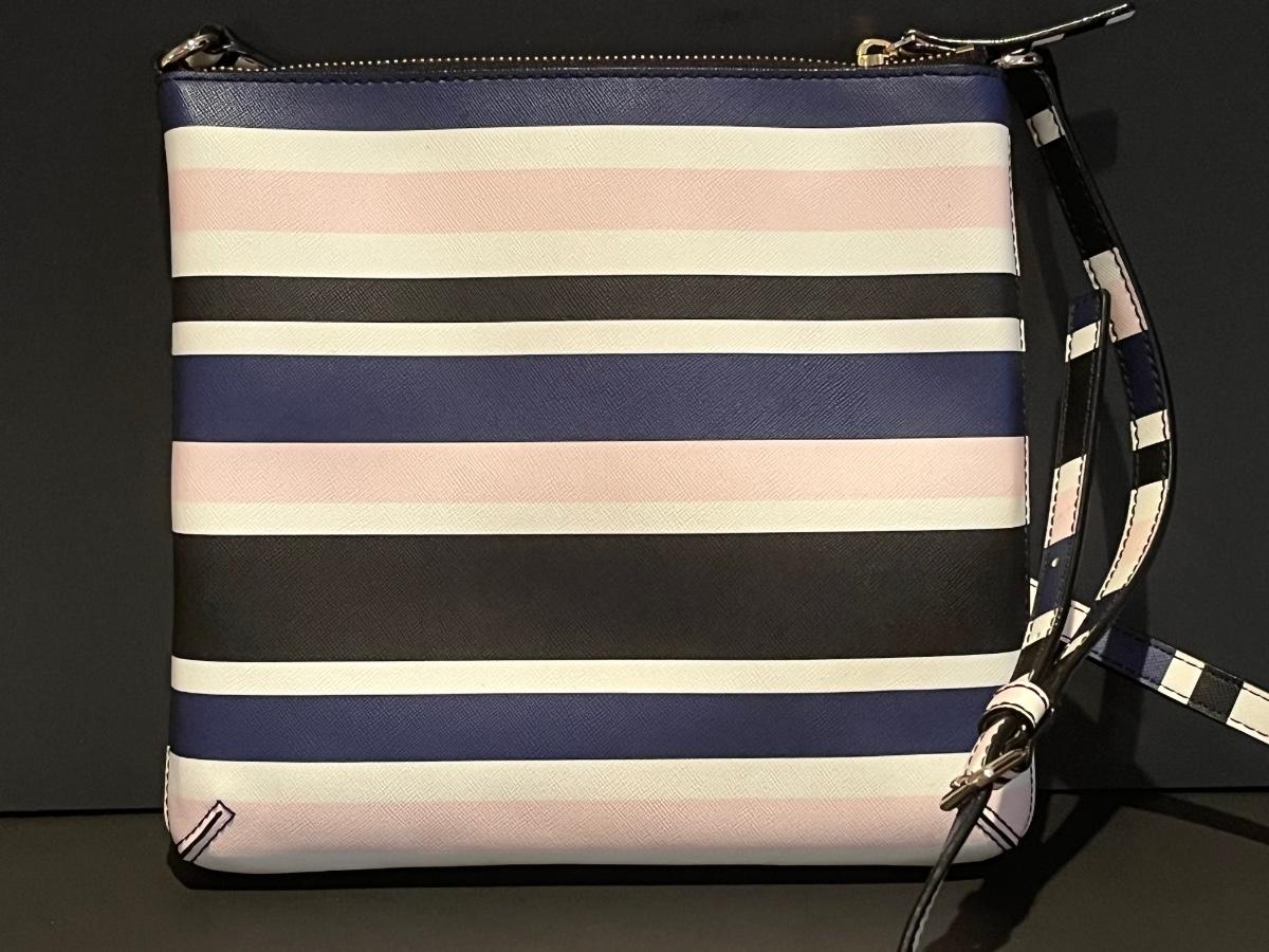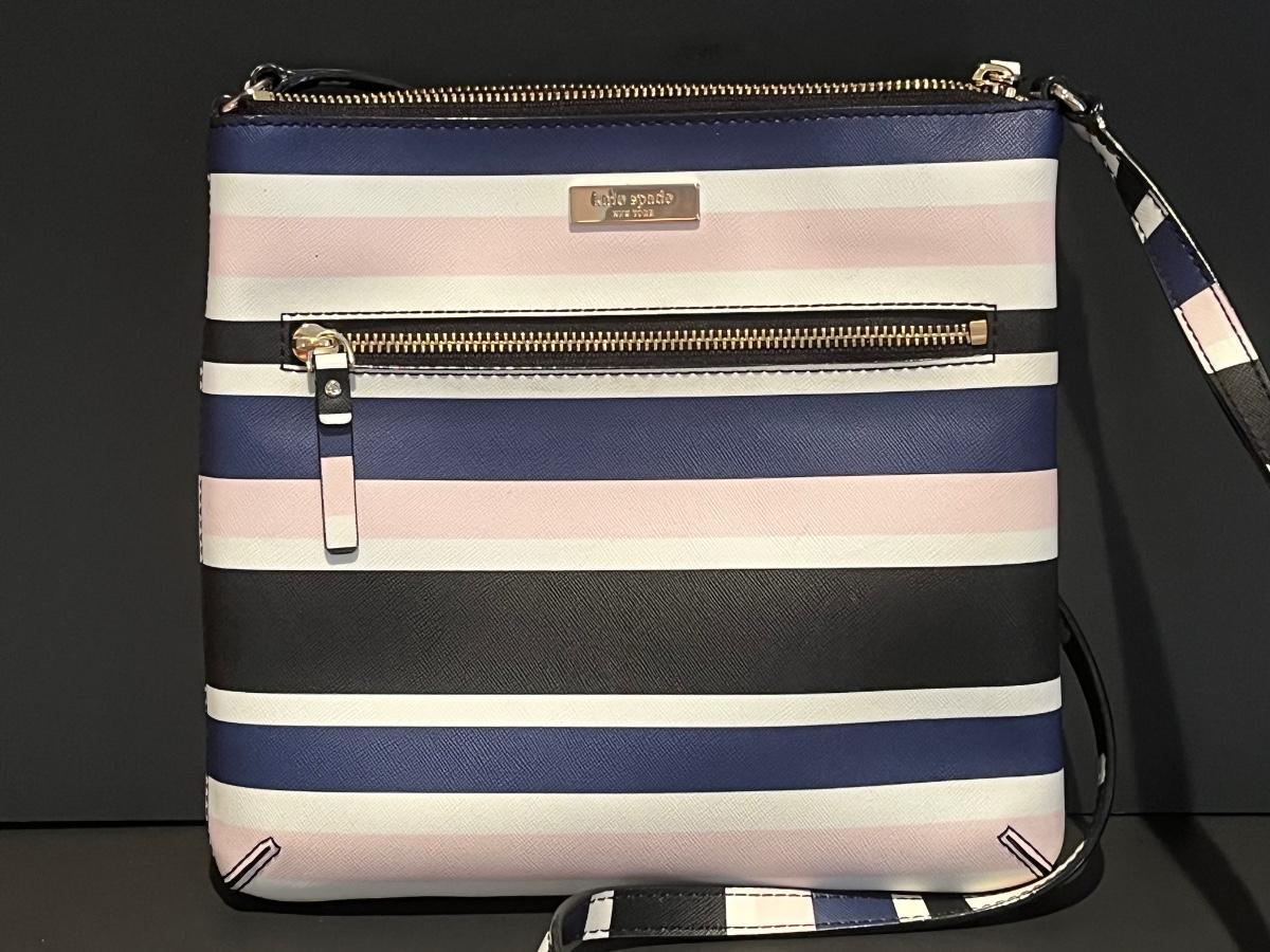 Pink, blue, black and white striped bag. Perfect for your spring wardrobe! Please see all pictures as they are the best representation of the items. The pictures show condition, measurements if taken, and what is included in the lot. Due to the large amount that we photograph and the time frame, we are not always able to take measurements. All items unless noted, are pre-owned and have been used. If you purchased furniture, you must bring help. We do not allow one person to carry large furniture out on their own. Bring help, tools and a truck for the safety of our client’s homes, and your personal safety. Any damages that result to the property including walls, and floors due to moving of the furniture will be charged to the buyer. Company policy. Thank you.