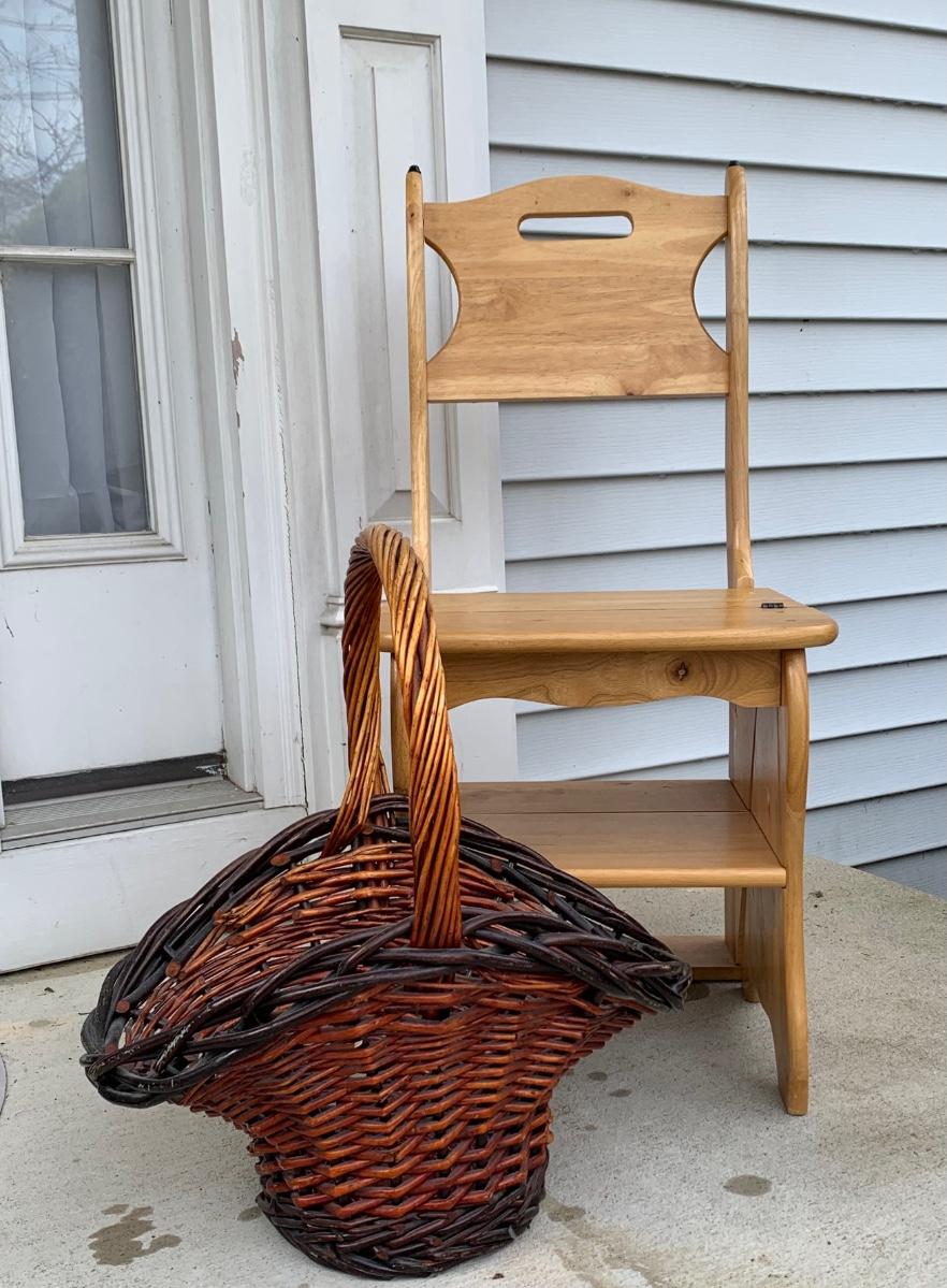 LOT 329R: Step Stool Chair & Wicker Basket