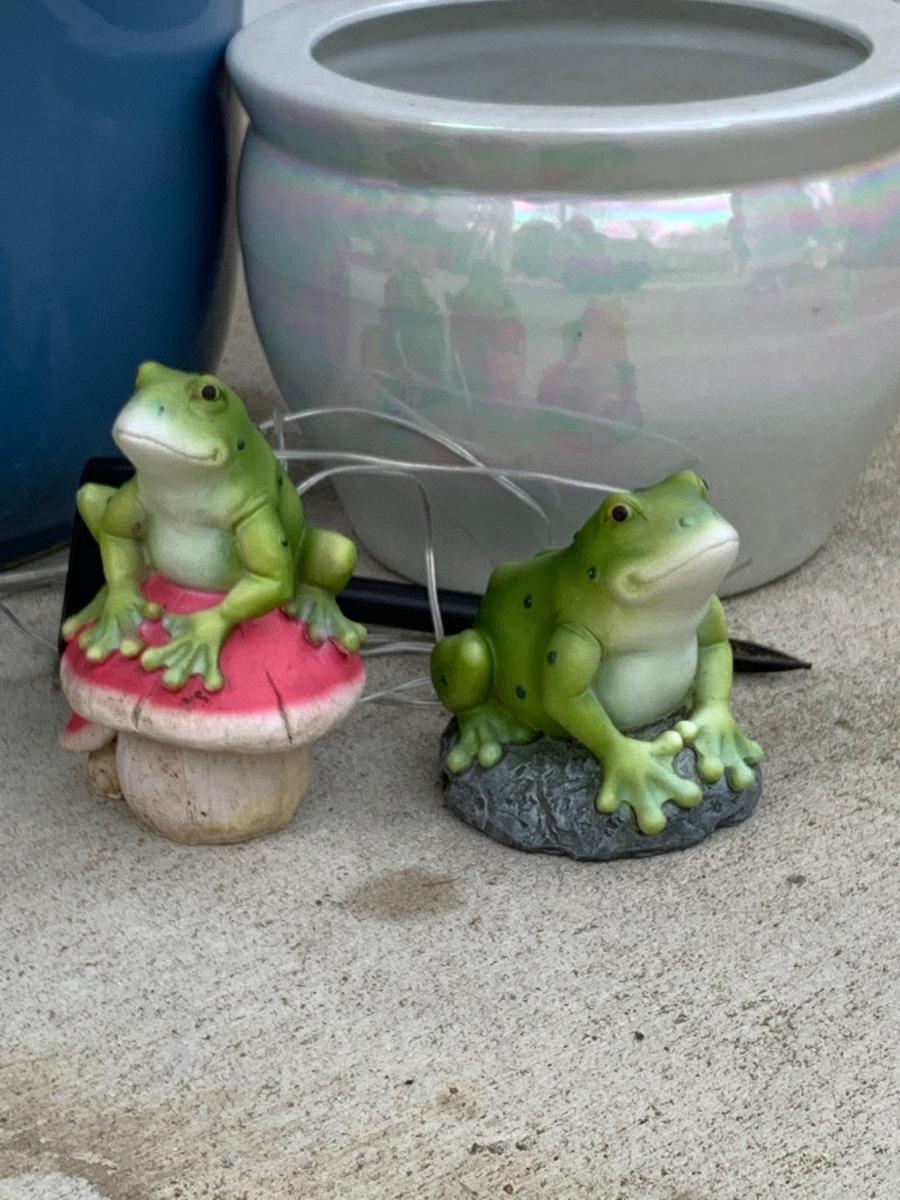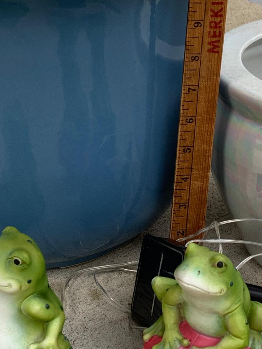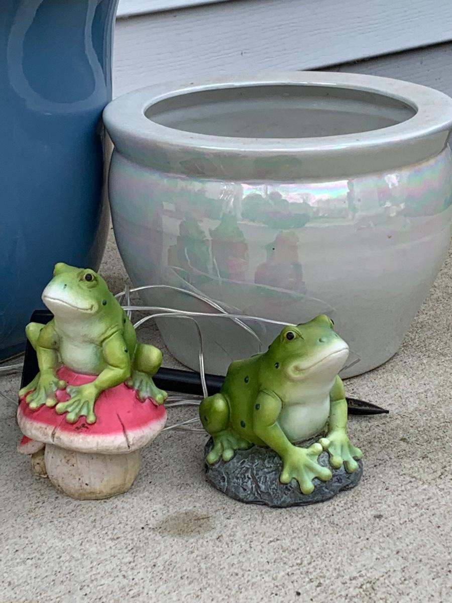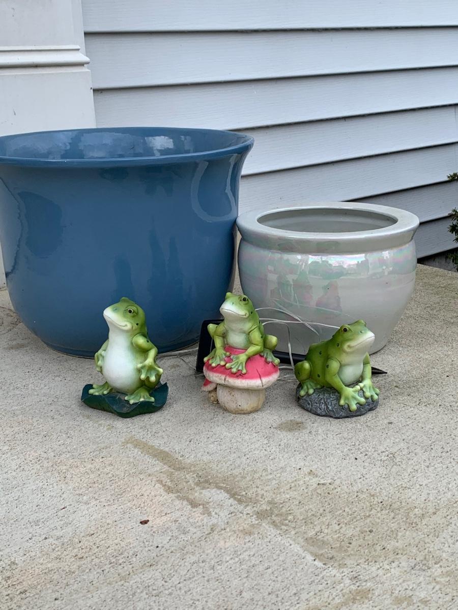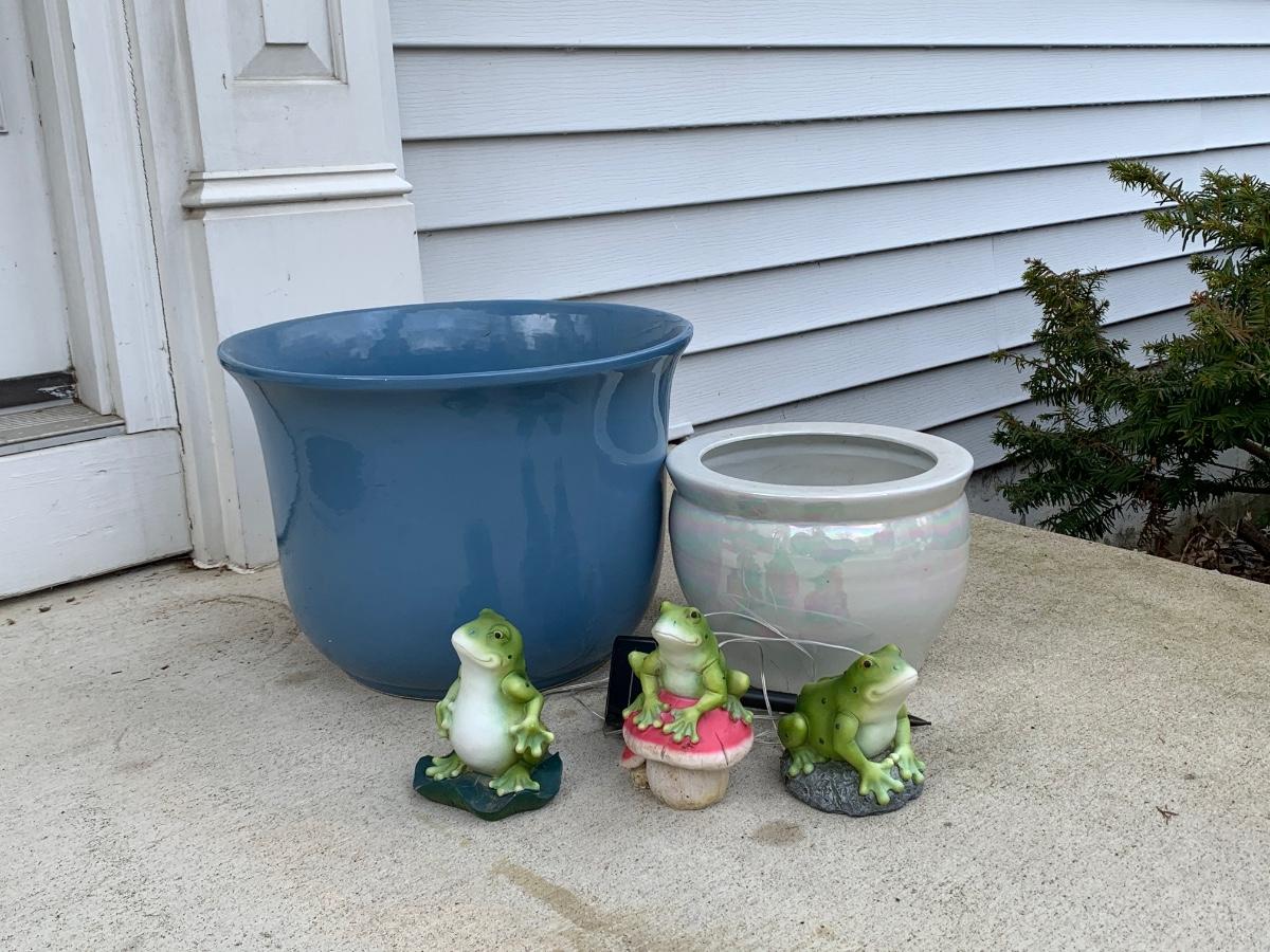 LOT 330R: New England Pottery Planter, Solar Frogs Garden Decor & Ceramic Planter