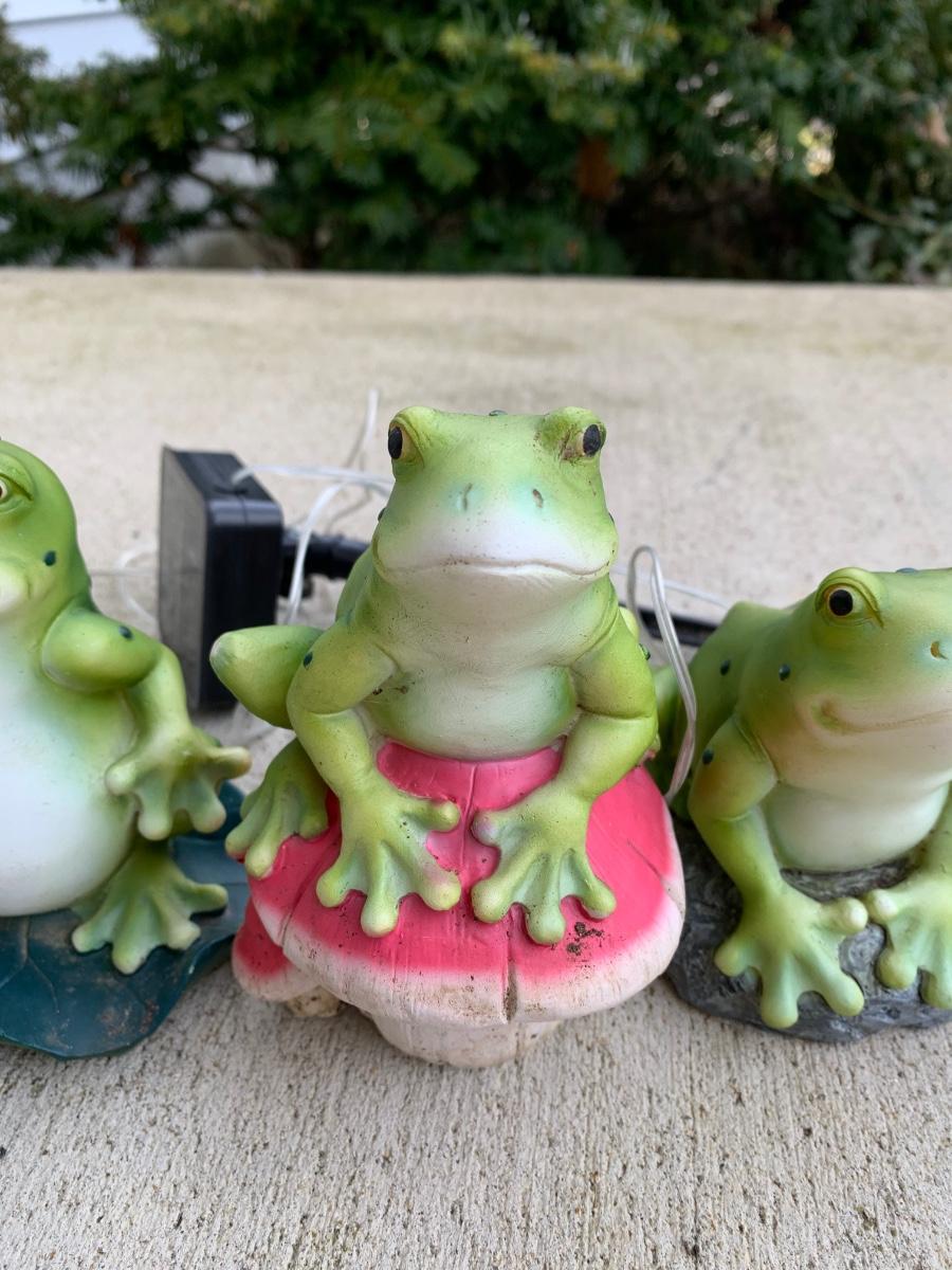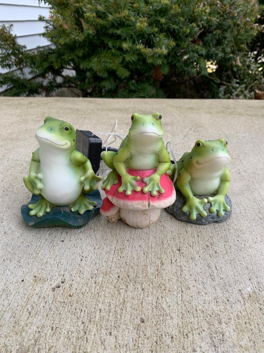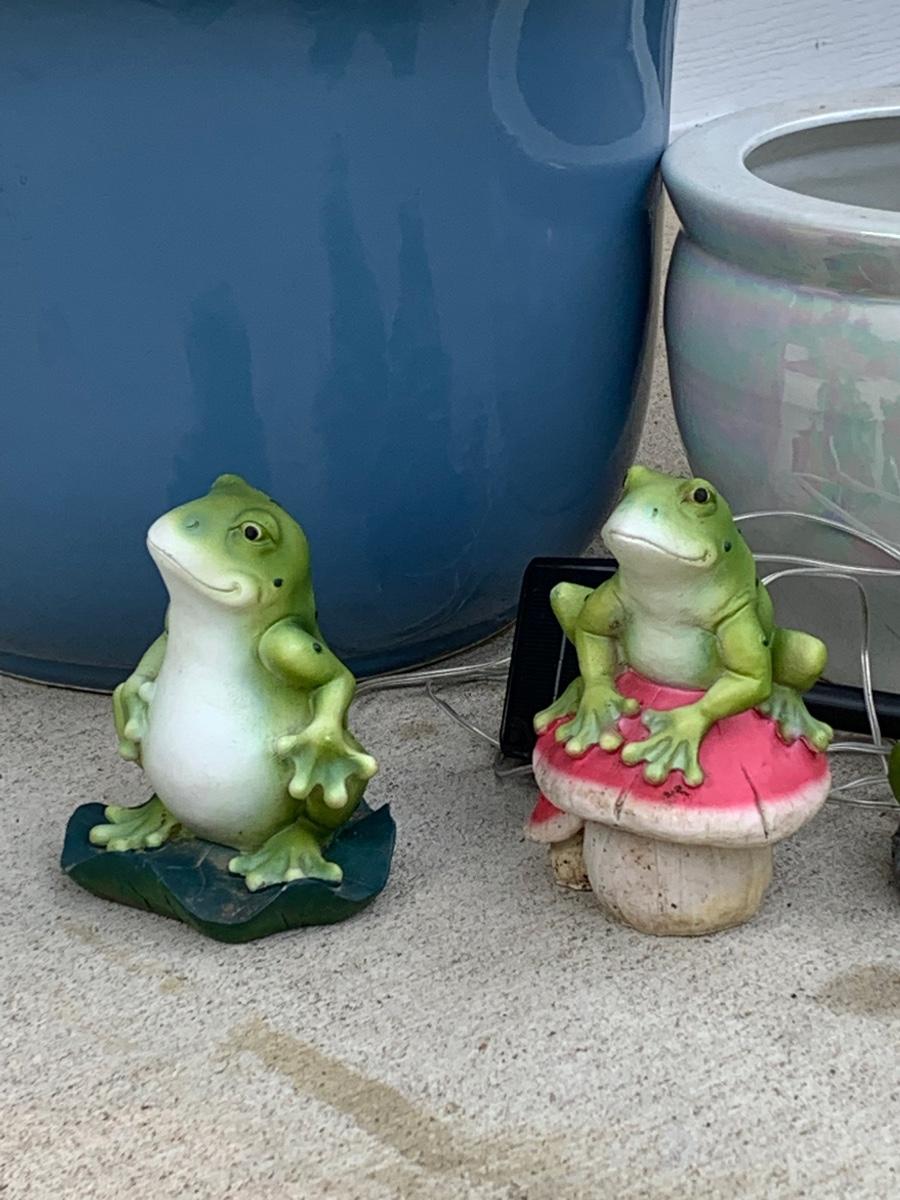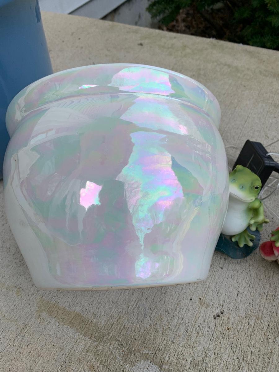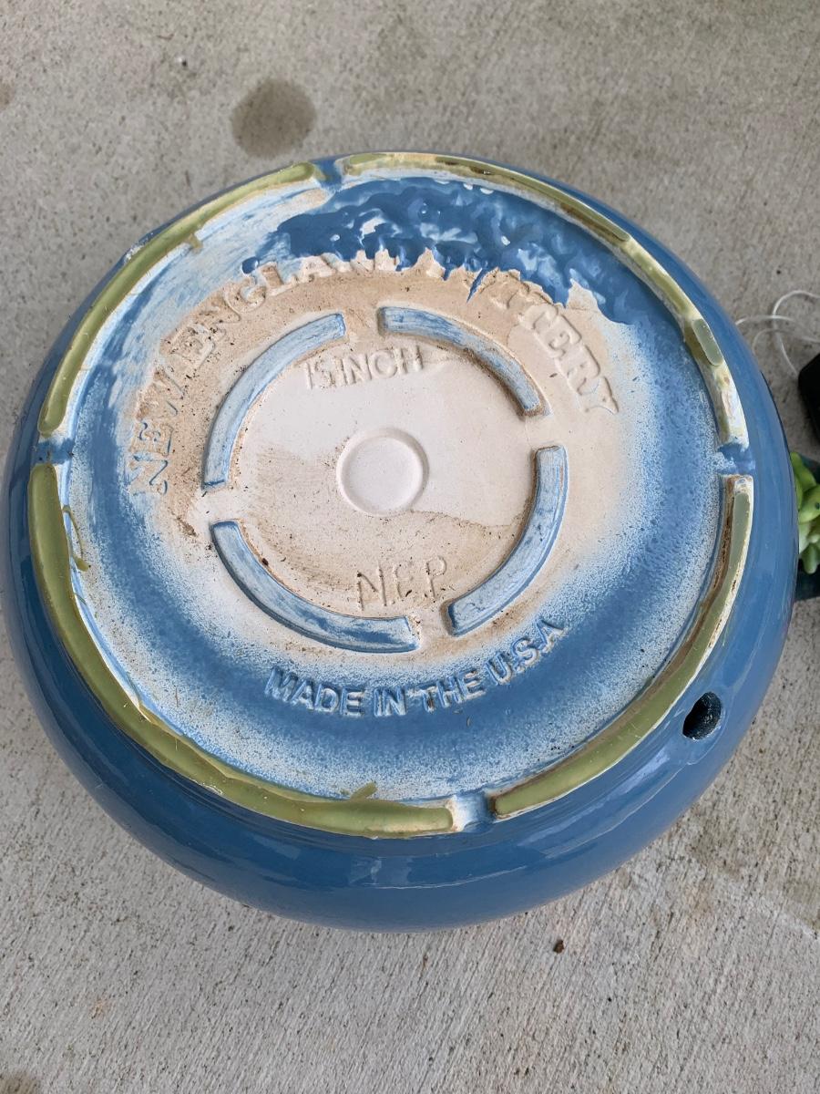 LOT 330R: New England Pottery Planter, Solar Frogs Garden Decor & Ceramic Planter