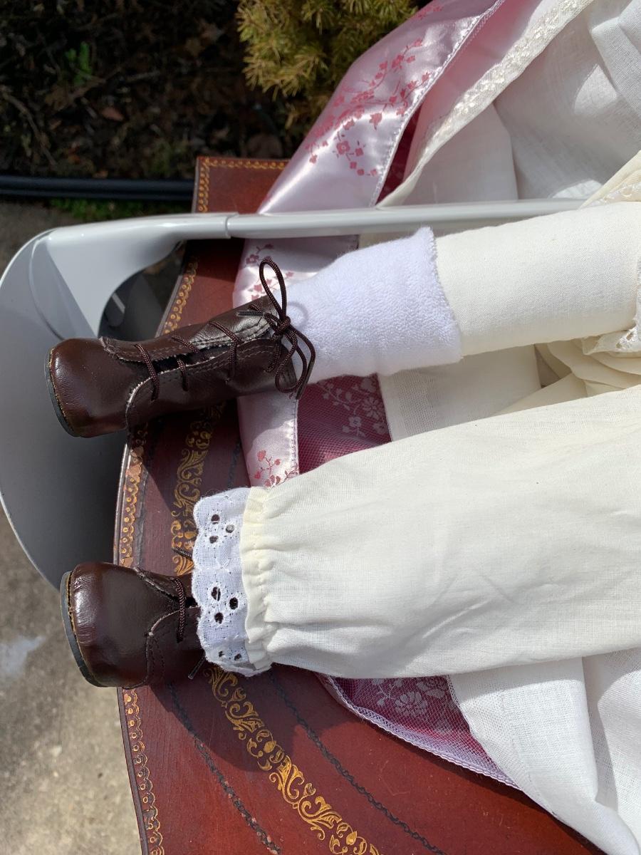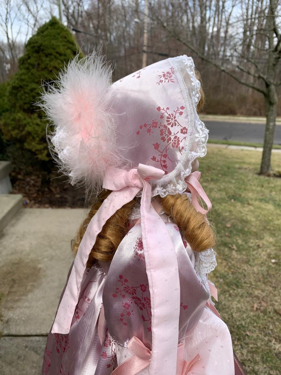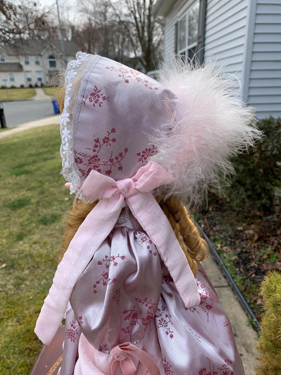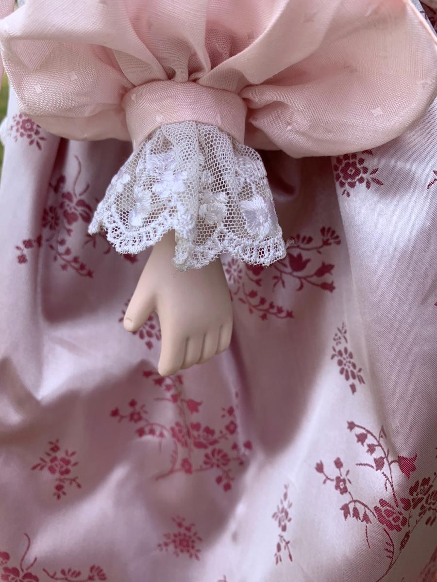 Collectible 21" porcelain doll with no marking.in Victorian era clothing.