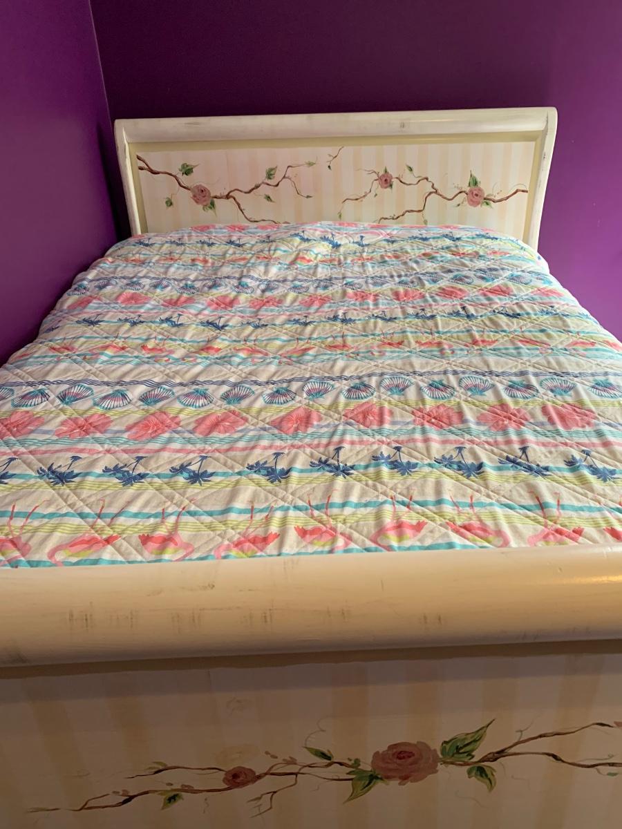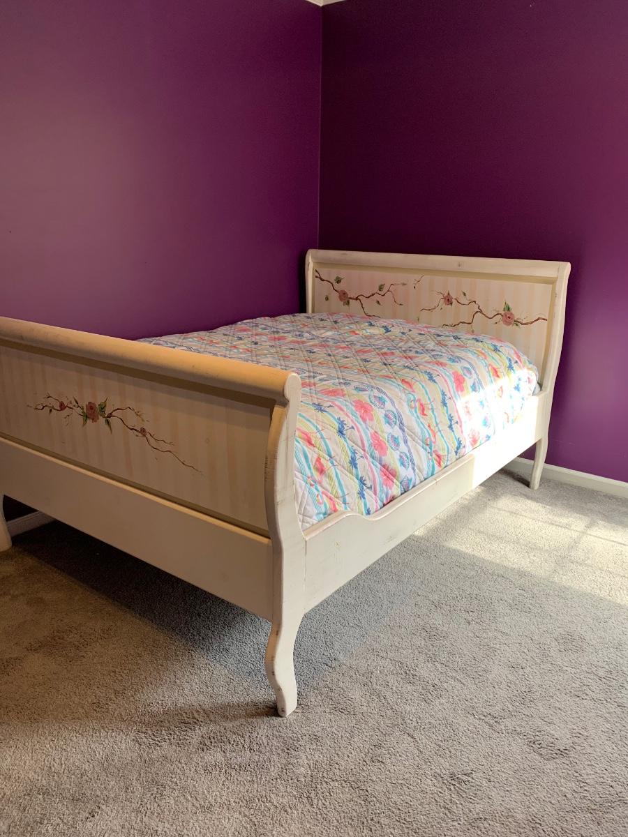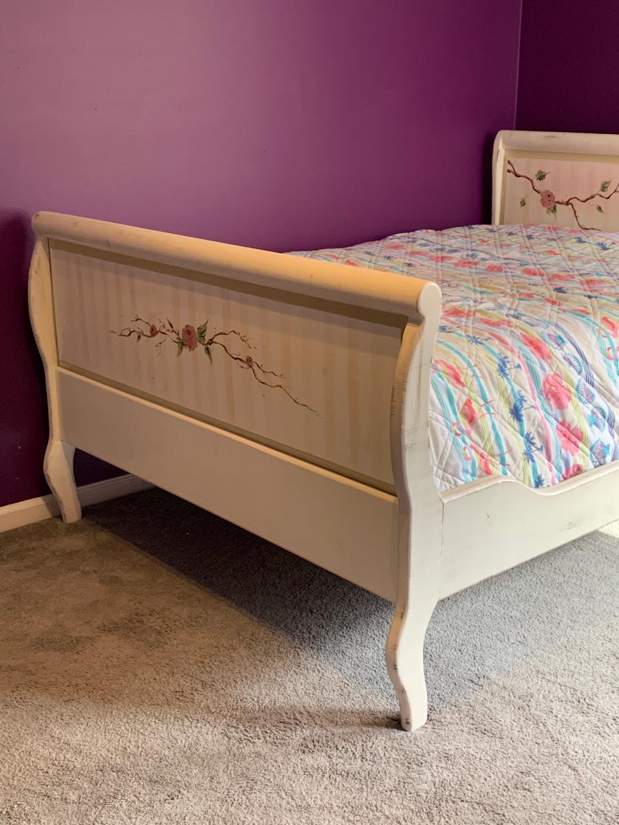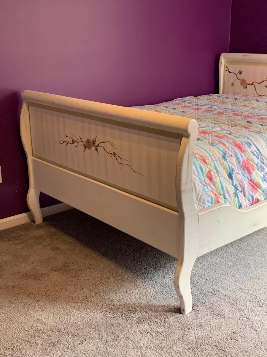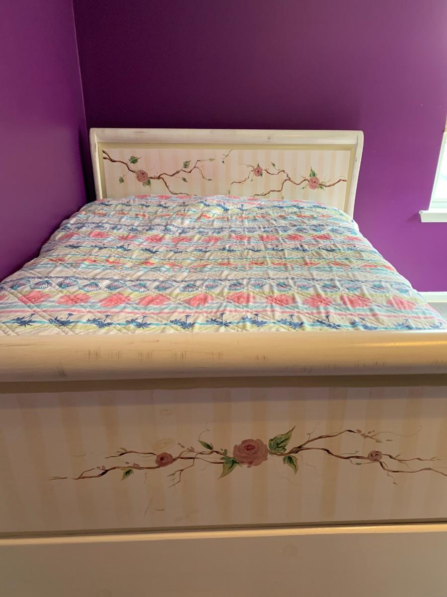 Nice wooden sleigh bed with floral painted accents (doesn't include bedding or mattress)