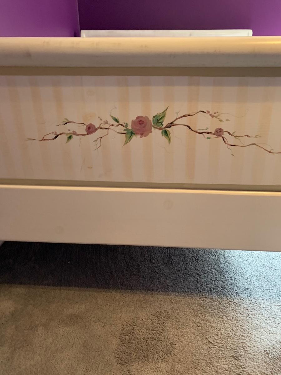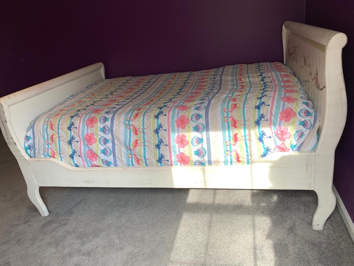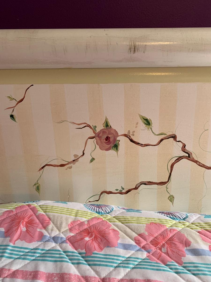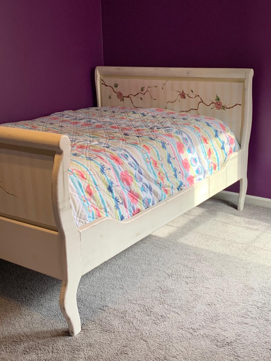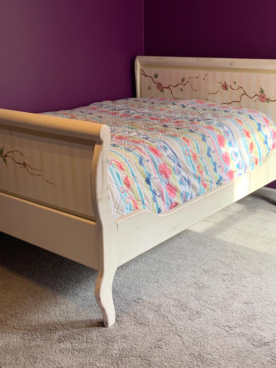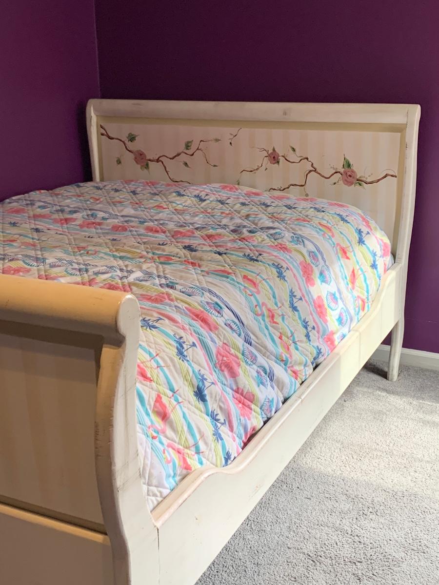 Nice wooden sleigh bed with floral painted accents (doesn't include bedding or mattress)