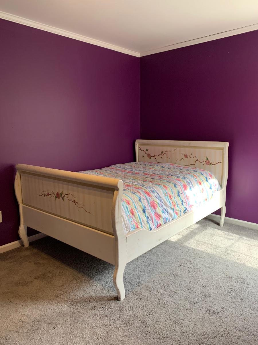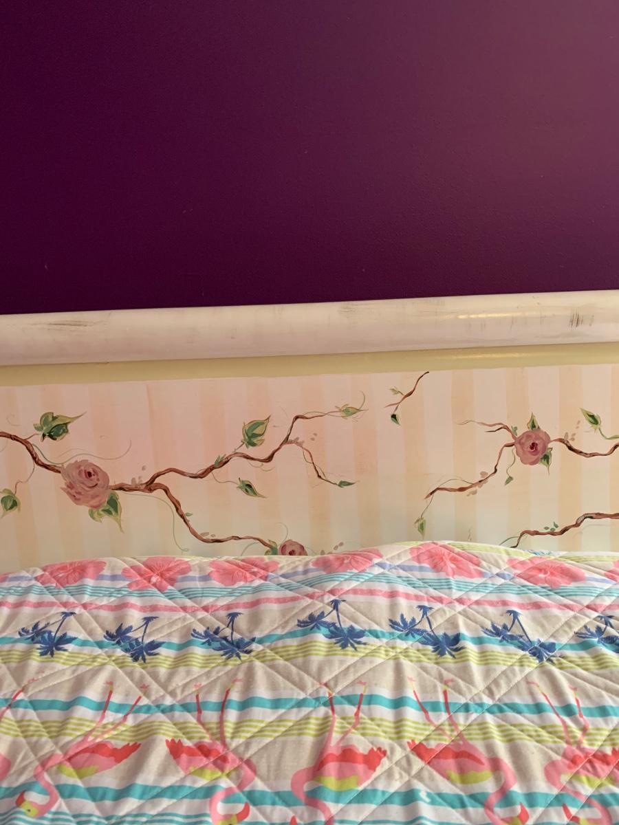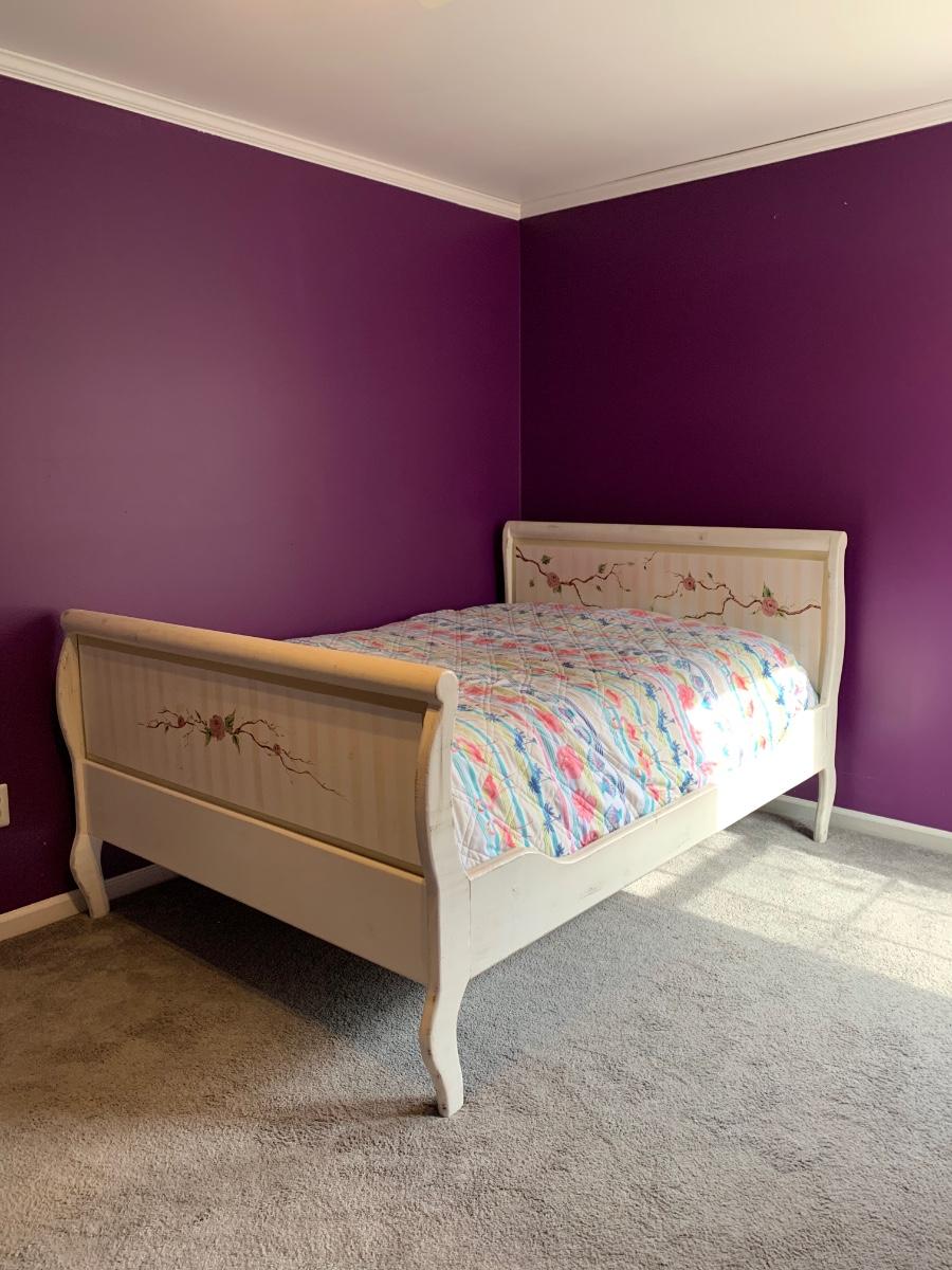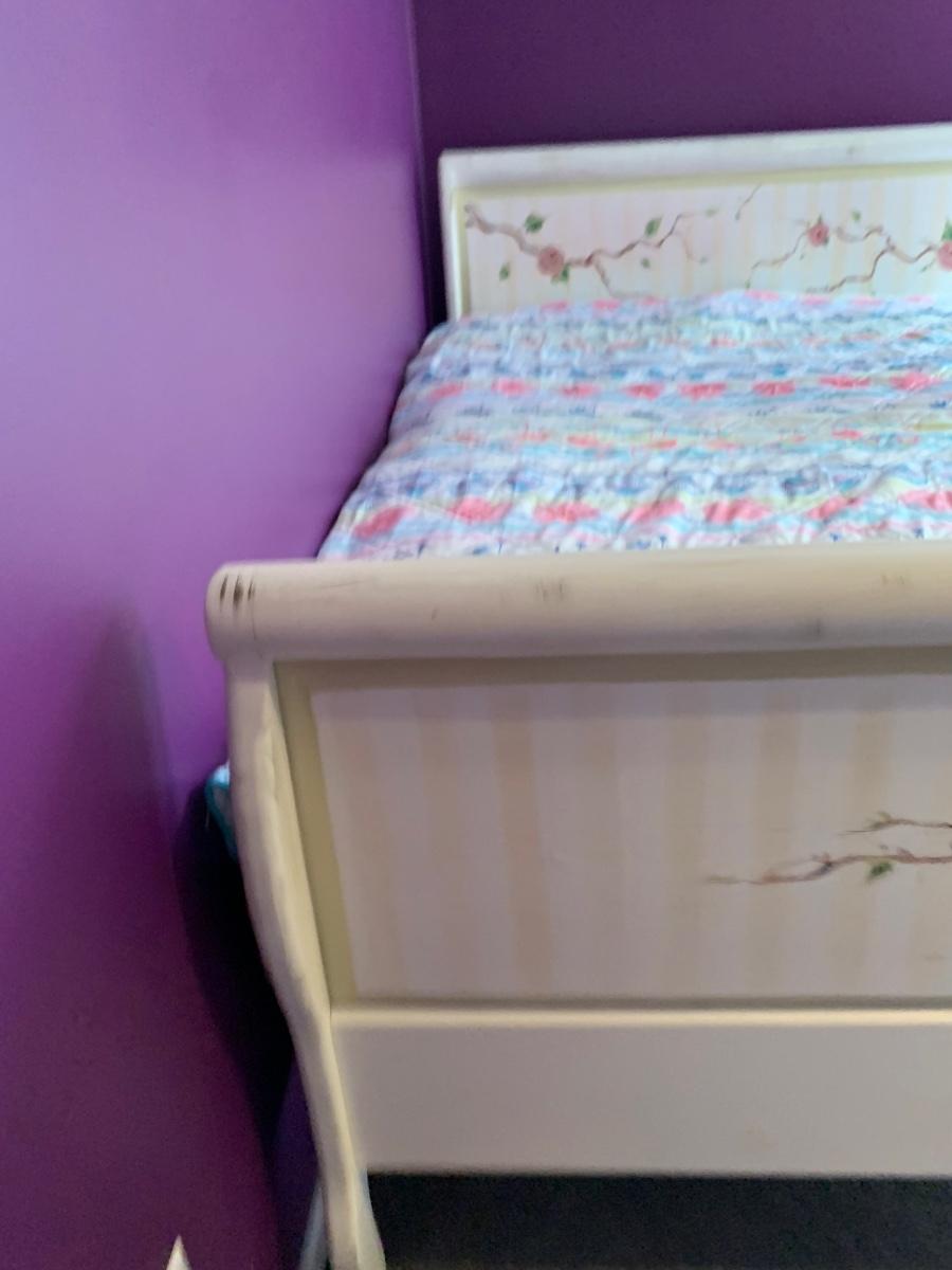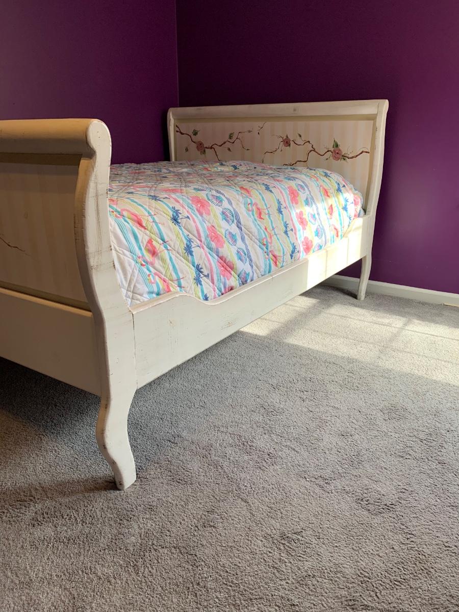 Nice wooden sleigh bed with floral painted accents (doesn't include bedding or mattress)