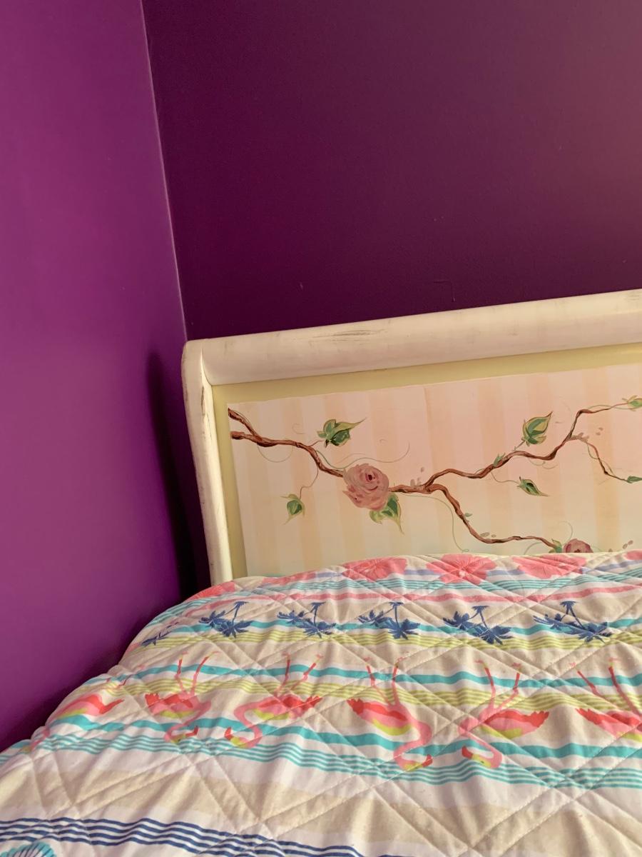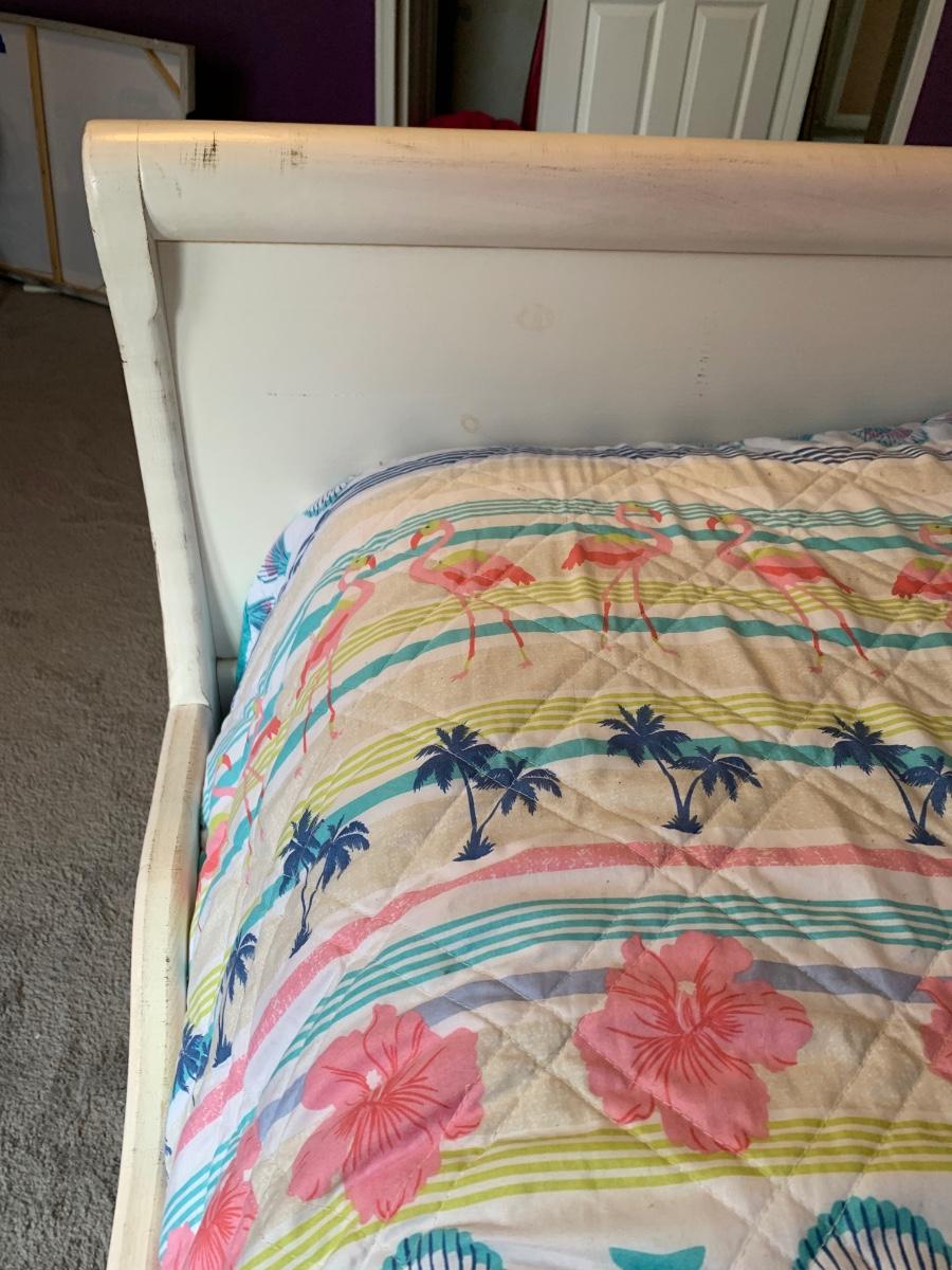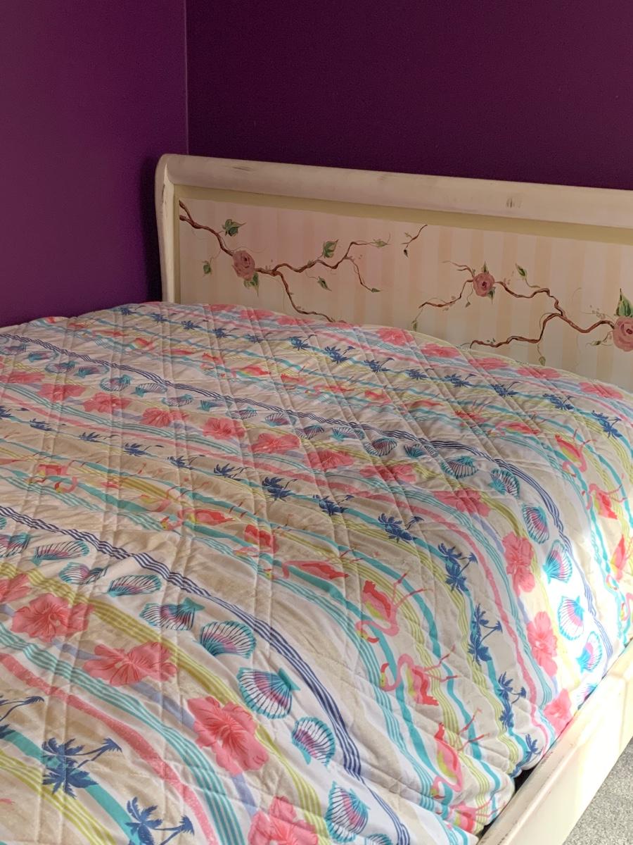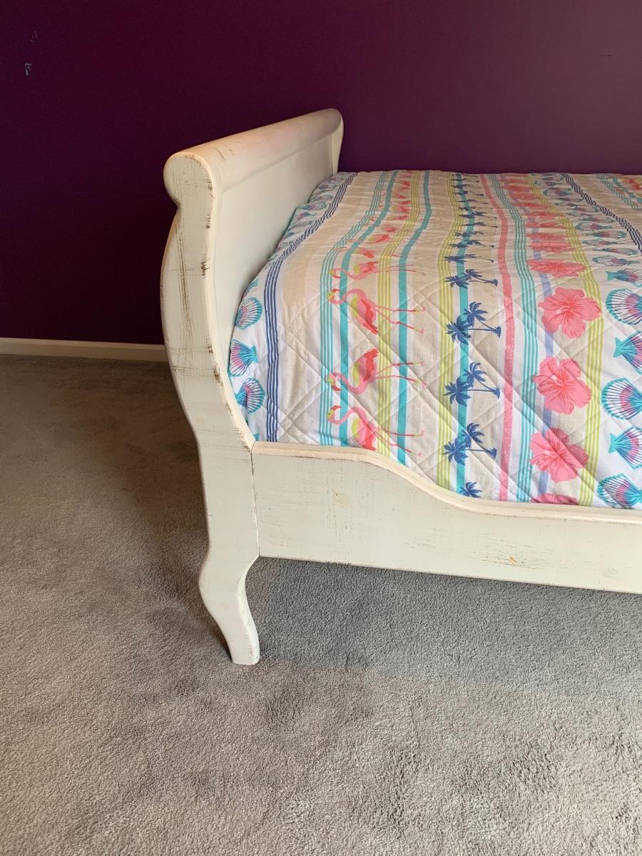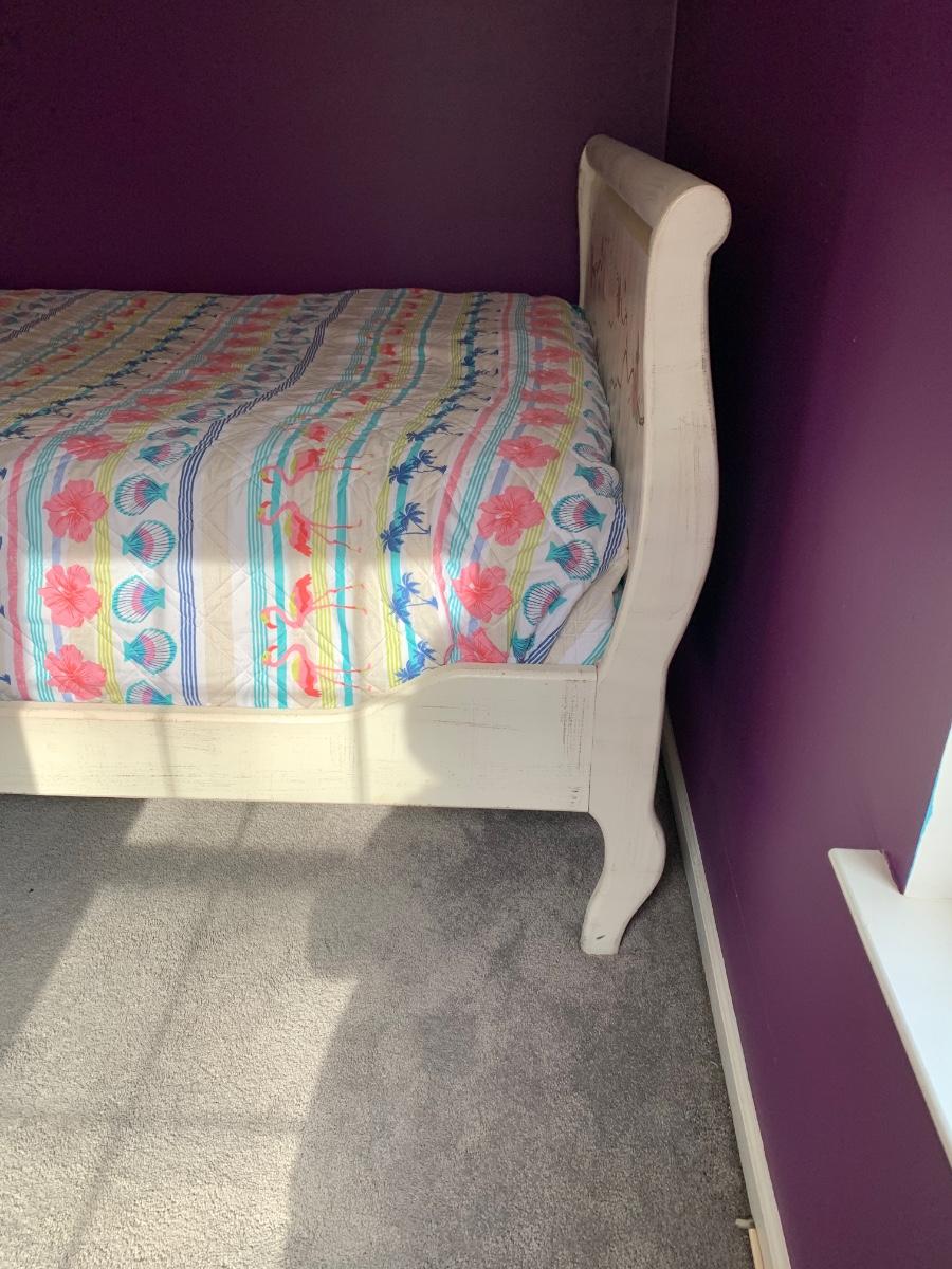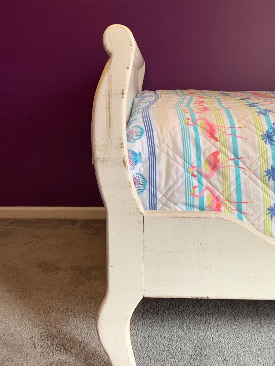 Nice wooden sleigh bed with floral painted accents (doesn't include bedding or mattress)
