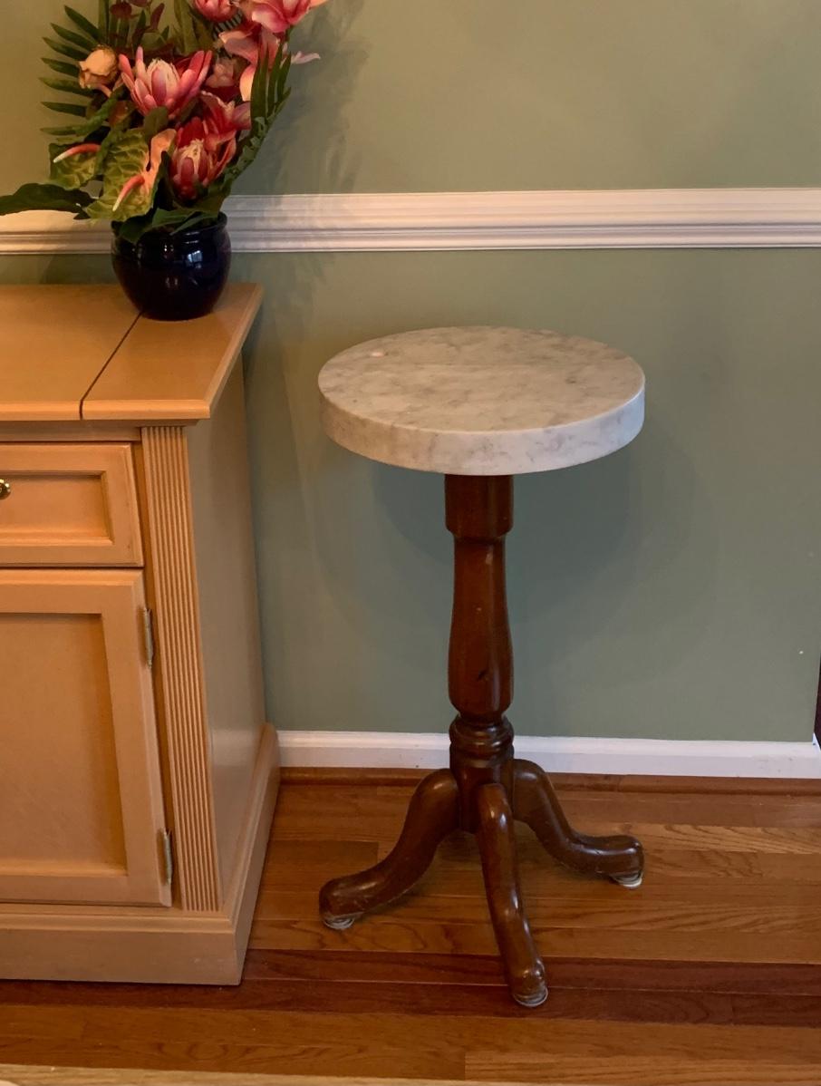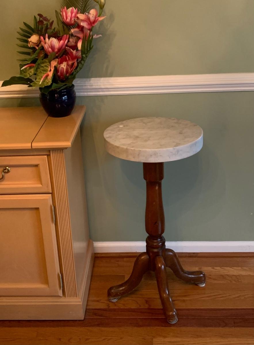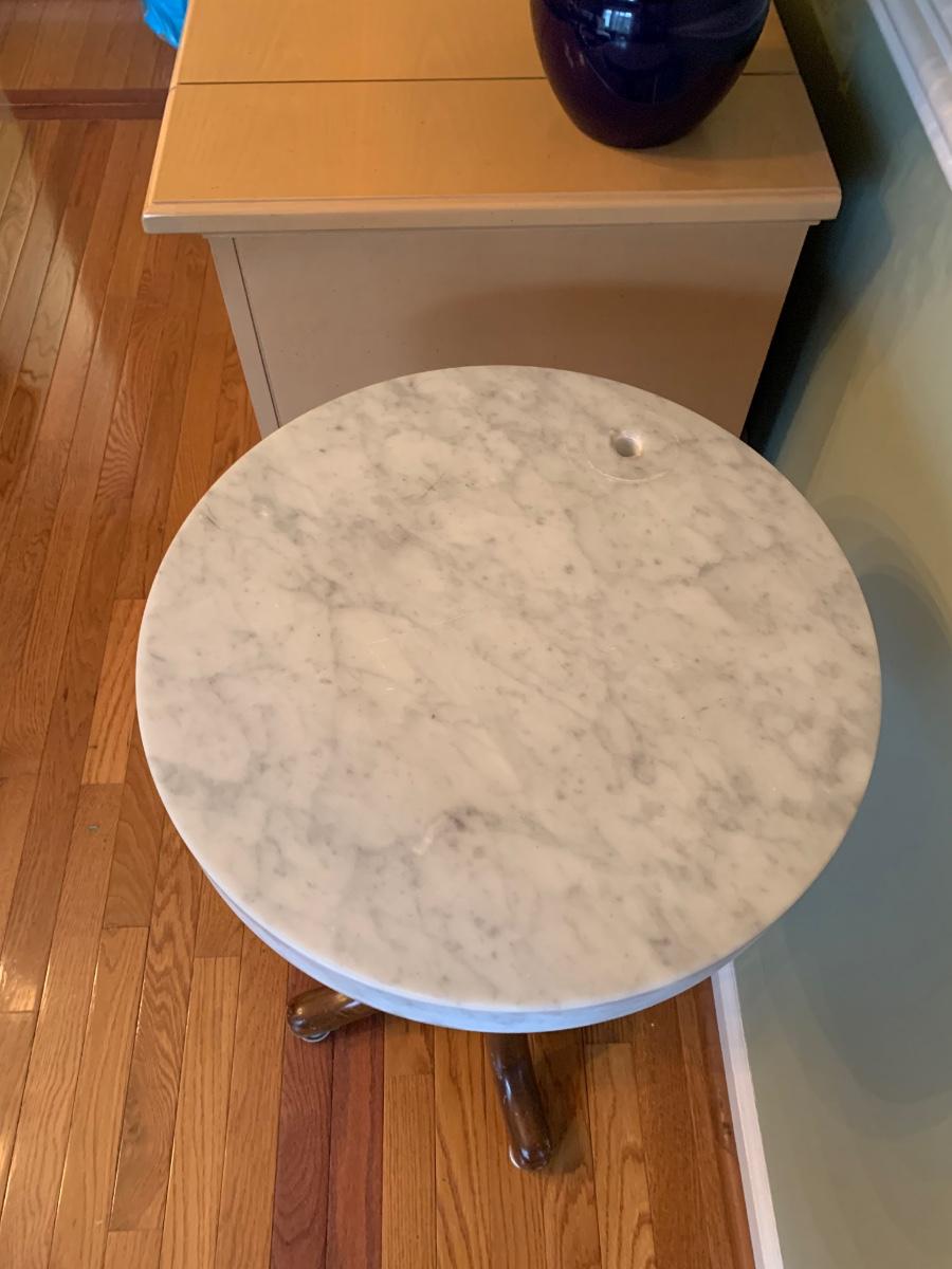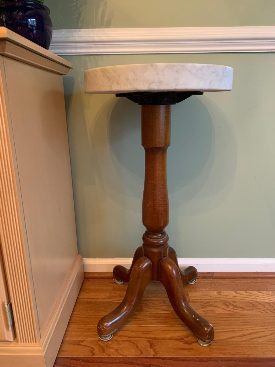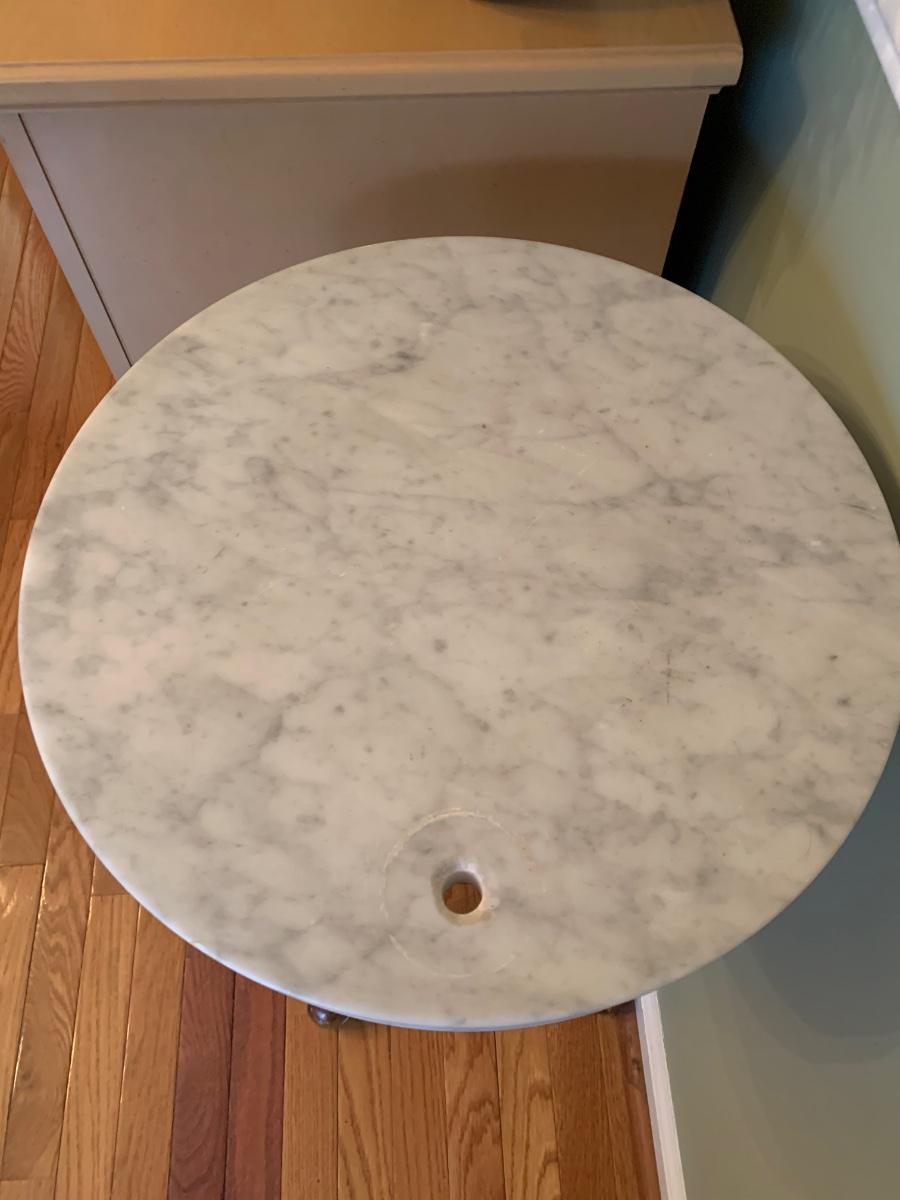 Petit table/plant stand. Top has a whole drilled through the marble.
