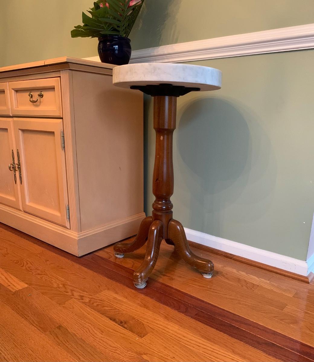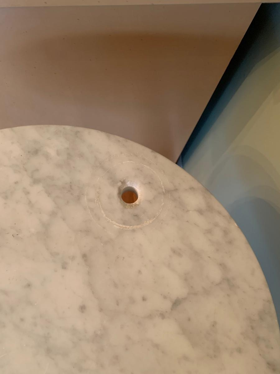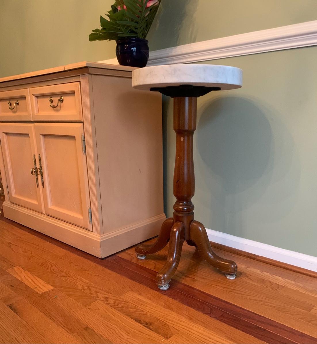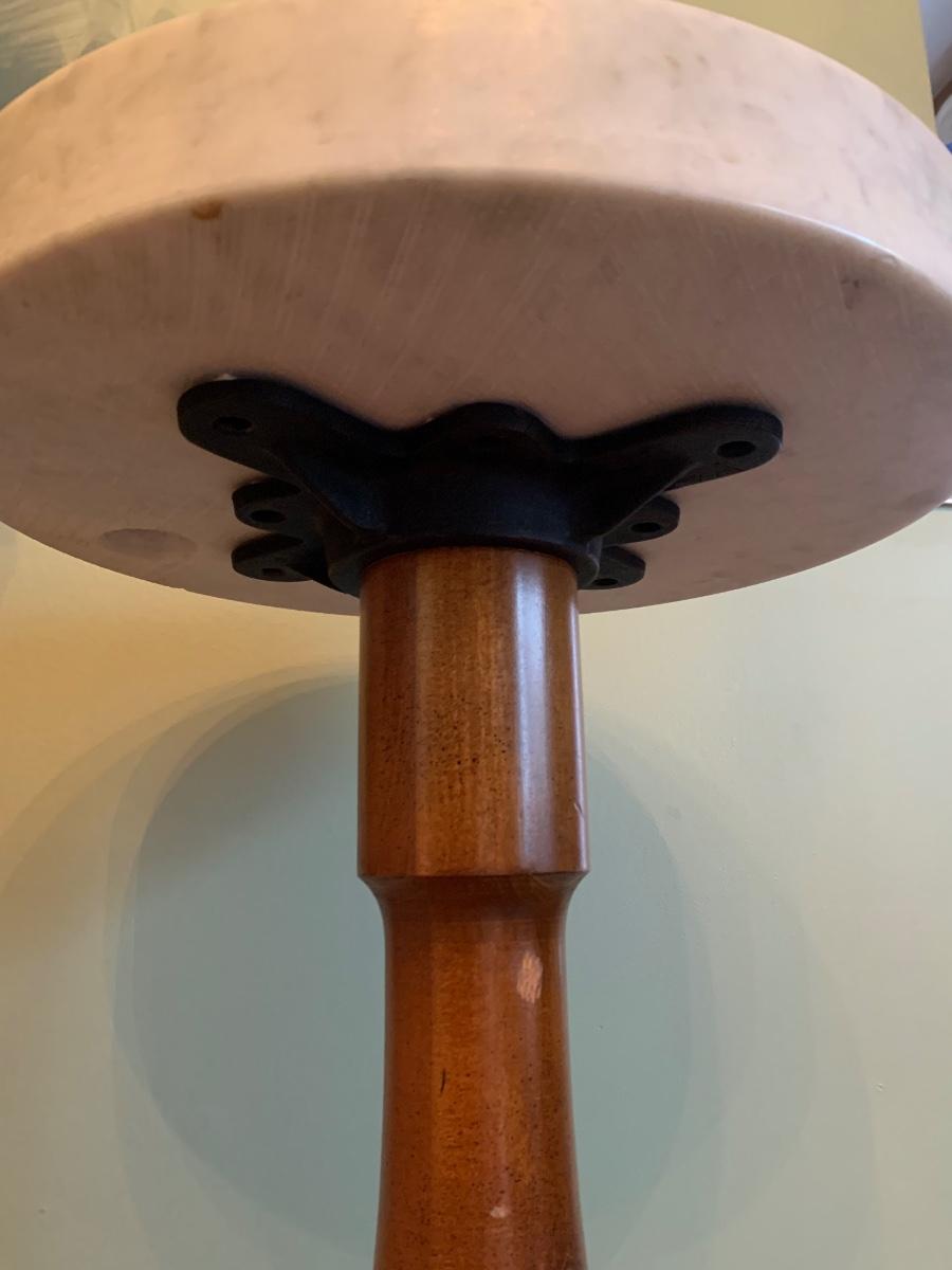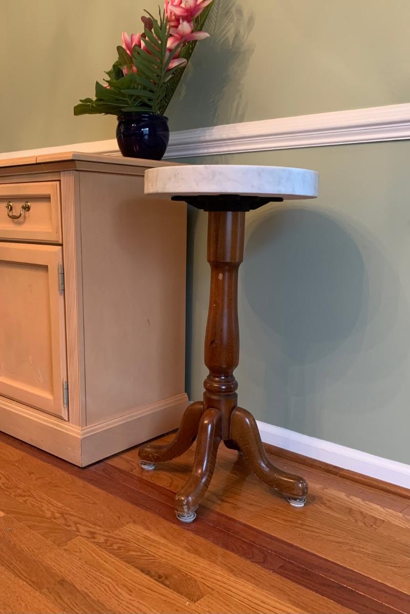Petit table/plant stand. Top has a whole drilled through the marble.