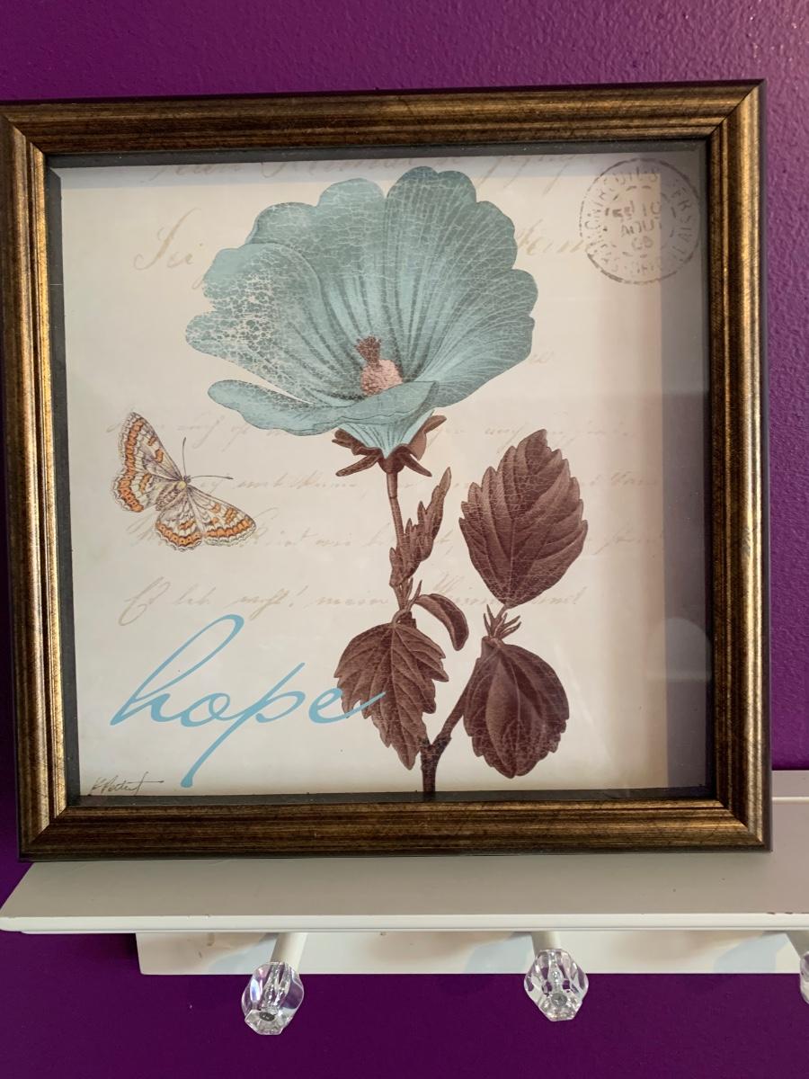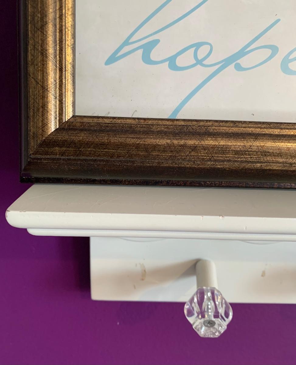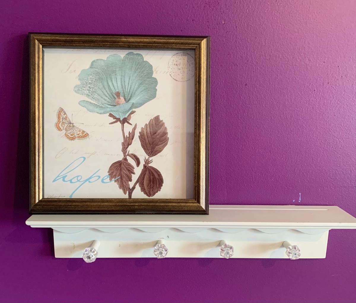 Home Decor Shelf - 21 x 4.5, and Framed floral print 13 x 13