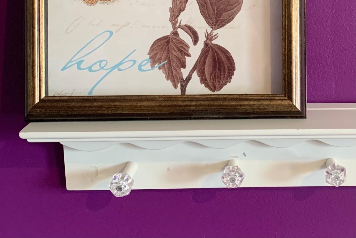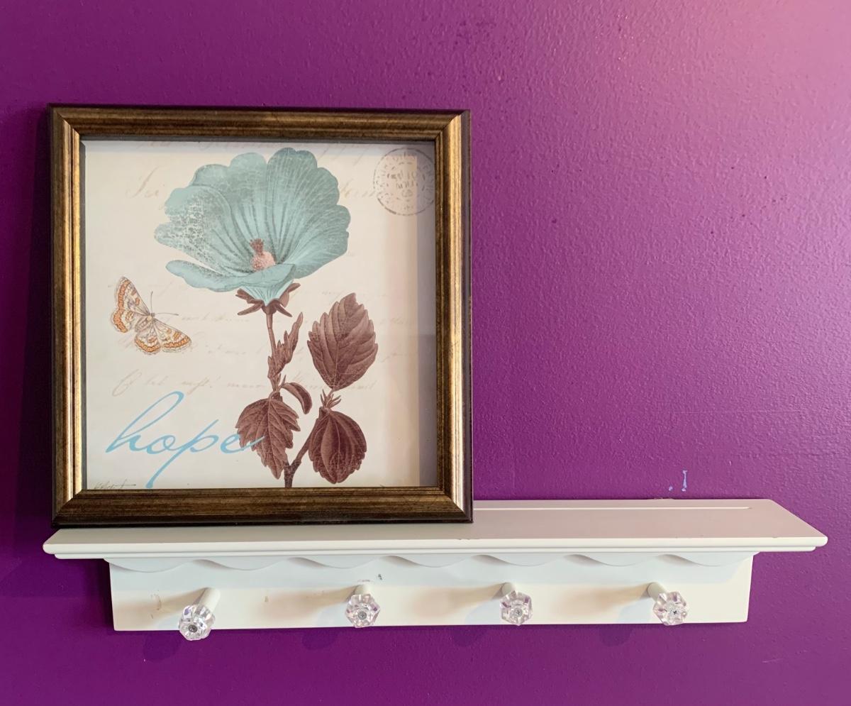 LOT 359R: White Shelf w/ Glass Pegs & Floral Print