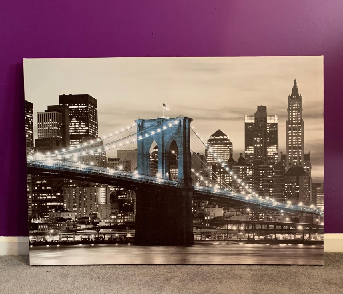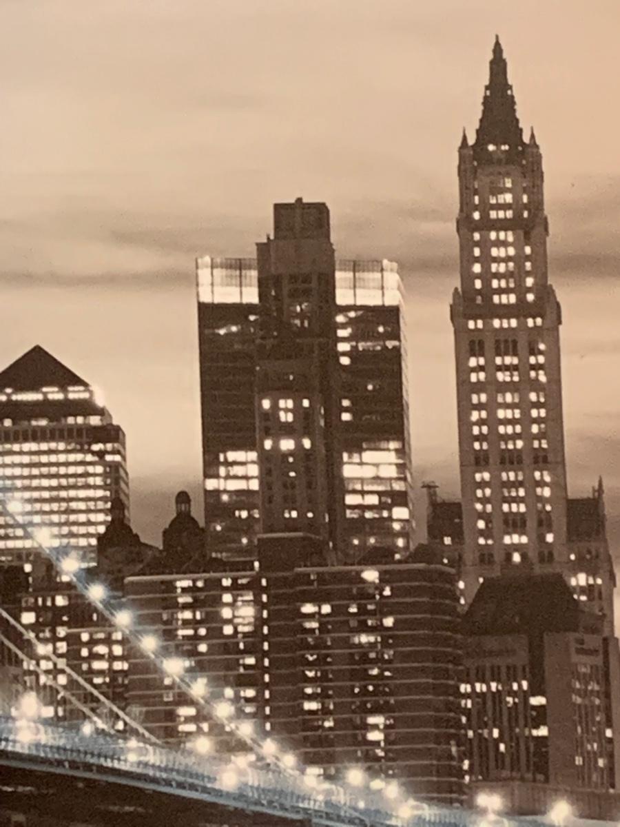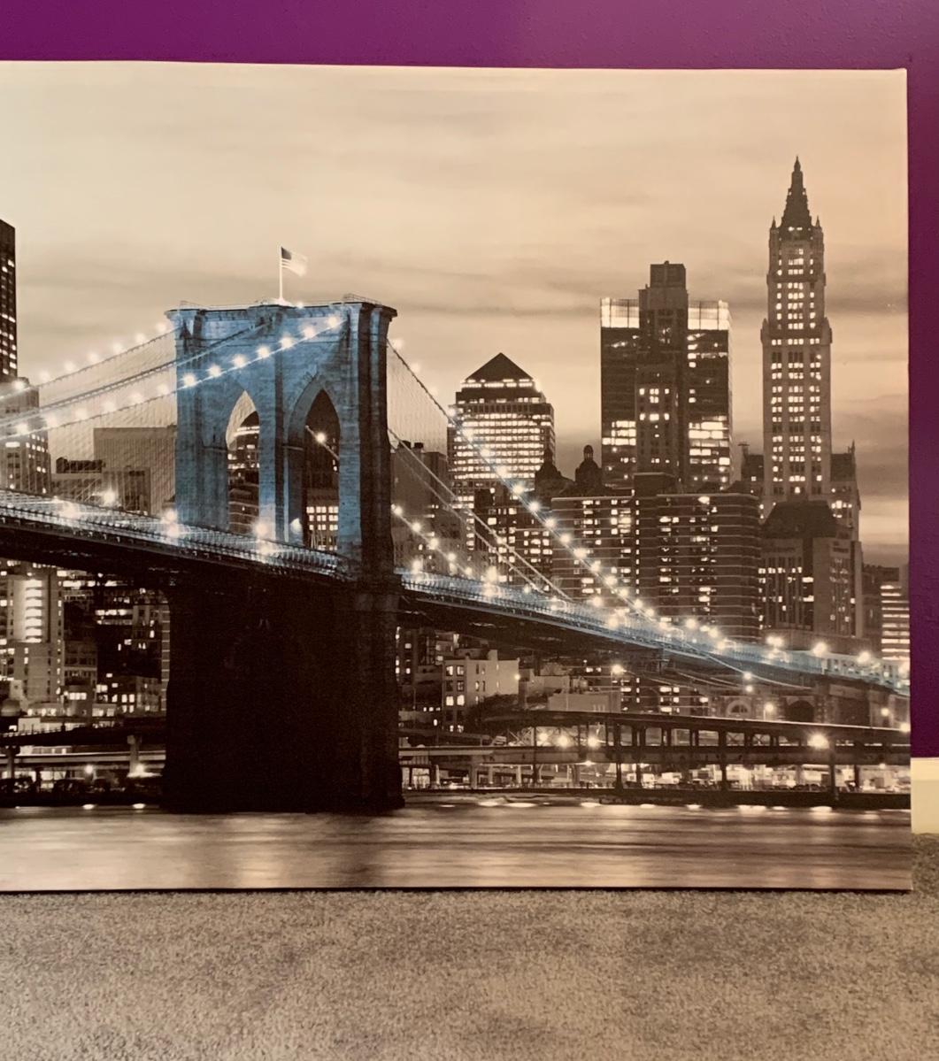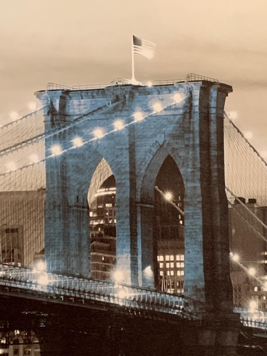 Beautiful City Scape canvas featuring the American Flag 39.5 x 28