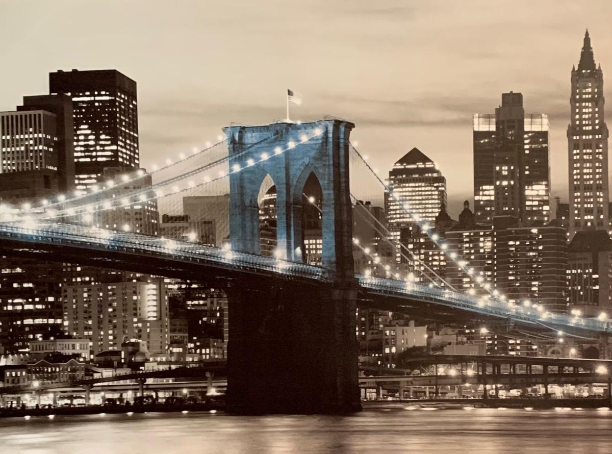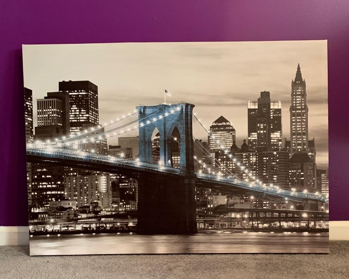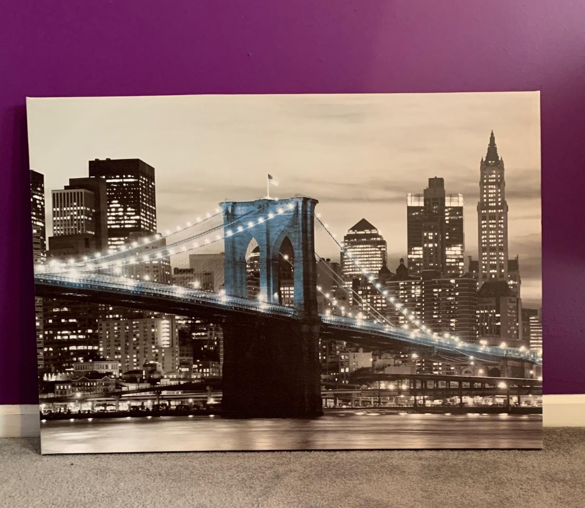 Beautiful City Scape canvas featuring the American Flag 39.5 x 28