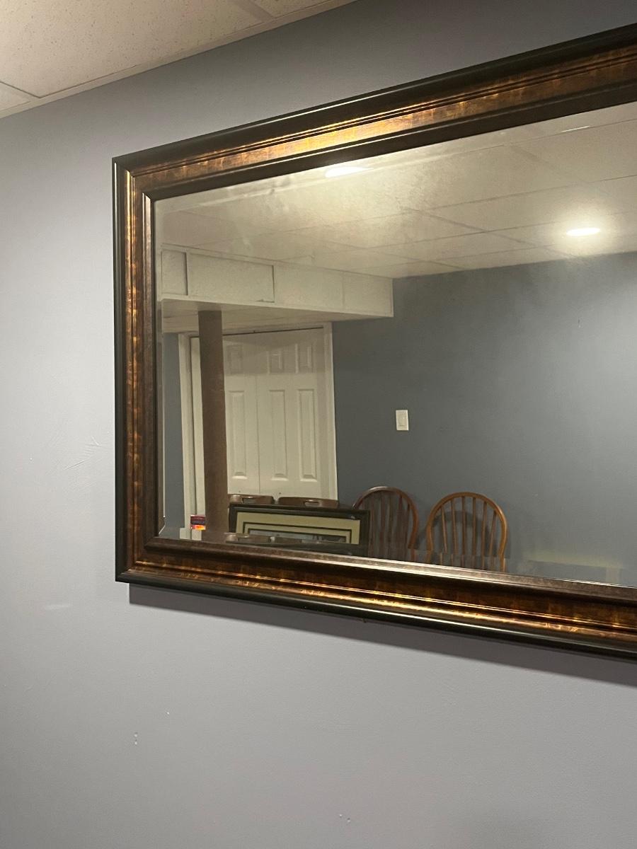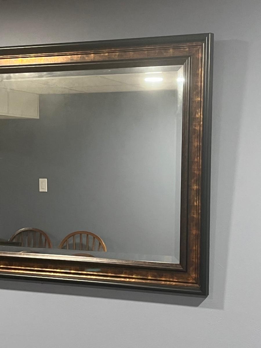 Decorative mirror. 42X30.Please see all pictures as they are the best representation of the items. The pictures show condition, measurements if taken, and what is included in the lot. Due to the large amount that we photograph and the time frame, we are not always able to take measurements. All items unless noted, are pre-owned and have been used. If you purchased furniture, you must bring help. We do not allow one person to carry large furniture out on their own. Bring help, tools and a truck for the safety of our client’s homes, and your personal safety. Any damages that result to the property including walls, and floors due to moving of the furniture will be charged to the buyer. Company policy. Thank you.