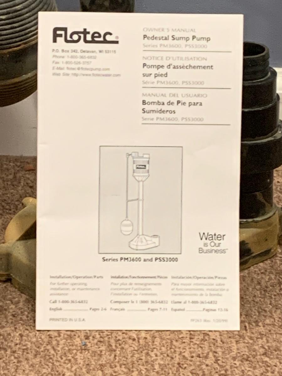LOT 392R: Flotec Pedestal  Sump Pump