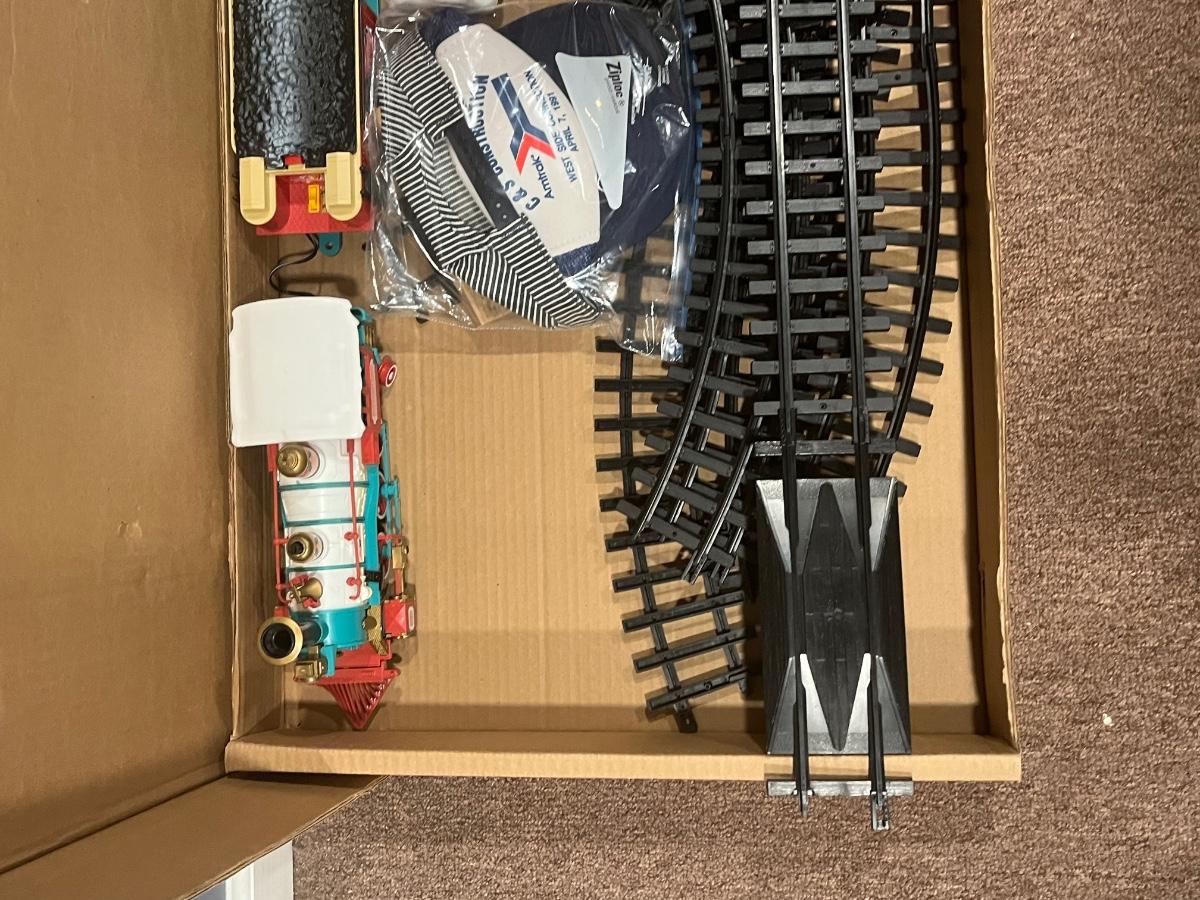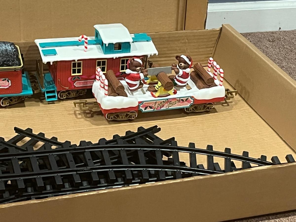 Holiday train set. Untested. 2 train jays and wooden train whistle. Please see all pictures as they are the best representation of the items. The pictures show condition, measurements if taken, and what is included in the lot. Due to the large amount that we photograph and the time frame, we are not always able to take measurements. All items unless noted, are pre-owned and have been used. If you purchased furniture, you must bring help. We do not allow one person to carry large furniture out on their own. Bring help, tools and a truck for the safety of our client’s homes, and your personal safety. Any damages that result to the property including walls, and floors due to moving of the furniture will be charged to the buyer. Company policy. Thank you.
