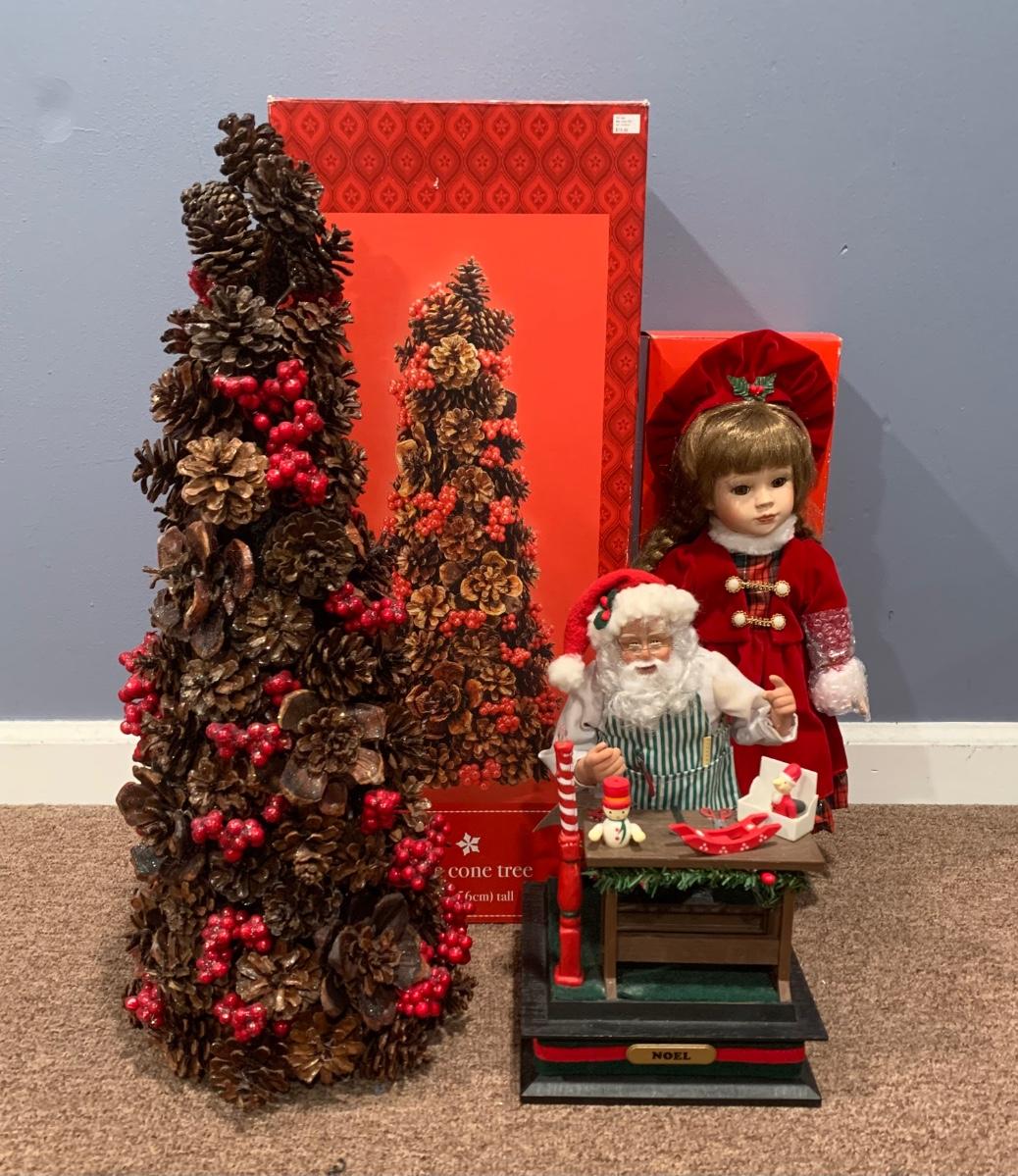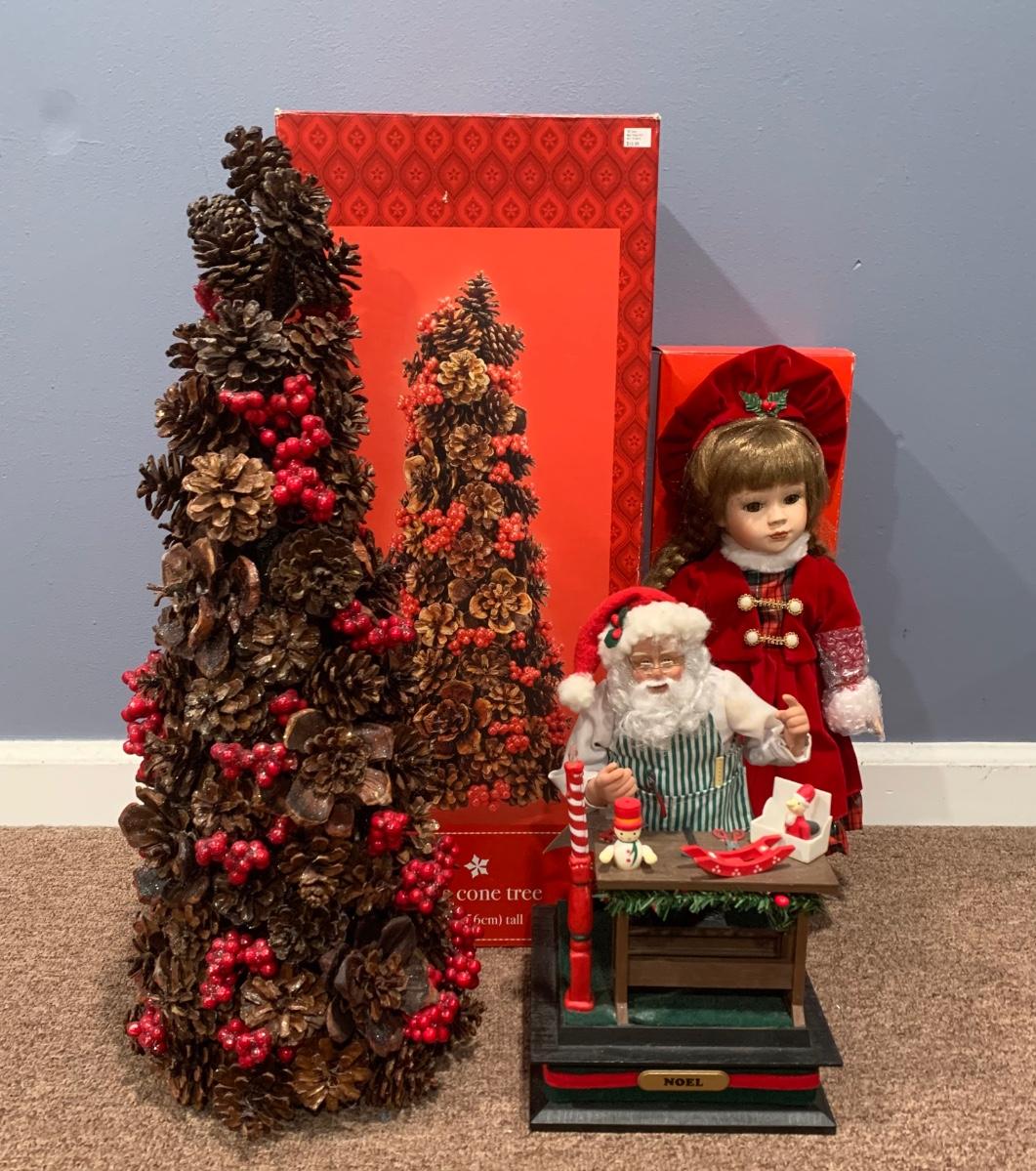 LOT 401R: Holiday Decor: Music/Dancing Santa, Pine Cone Tree and More