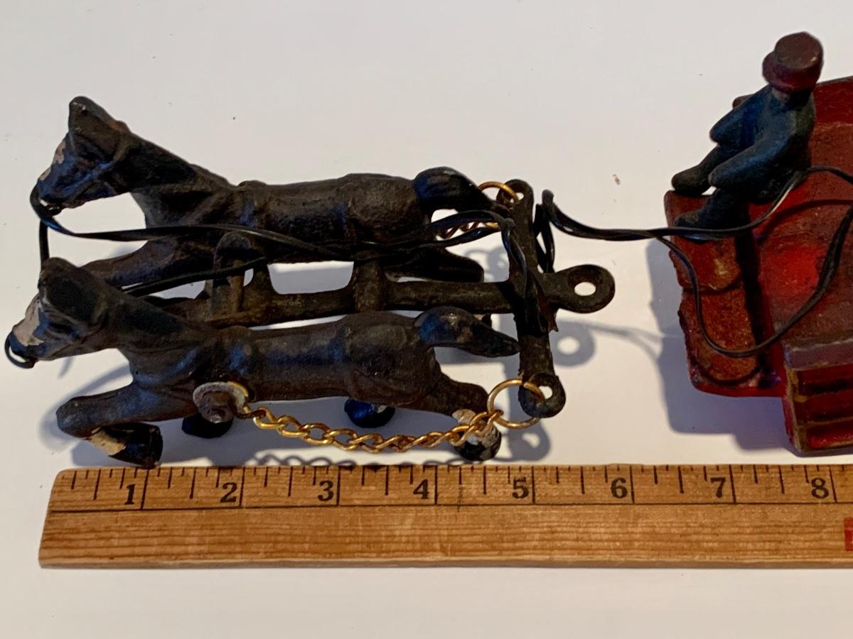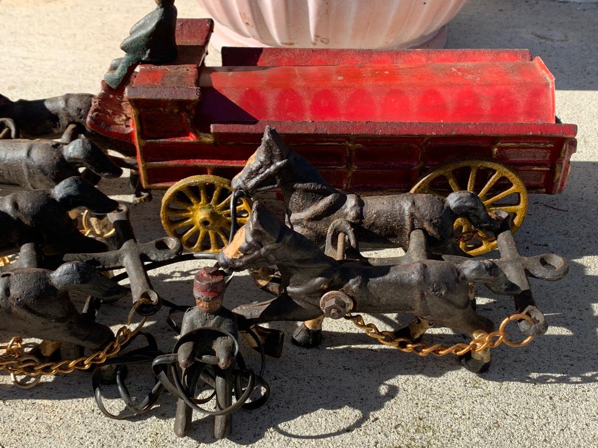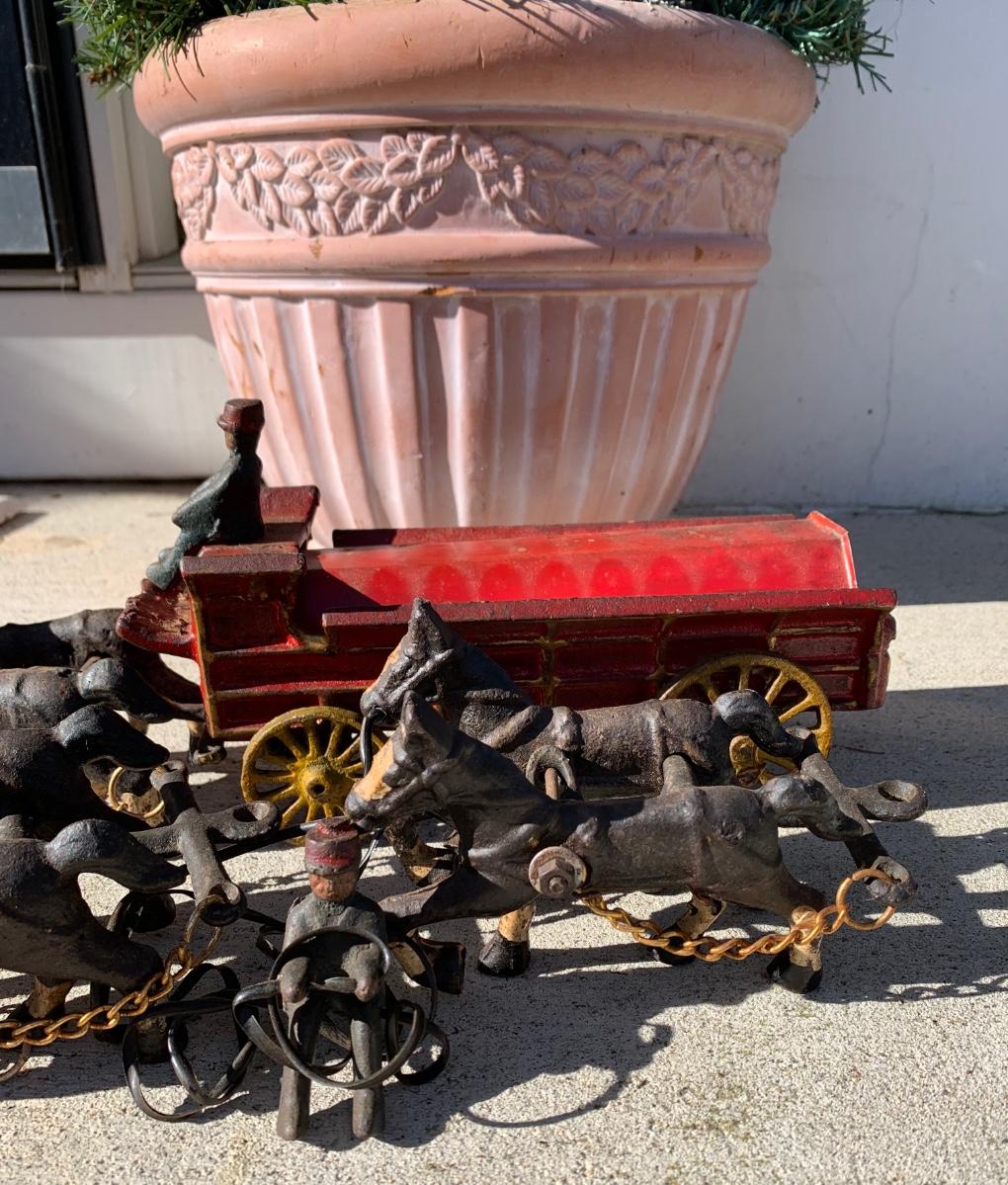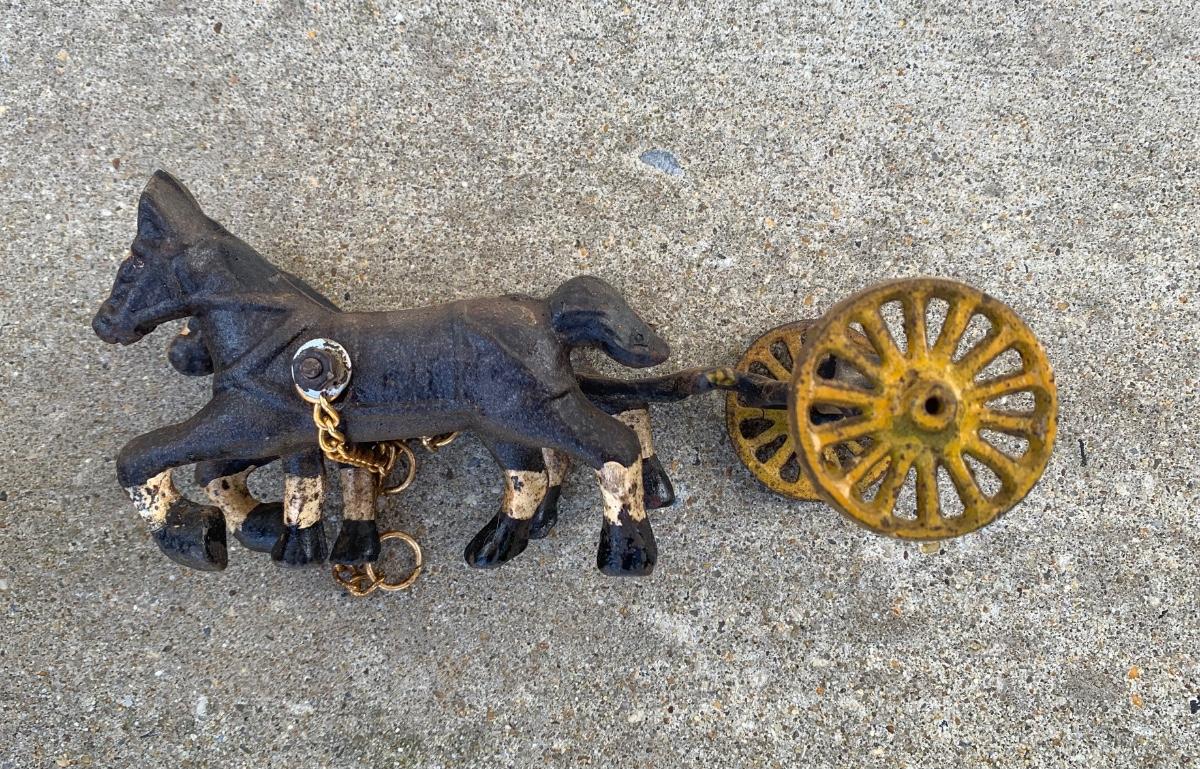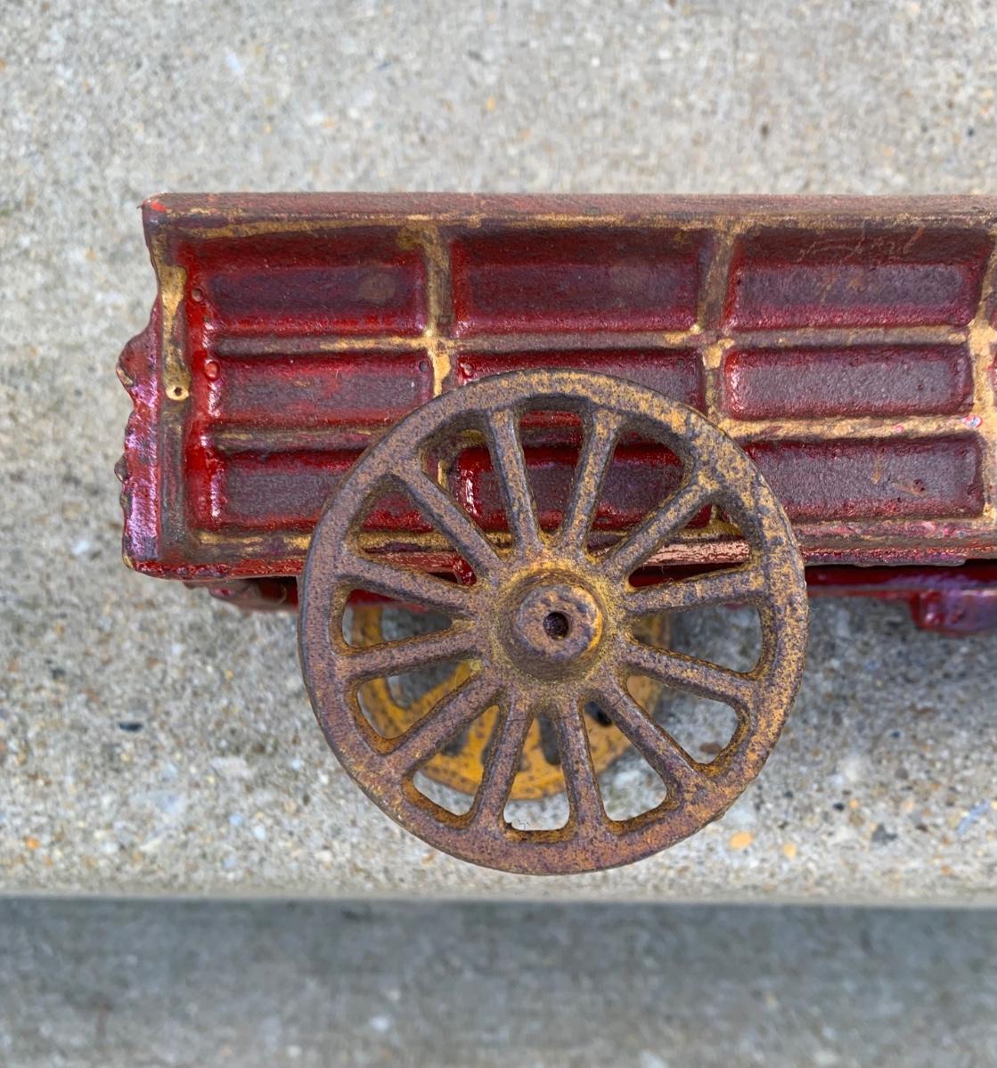 LOT 406R: Cast Iron Vintage Toy Horse Drawn Wagon w/People