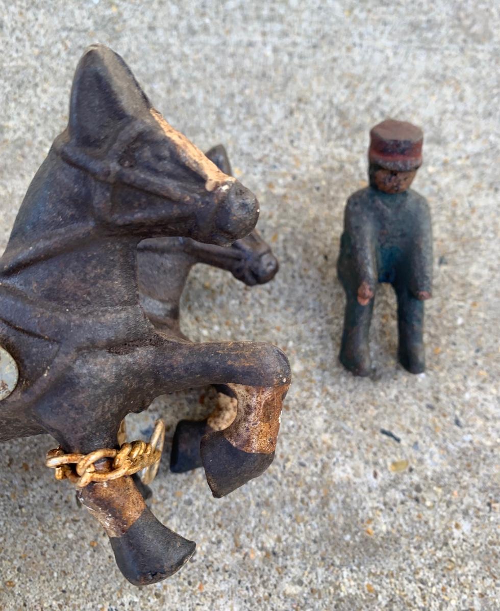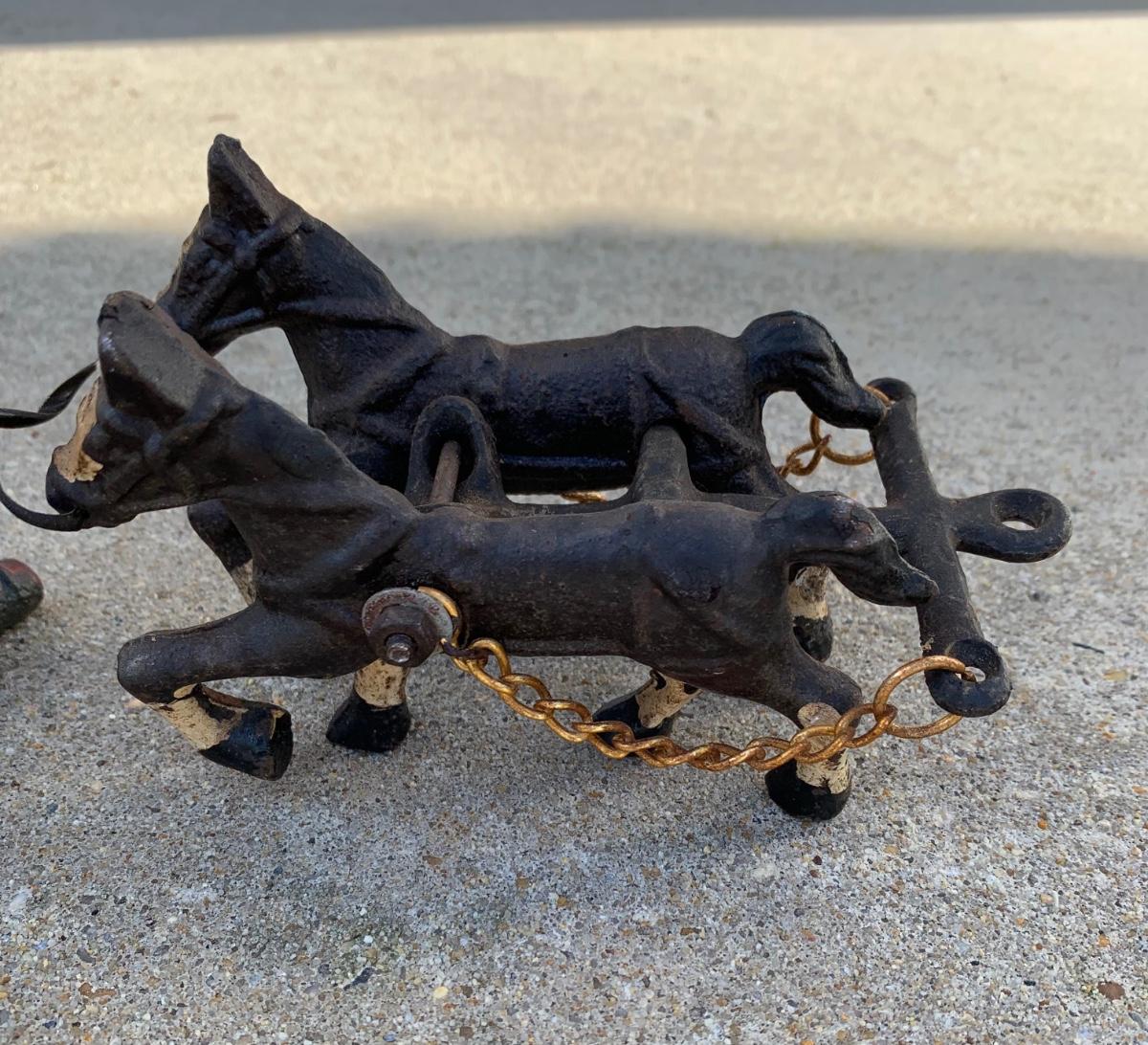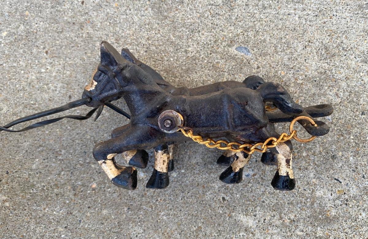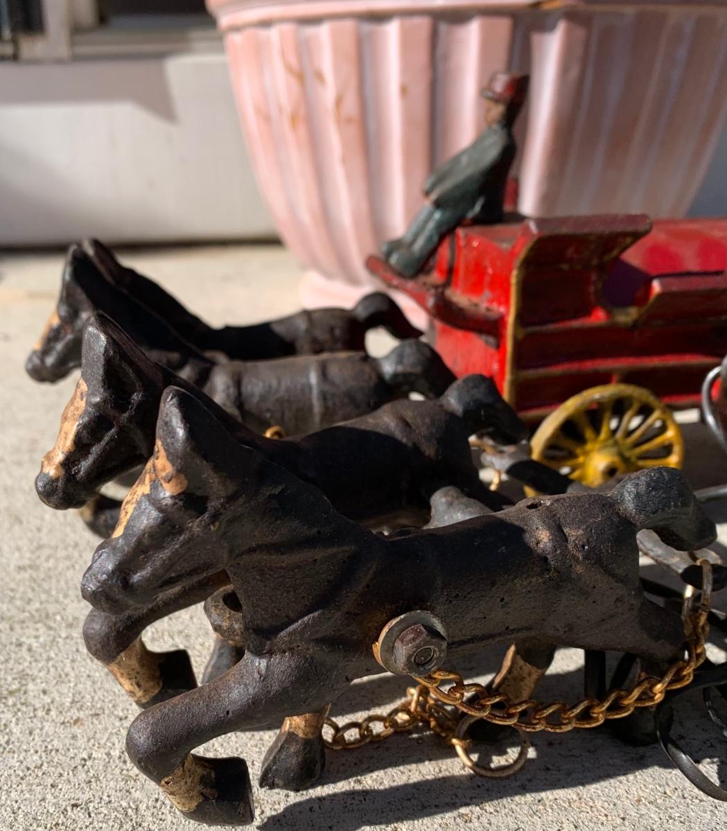 LOT 406R: Cast Iron Vintage Toy Horse Drawn Wagon w/People