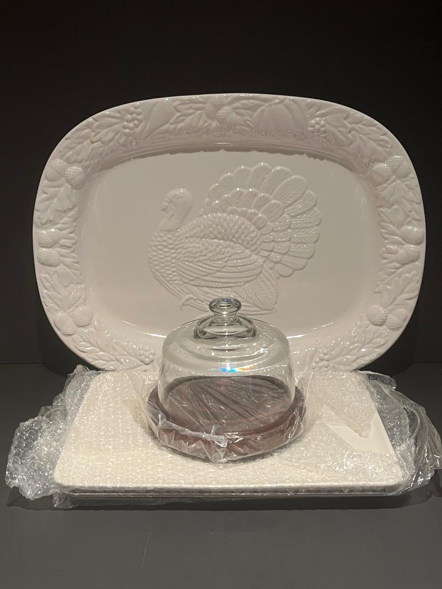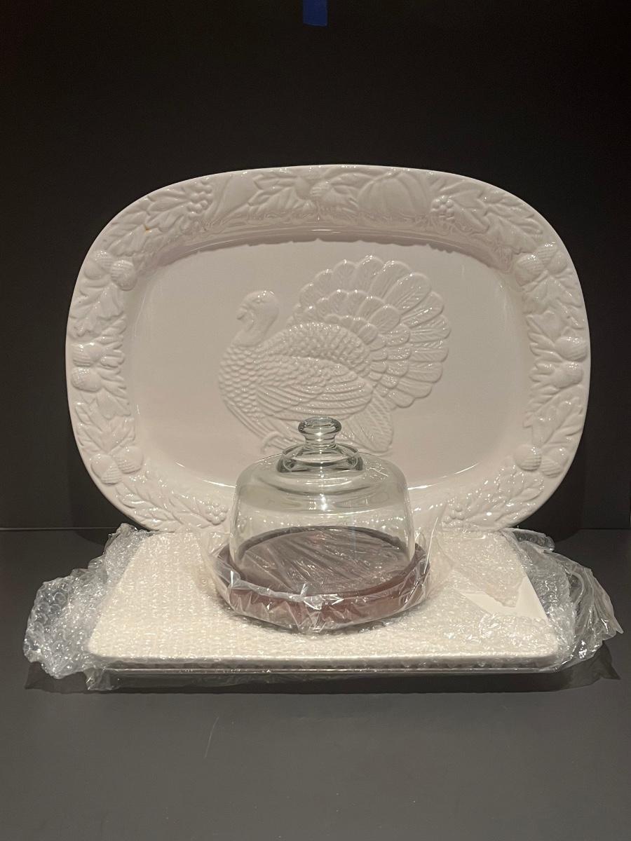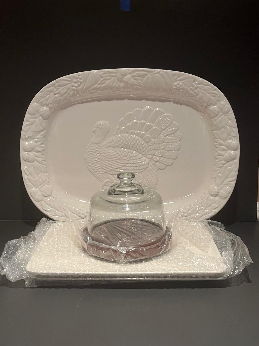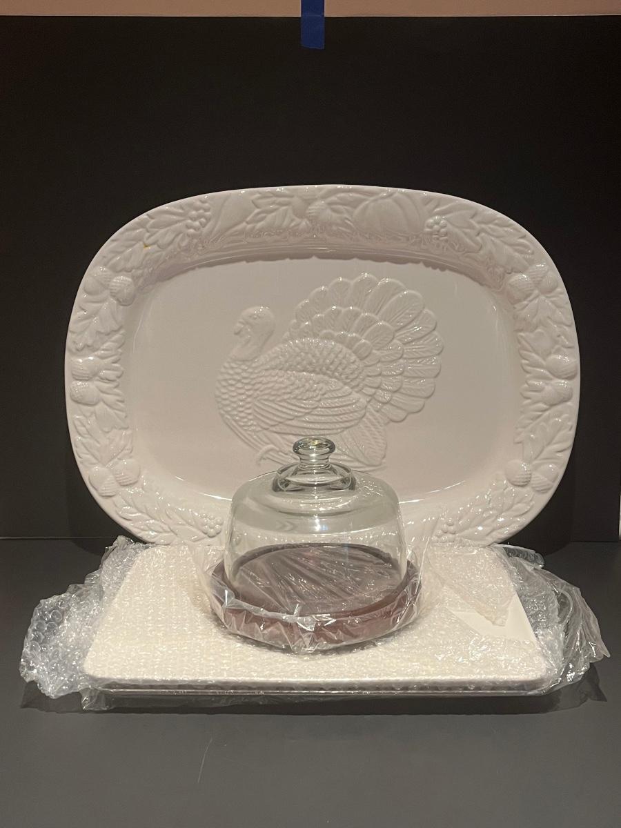 Turkey platter, white serving dish with tray and covered cheese dish. Please see all pictures as they are the best representation of the items. The pictures show condition, measurements if taken, and what is included in the lot. Due to the large amount that we photograph and the time frame, we are not always able to take measurements. All items unless noted, are pre-owned and have been used. If you purchased furniture, you must bring help. We do not allow one person to carry large furniture out on their own. Bring help, tools and a truck for the safety of our client’s homes, and your personal safety. Any damages that result to the property including walls, and floors due to moving of the furniture will be charged to the buyer. Company policy. Thank you.