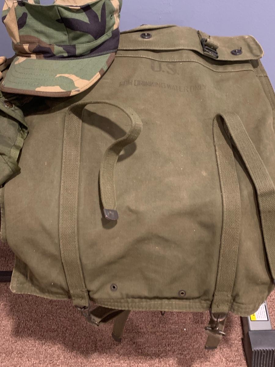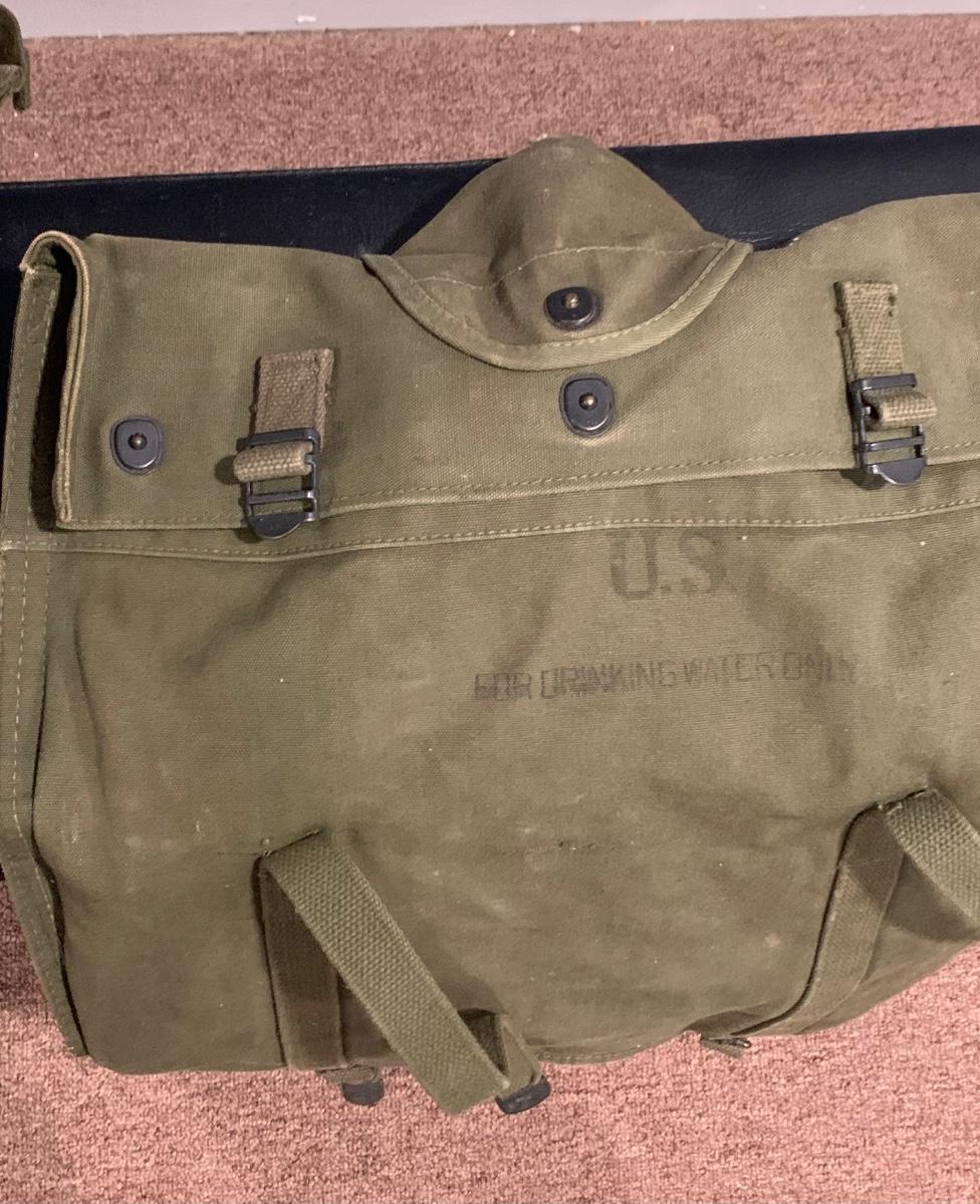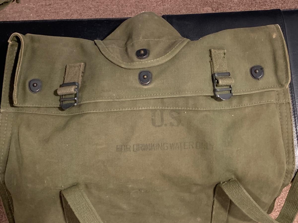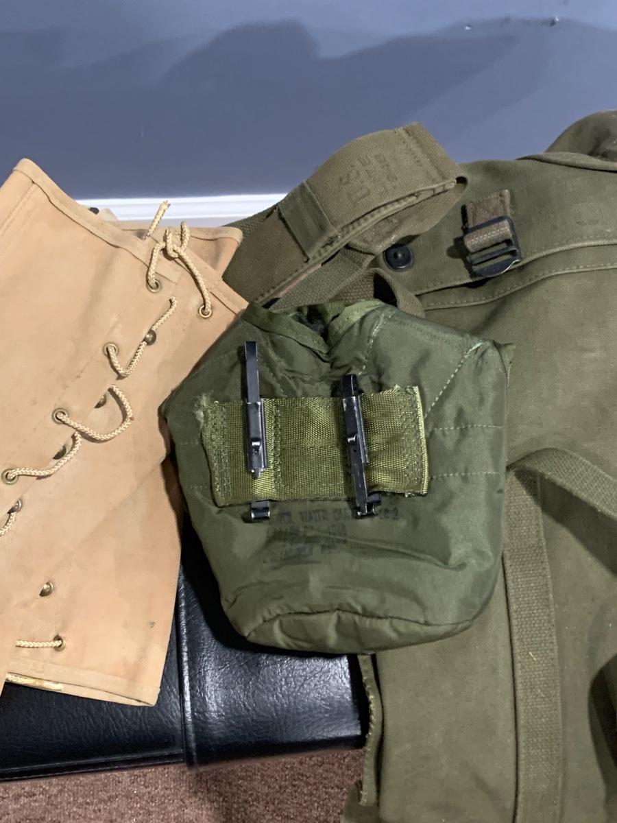 LOT 425R: Vintage US Army Canvas Boot Legging, Water Carry Bag & More