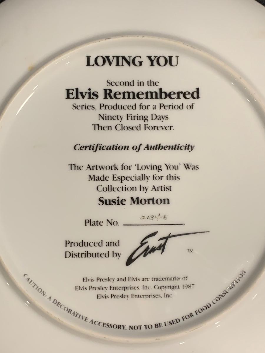 LOT 429R: Collectors Plate: Elvis Remembered w/COA