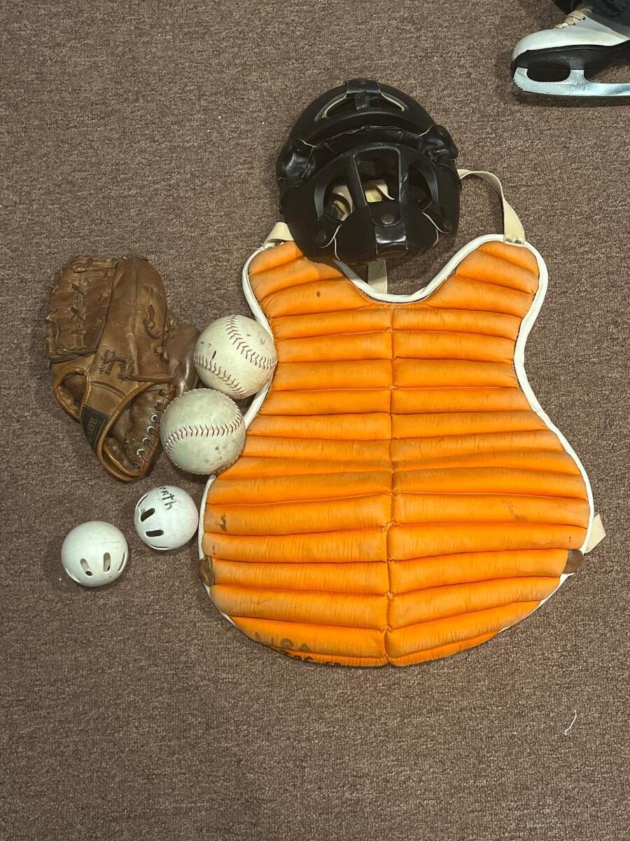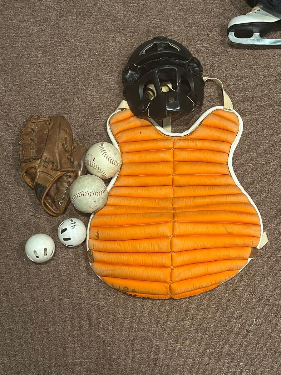 Catchers mask and chest protector. Baseball glove and baseballs. Please see all pictures as they are the best representation of the items. The pictures show condition, measurements if taken, and what is included in the lot. Due to the large amount that we photograph and the time frame, we are not always able to take measurements. All items unless noted, are pre-owned and have been used. If you purchased furniture, you must bring help. We do not allow one person to carry large furniture out on their own. Bring help, tools and a truck for the safety of our client’s homes, and your personal safety. Any damages that result to the property including walls, and floors due to moving of the furniture will be charged to the buyer. Company policy. Thank you.