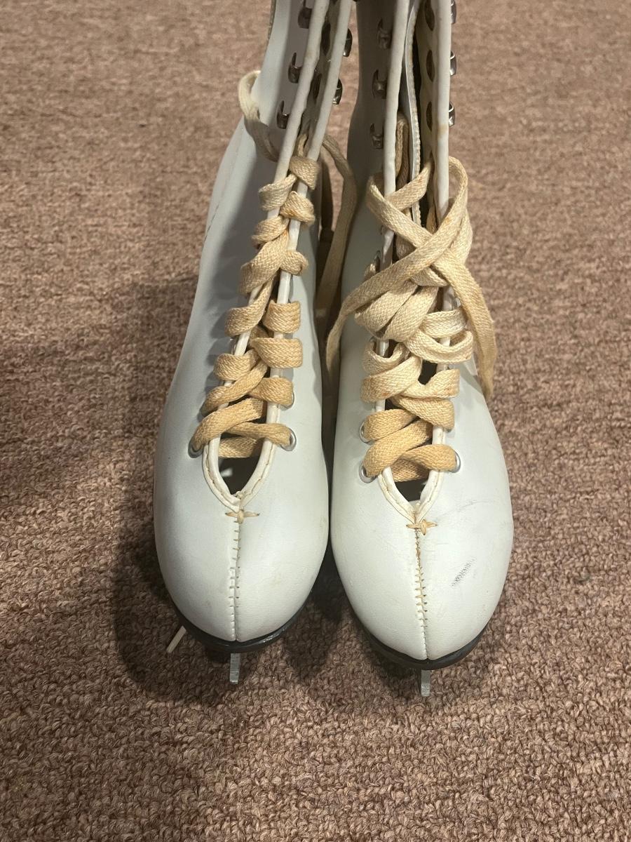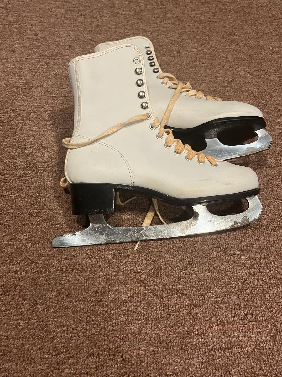 2 pair of ice skates, size 8 and size 5. Please see all pictures as they are the best representation of the items. The pictures show condition, measurements if taken, and what is included in the lot. Due to the large amount that we photograph and the time frame, we are not always able to take measurements. All items unless noted, are pre-owned and have been used. If you purchased furniture, you must bring help. We do not allow one person to carry large furniture out on their own. Bring help, tools and a truck for the safety of our client’s homes, and your personal safety. Any damages that result to the property including walls, and floors due to moving of the furniture will be charged to the buyer. Company policy. Thank you.