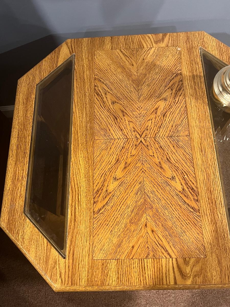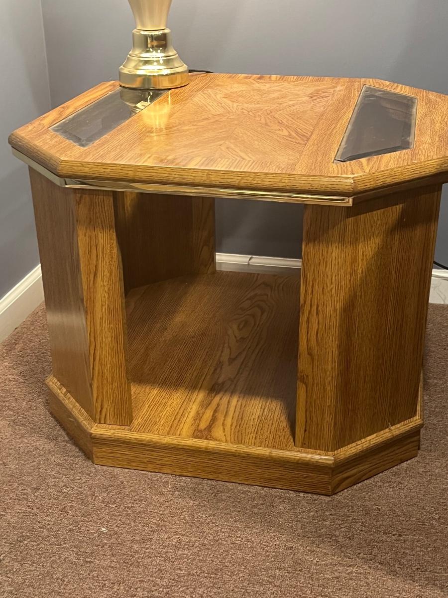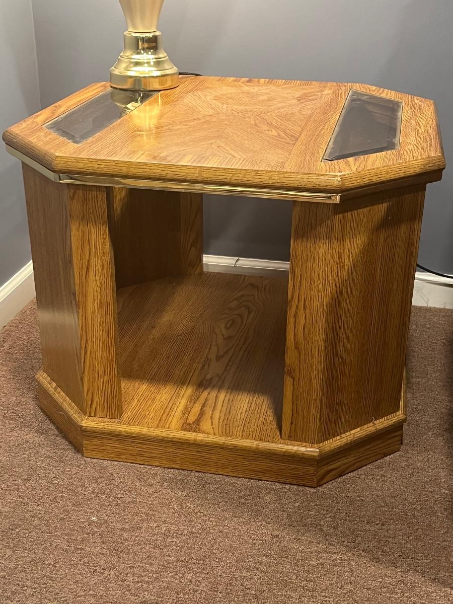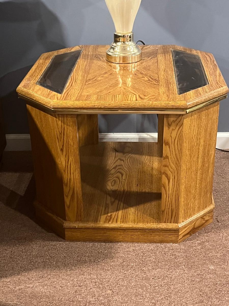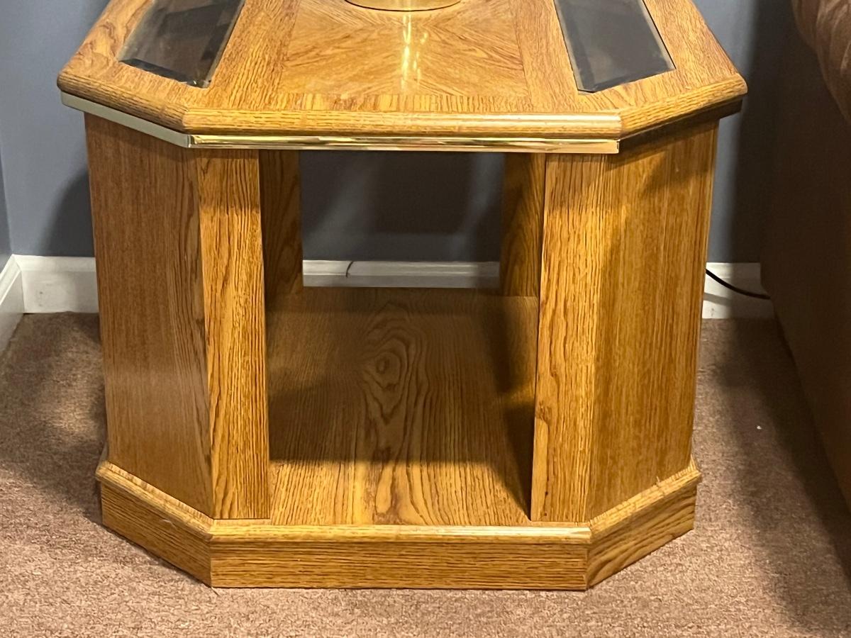 LOT 501C: Set of 2 Wood End Tables w/ Glass Inlay (Table Only)