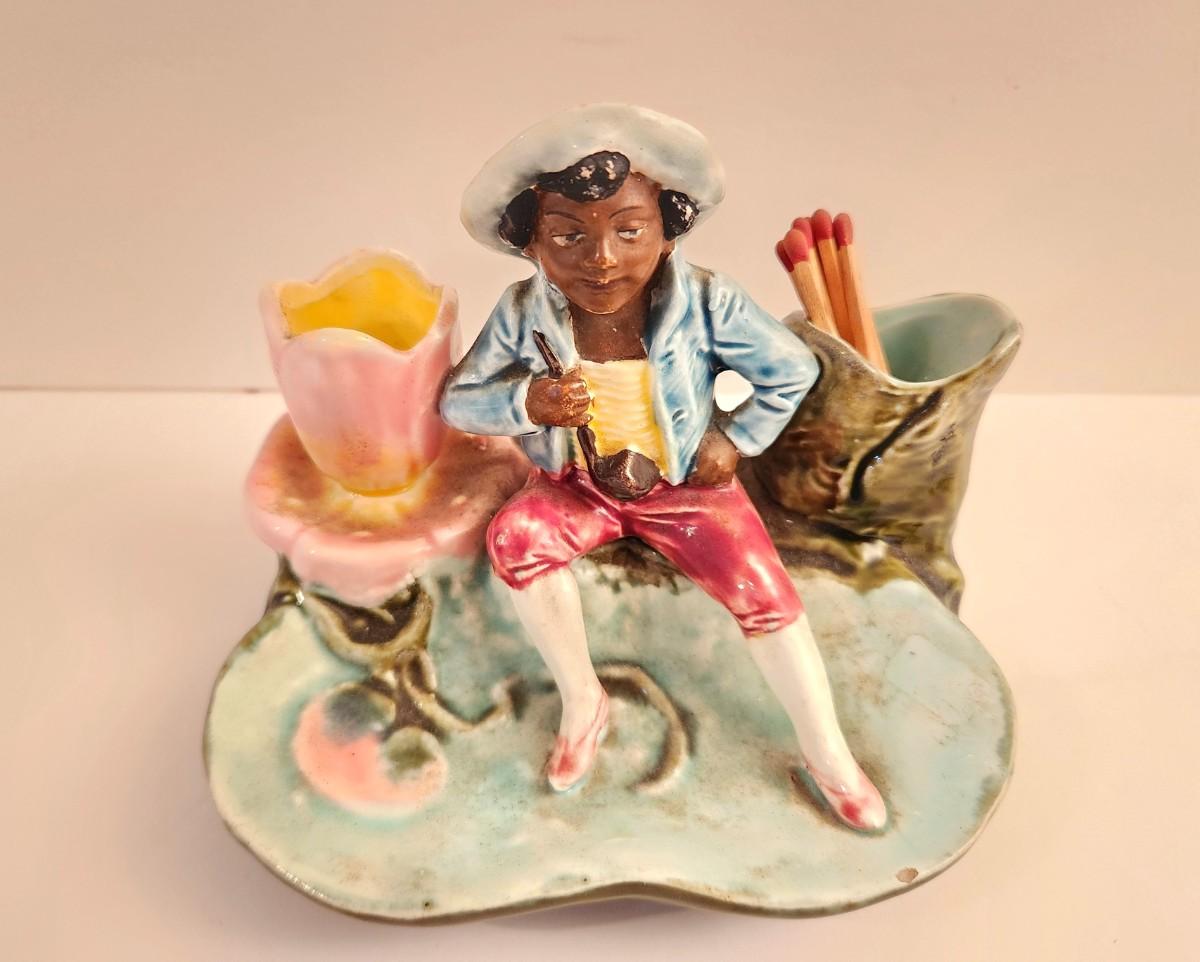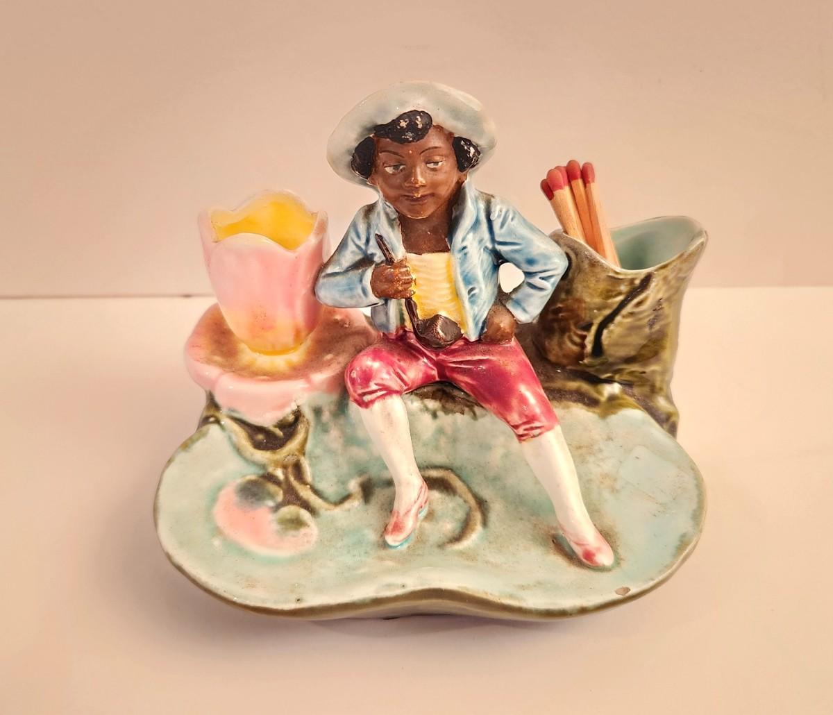 Lot #68D Antique Majolica Style Black Americana Match Strike