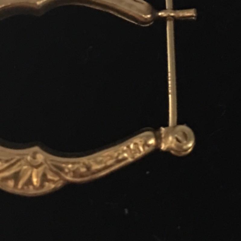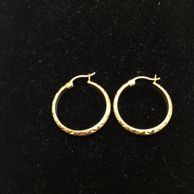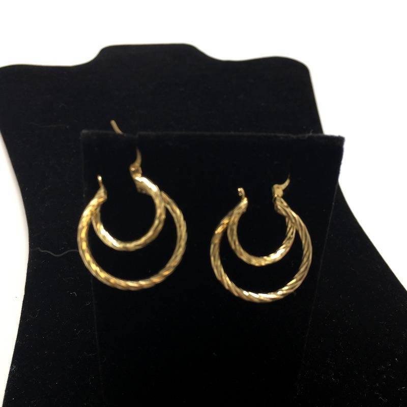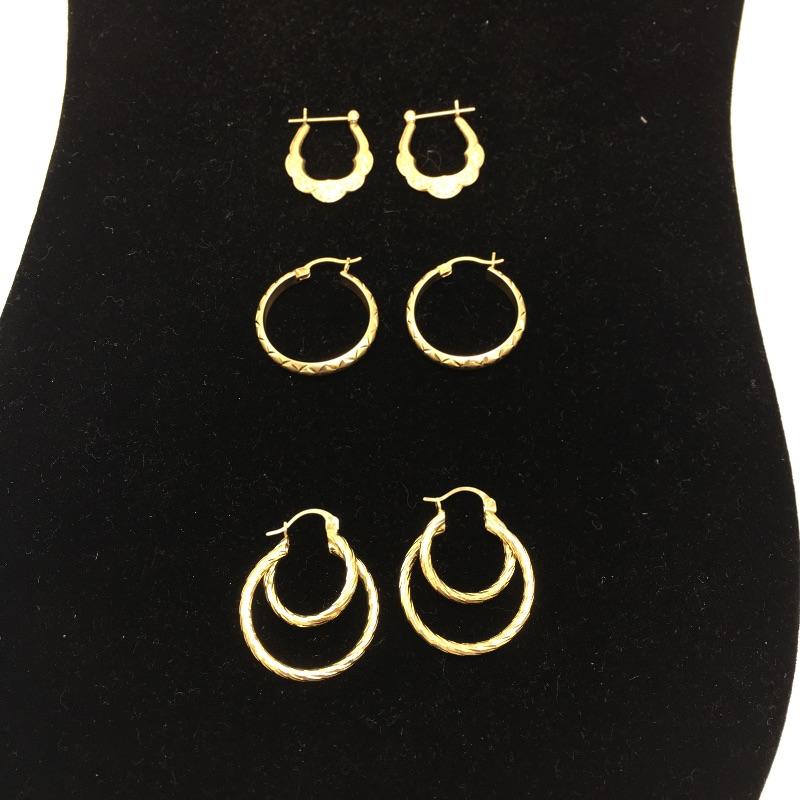 Three pairs of 14k gold hoop earrings. All earrings marked 14k. Don’t miss out on these classic gold earrings. Starting price is based on approx. melt value of gold.