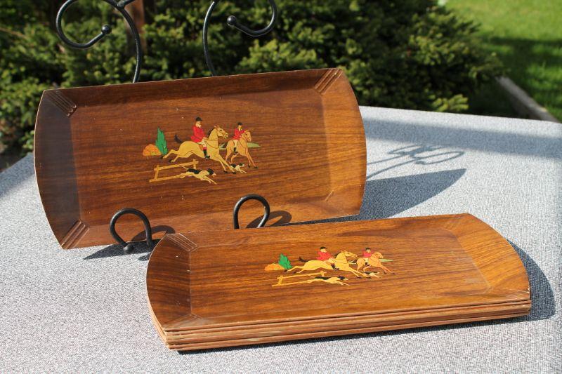 Vintage Set of Hunting Scene Trays by Haskeliteâ„¢. NO RESERVE!
