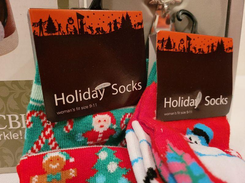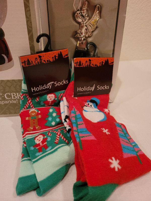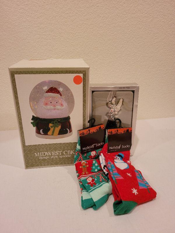 Lot 69: (2) New Christmas Womens Socks, Snowglobe and Angel Deco