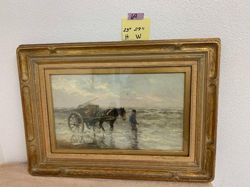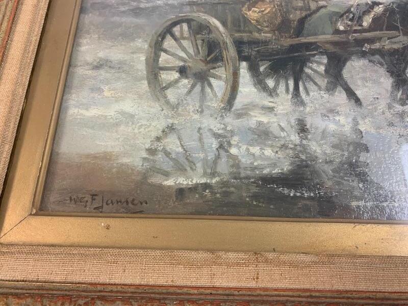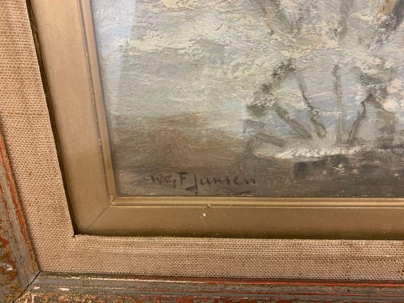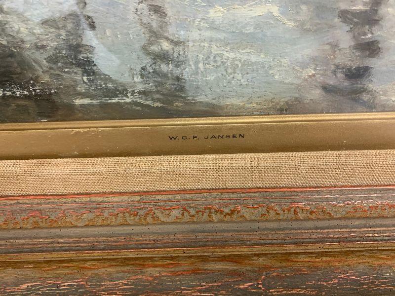 Beautiful antique painting by W.G.F. Jansen in excellent condition. Little damage to frame as shown in the newly added pictures. May need to be reinforced to frame as it has come a little loose.