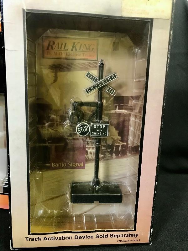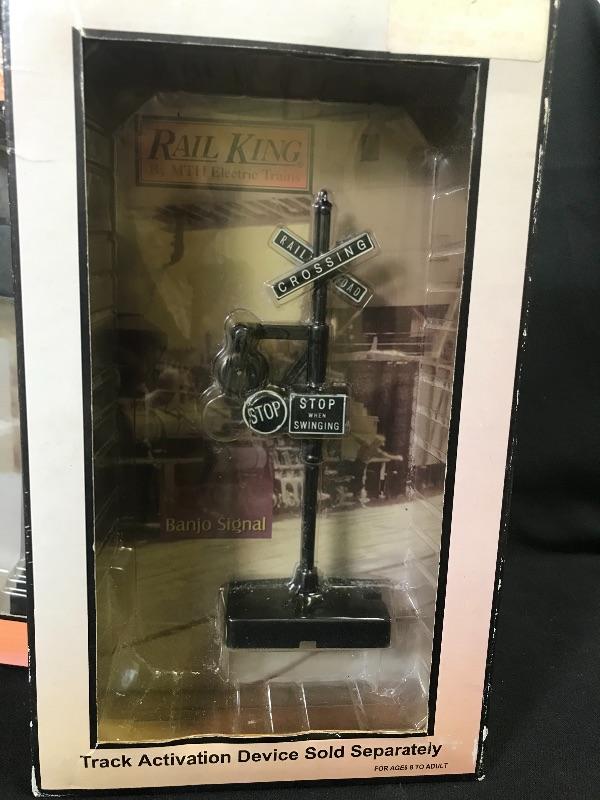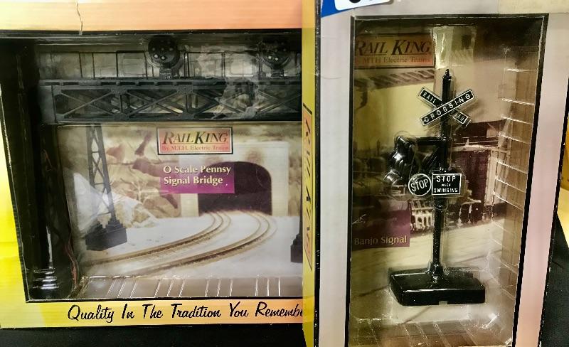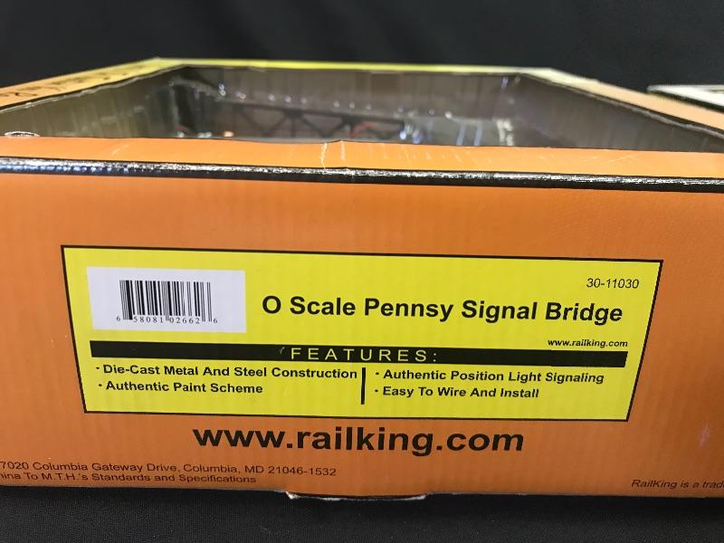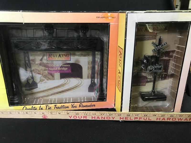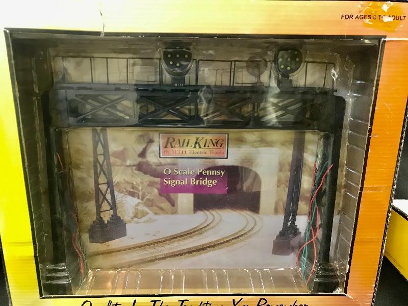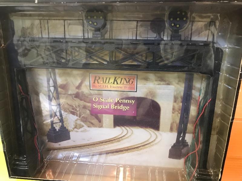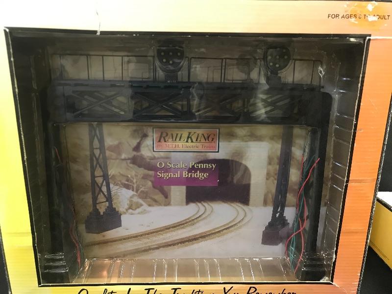 Both new in boxes, banjo signal, No. 140, and a Pennsy signal bridge. Please see all pictures for content of the lot, condition of the lot, and measurements if taken. Pictures are the best representation of the items listed and items are untested unless indicated in description. Thank you for looking and have fun bidding!