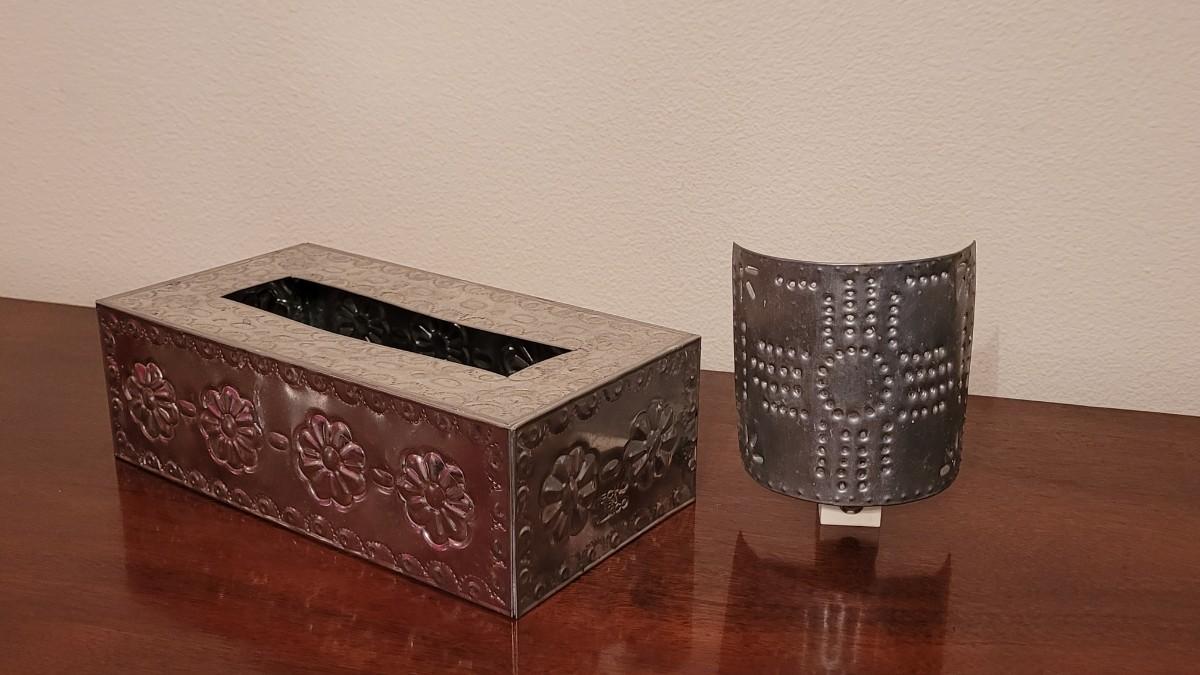 Lot 69: Mexican Punched Tin Folk Art Tissue Cover and Night Light