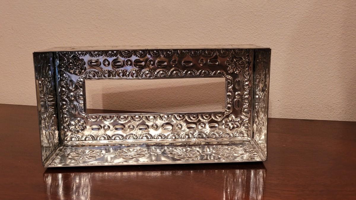 Tin work, known in Mexico as hojalata, goes back to the 16th century. Tin art is produced when pieces of n are cut, shaped, and embossed with a pa ern. Bright lacquer paint was applied to the Tin: Often unusual or non-“realis c colors were chosen. Elaborate picture frames are common.