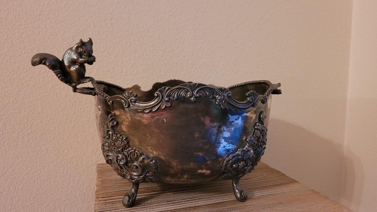 Lot 69: Vintage Rockford Silverplate Co. Quadruple Plate Perched Squirrel Bowl