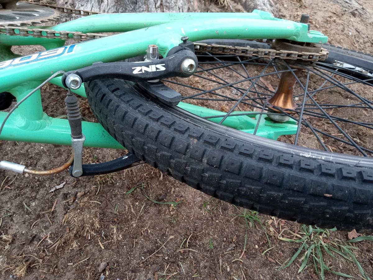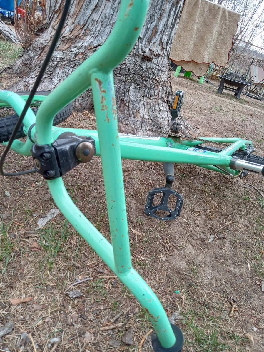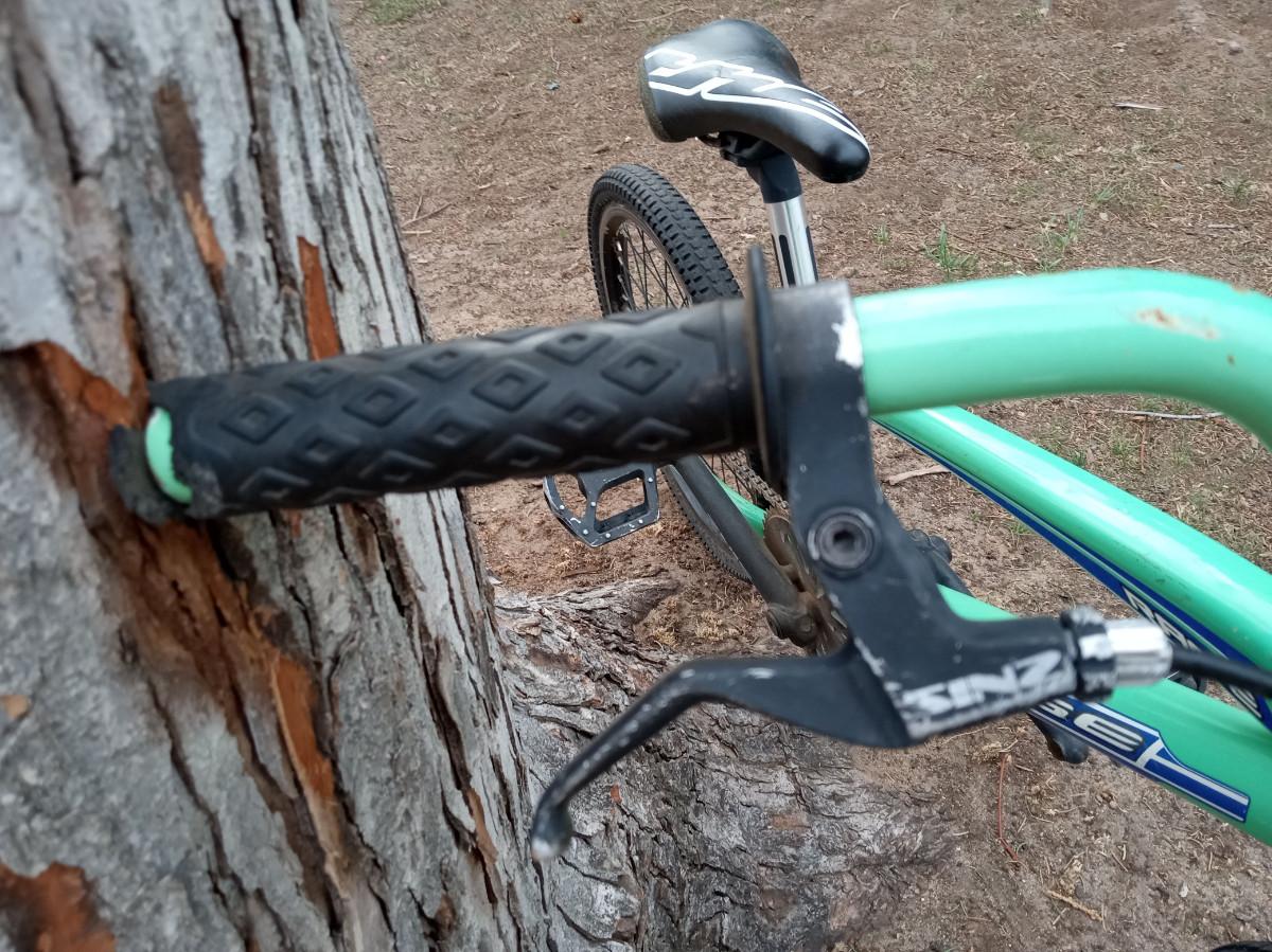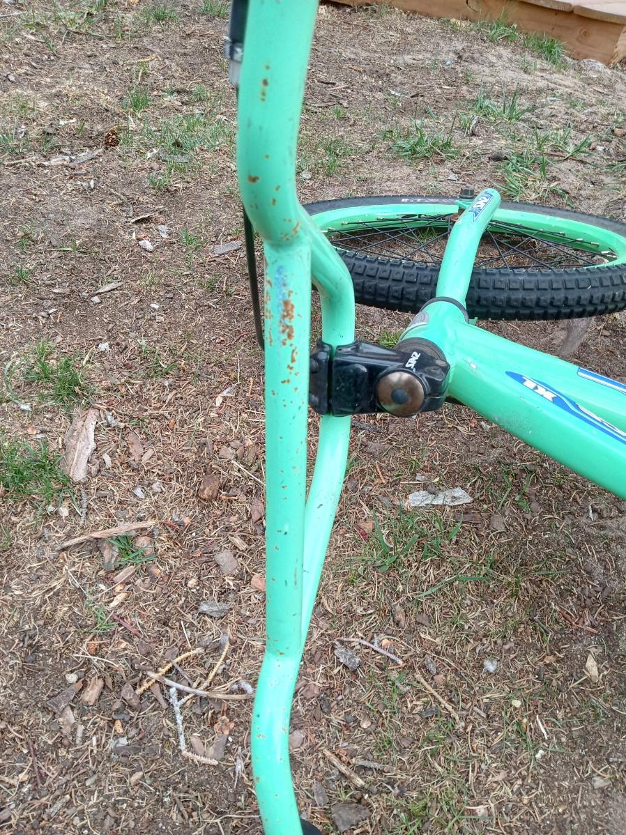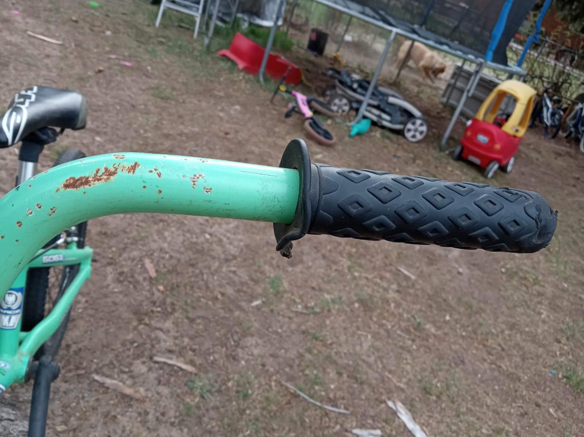 1 OF THE HANDLE GRIPS IS TORN, THERE IS SOME RUST ON THE HANDLE BARS. OVERALL THE BIKE IS IN GOOD SHAPE