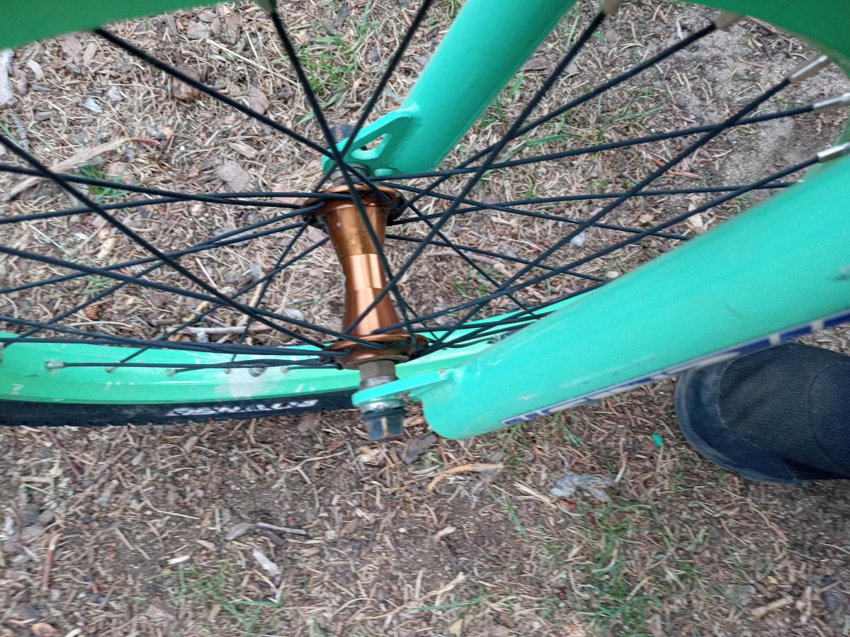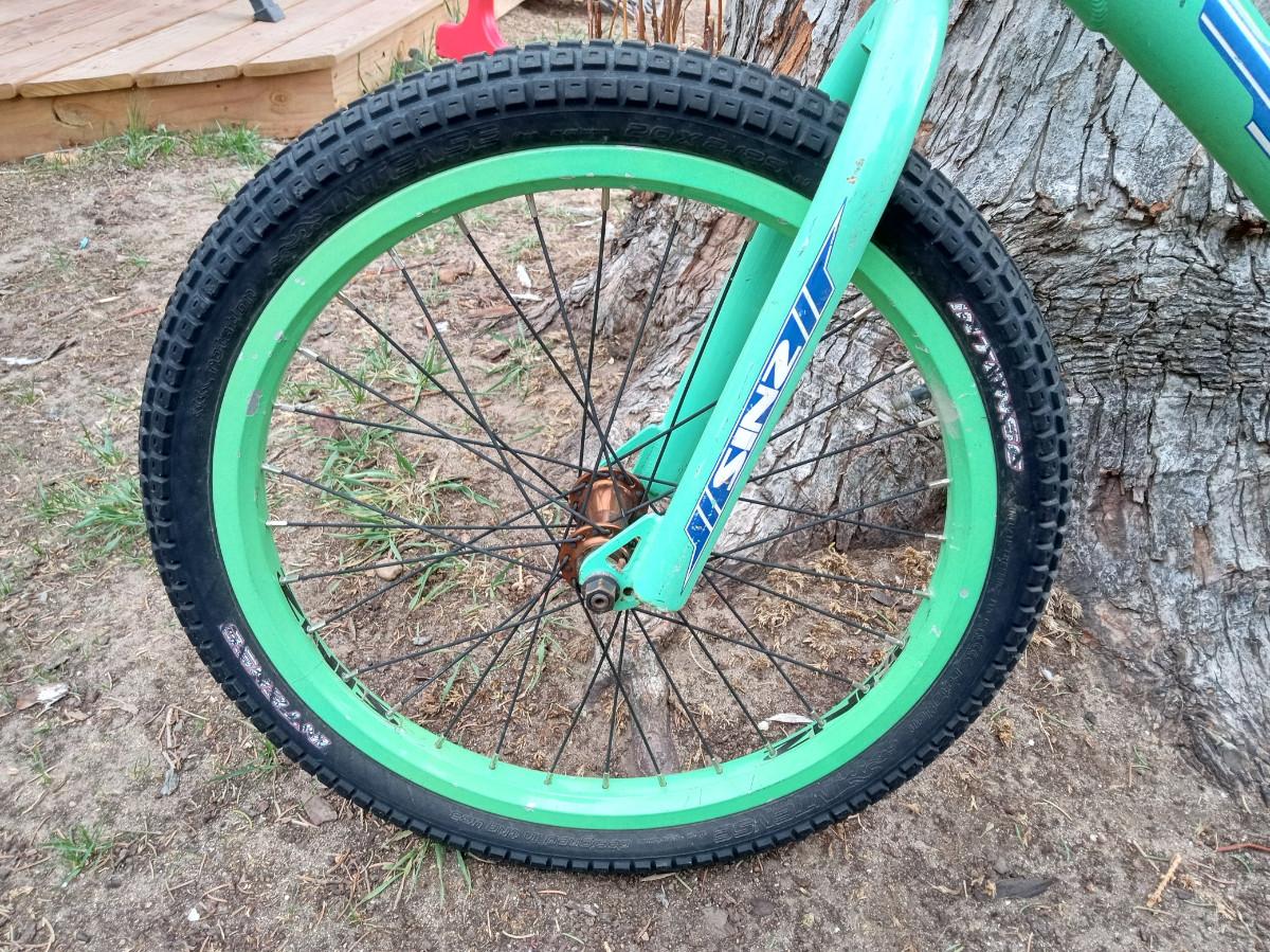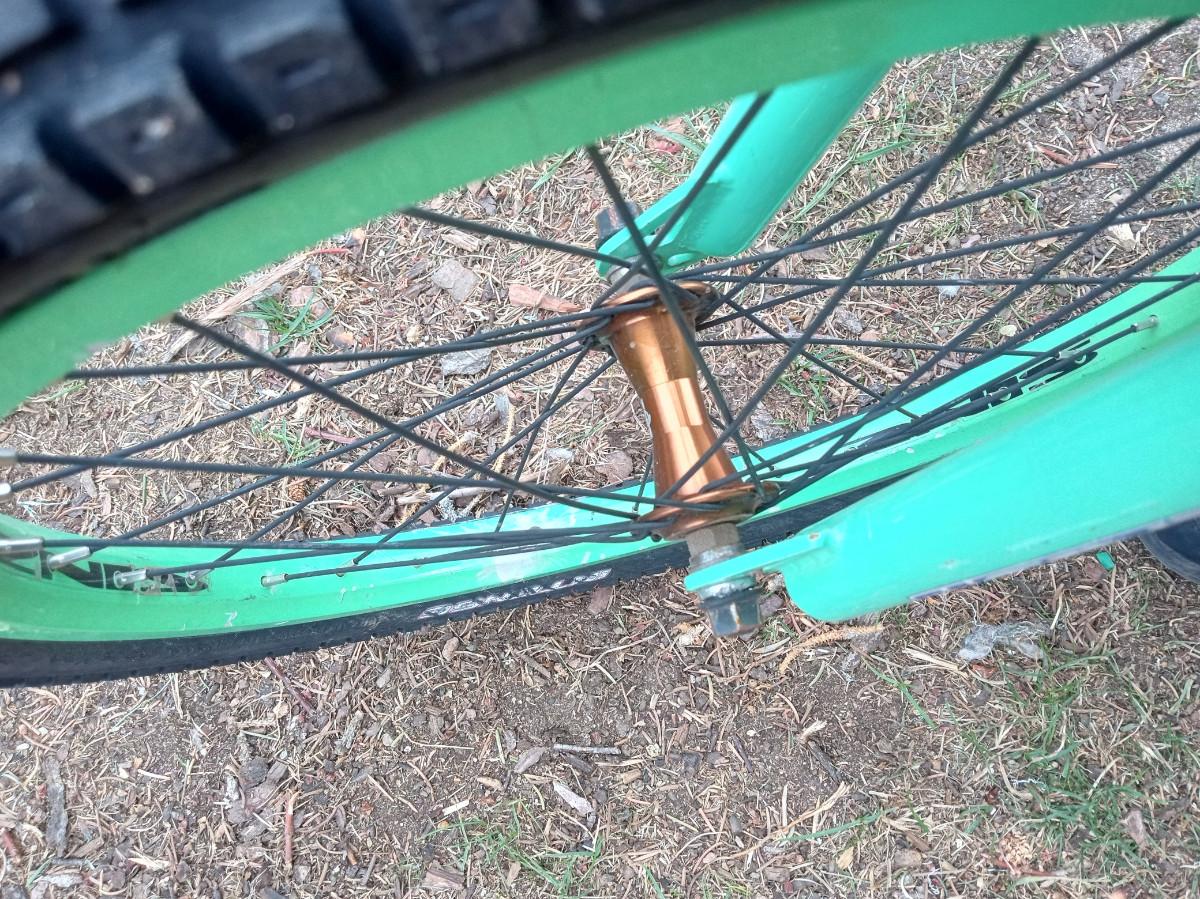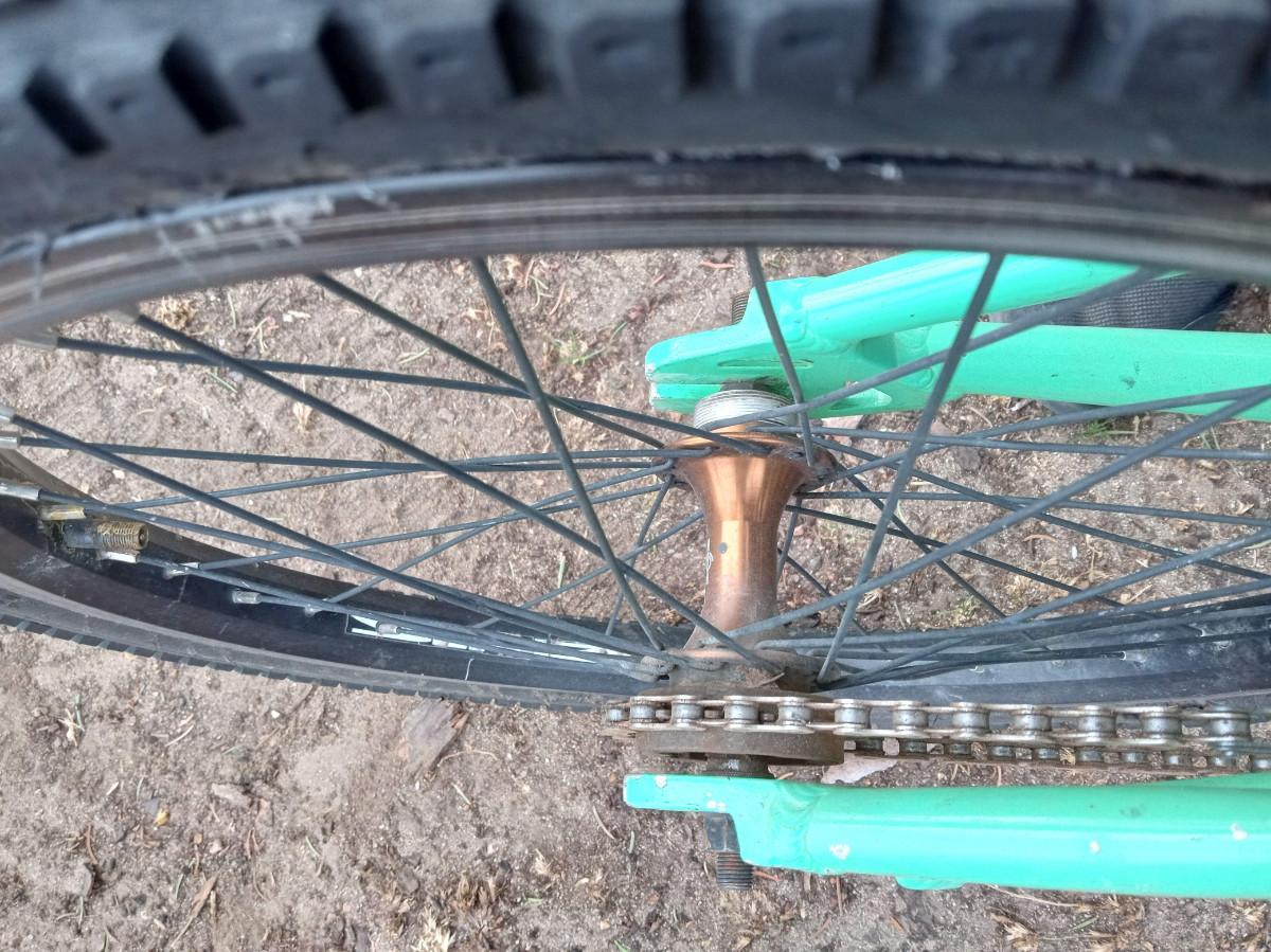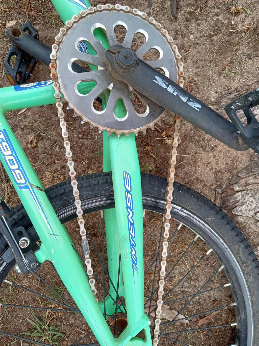 1 OF THE HANDLE GRIPS IS TORN, THERE IS SOME RUST ON THE HANDLE BARS. OVERALL THE BIKE IS IN GOOD SHAPE