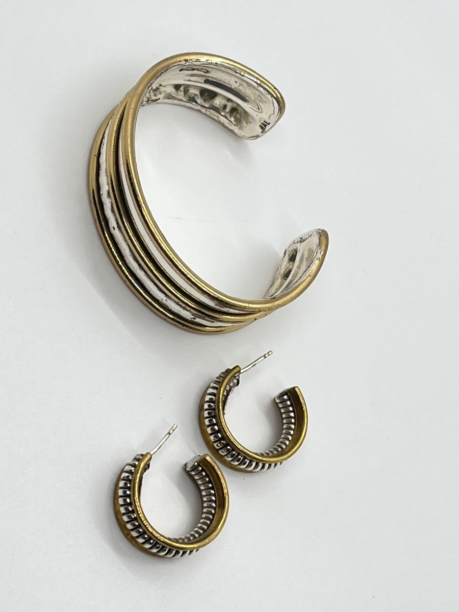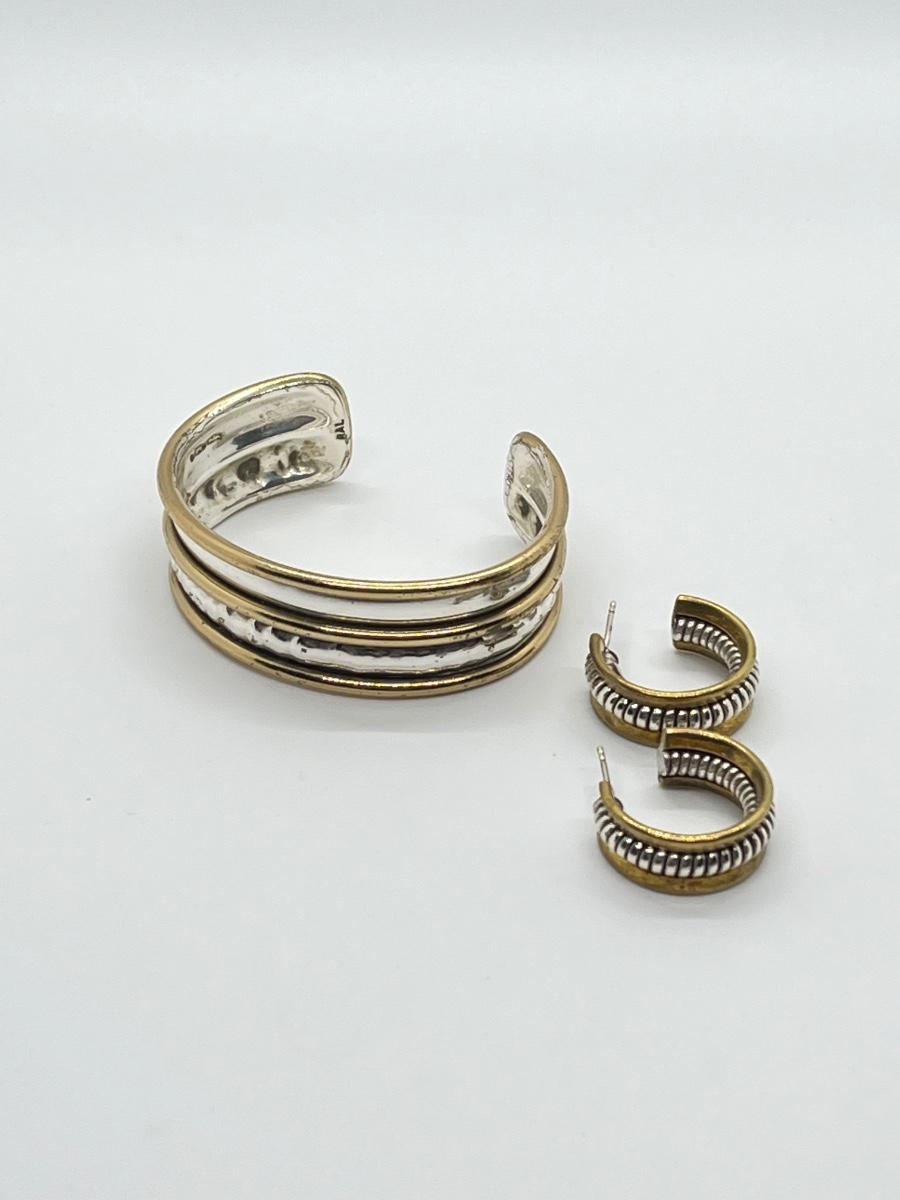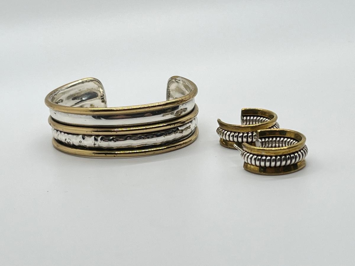 LOT 69: Sterling Silver & Goldfill Two-Tone Southwestern Cuff Bracelet and Matching Earrings - RAL (Rolf & Andrea  Ludden)