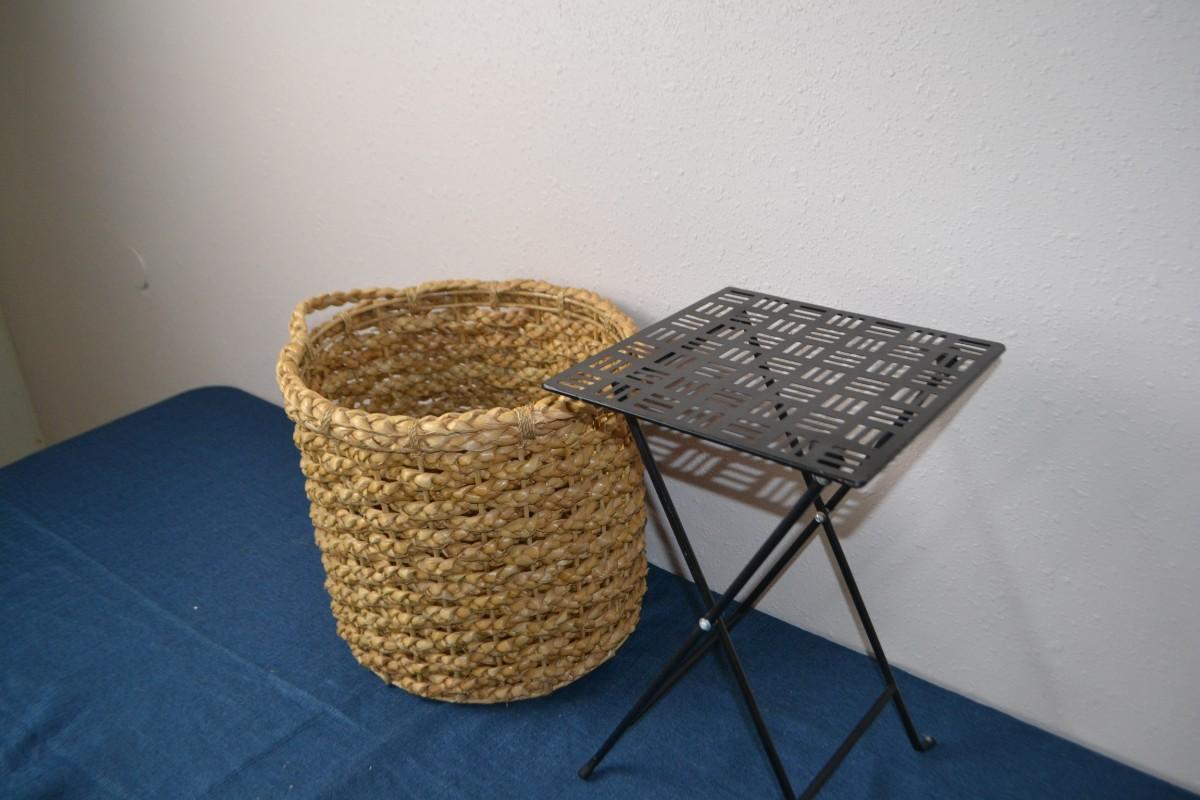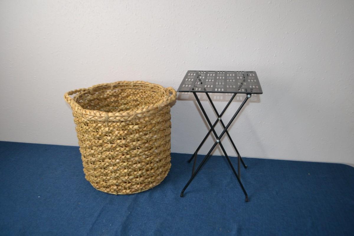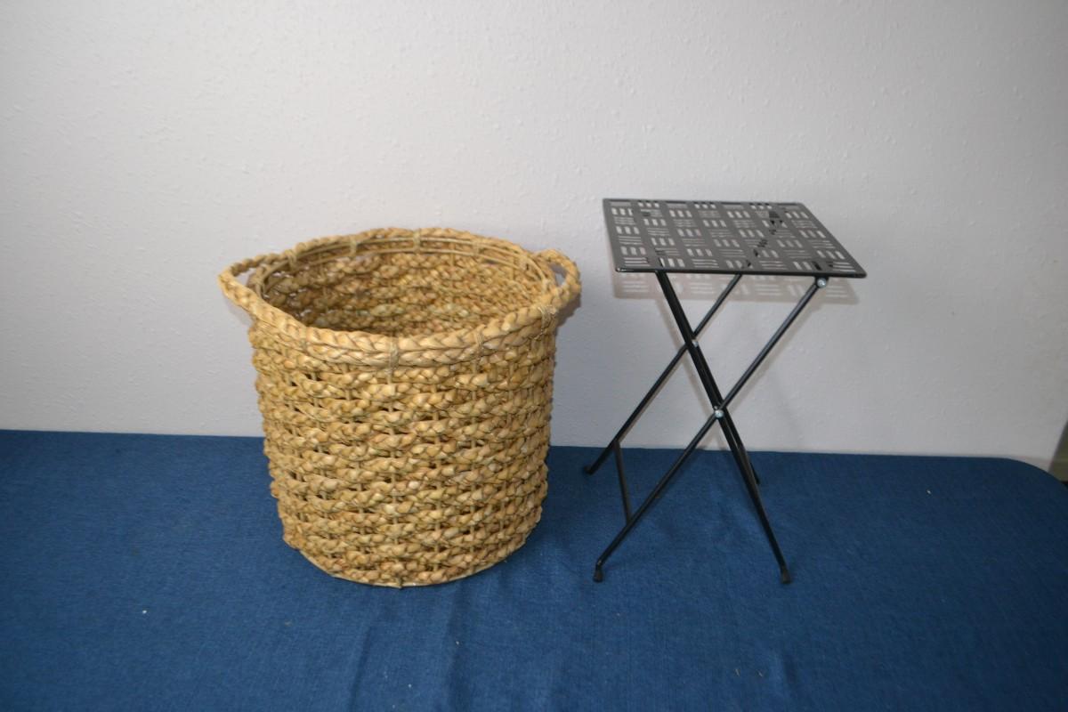 LOT 69. BASKET AND FOLDING METAL SIDE TABLE