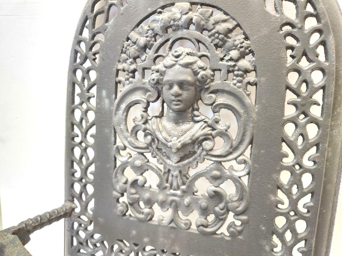 Lot #69 Antique Cast Iron Insert for Coal Burning Fireplace - interesting "lady face" design