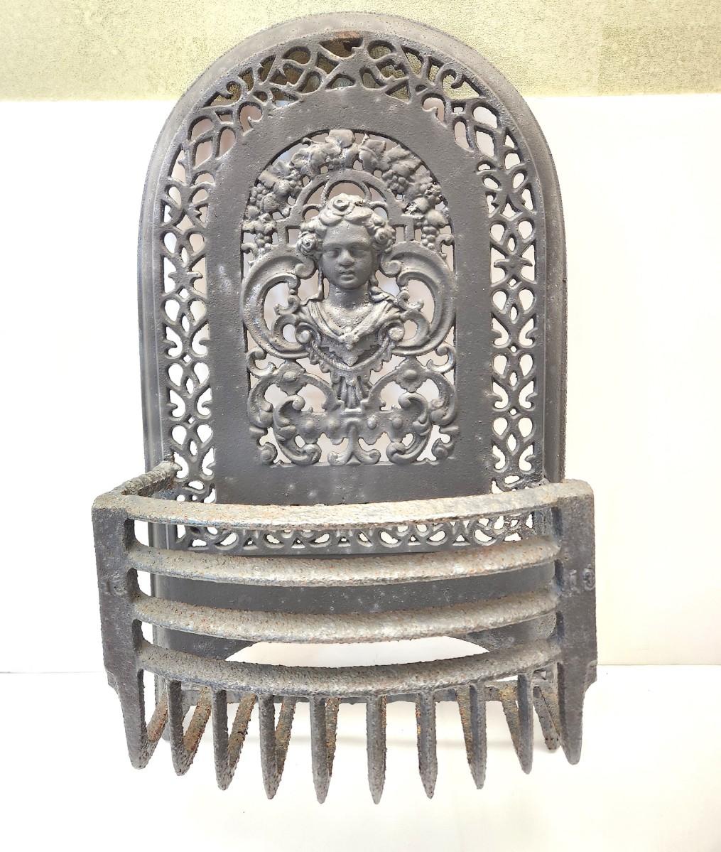It's a beauty! Antique cast iron insert for a coal burning fireplace - over 100 years old - wonderful architectural or garden accessory. 22" tall, 14" across. Good antique condition. Lady face models like these are in demand.