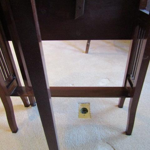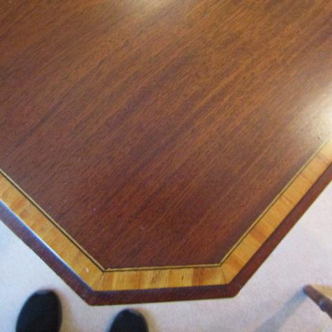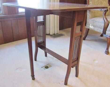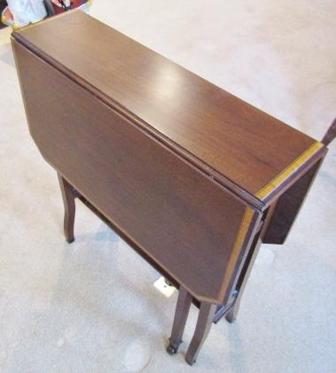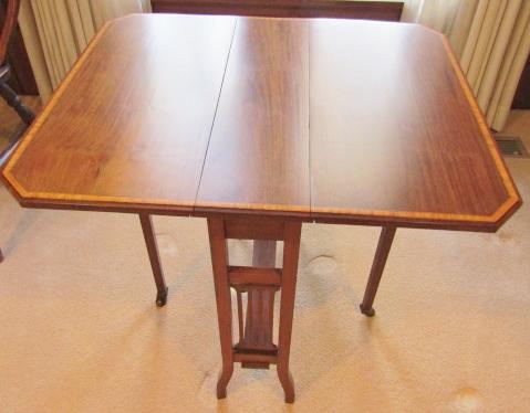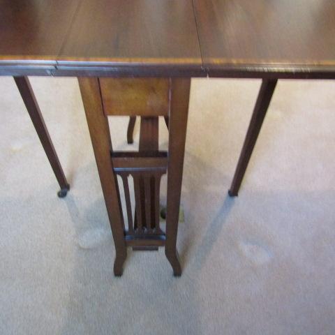 GATE LEG TABLE WITH BRASS CASTERS, SUTHERLAND MAHOGANY WITH SATINWOOD INLAY CIRCA 1880