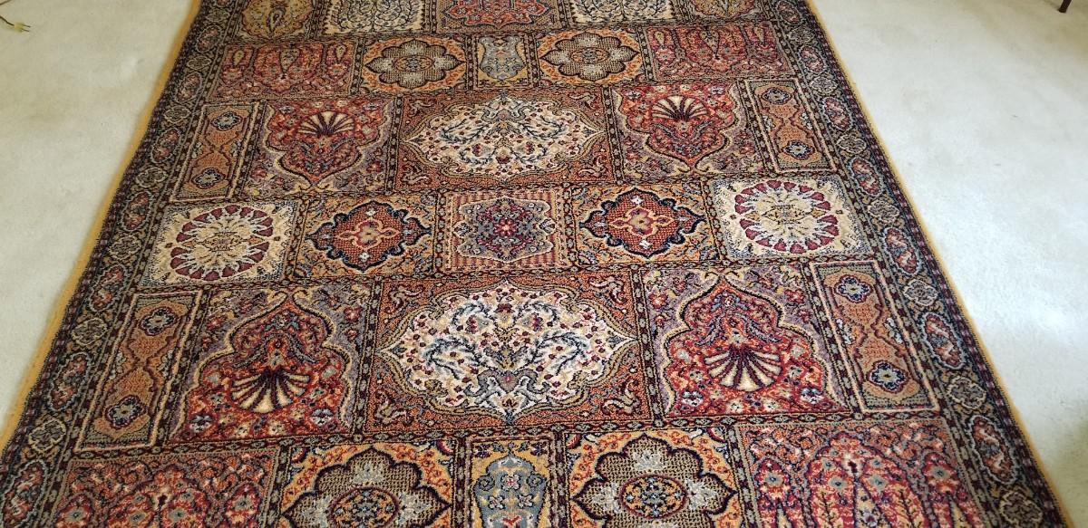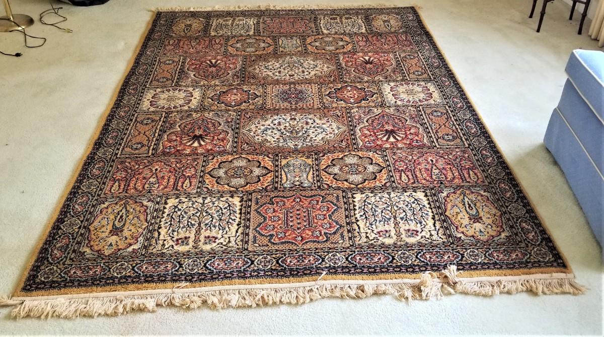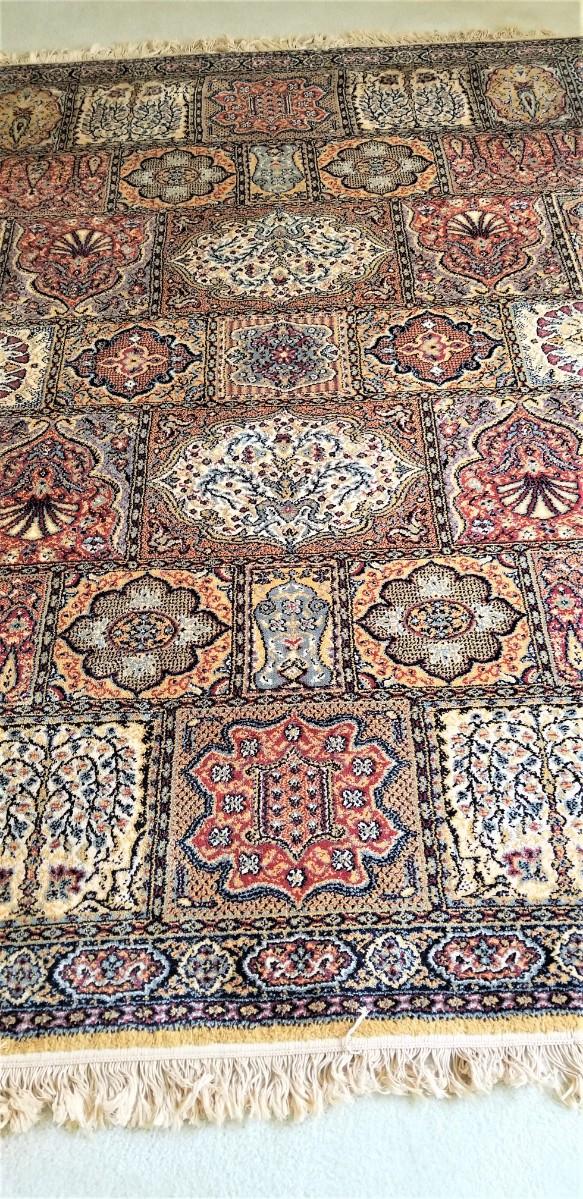 Soft wool area rug - imported - 5' 7" x 8' 7" - ARDAKAN - in browns, cream, and burgundy. Gently used condition. Garden 9545 is the pattern. This is a quality, expensive rug - check out comparable prices on line.